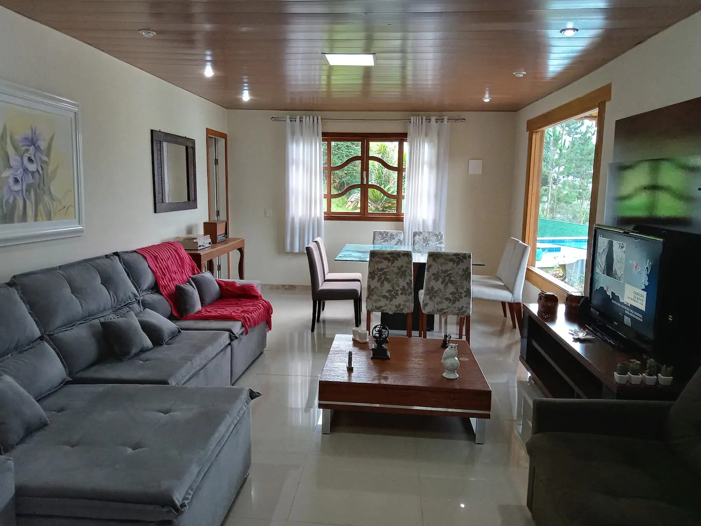 O destaque dessa casa seguramente é a bela piscina que tem uma bela vista! É um lugar para quem busca tranquilidade. Não é permitida realização de festas, nem visitantes e é imprescindível obedecer a Lei do Silêncio, alerta o anfitrião no anúncio. Leve roupas de cama e banho, pois elas não são oferecidas.