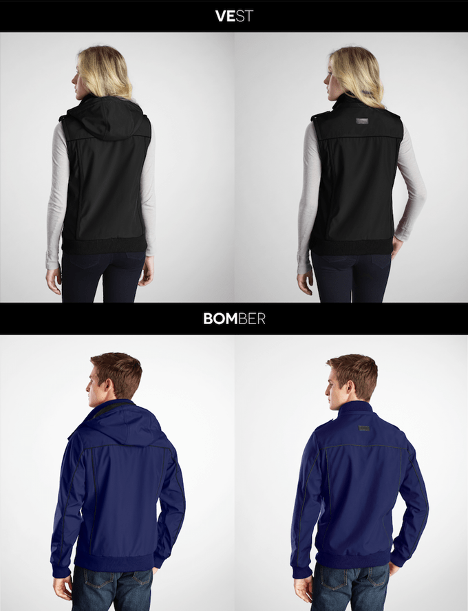 São 4 modelos de casacos masculinos e femininos: Vest, Windbreaker, Bomber e Sweatshirt, com preços a partir de US$ 175 (+ impostos + frete) no varejo futuro. Quem aposta/apostou na ideia, paga/pagou menos. A entrega das primeiras unidades está programada para agosto de 2018.