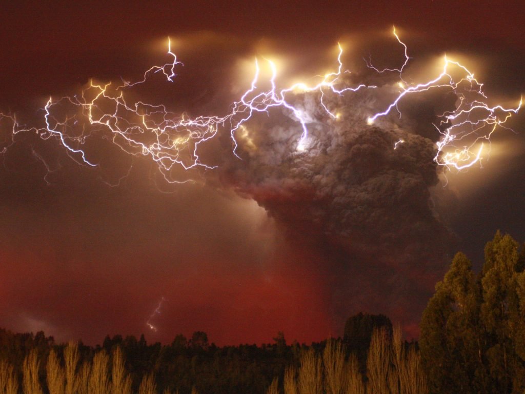 Essa imagem a seguir não é do Villarica mas é espetacular e mostra os fenômenos elétricos que ocorrem durante a erupção de um vulcão.