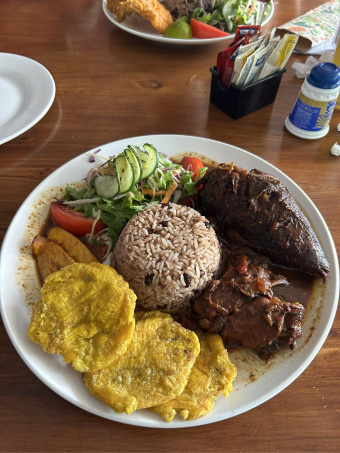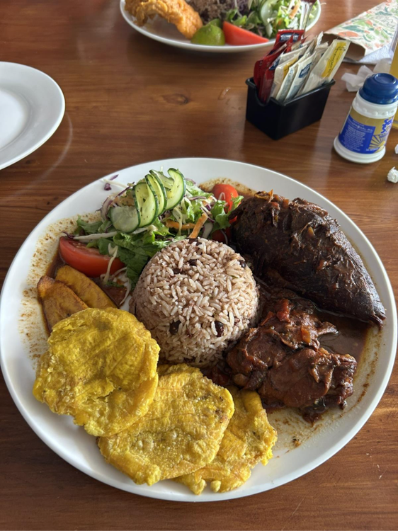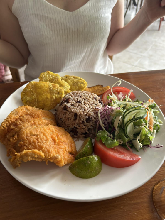 CONTINUANDO .... 15/11: saída de San Jose com destino e pernoite em Puerto Viejo Saímos perto das 8h para ir de San Jose até Puerto Viejo. Lá passaríamos 3 dias hospedados no Hotel Lanna Ban (depois falo mais do hotel). O trajeto de 222km demorou quase 5 horas para ser feito. Muita estrada simples, caminhões demais e bastante trânsito para sair de San Jose. Além disso a estrada atravessa cidadezinhas, o que sempre trava a fluidez. O percurso passa pelo Porto de Limón, principal porto do país, o que faz com que tenha muitos caminhões mesmo, especialmente containers. Enfim, 12h e tanto chegamos no nosso hotel. O quarto ainda não estava disponível, mas nos liberaram para usar a piscina. Meu filho ao chegar viu e já queria se refrescar na água. Brincamos um pouco e daí nos ajeitamos para ir almoçar. Fomos a pé num restaurante próximo chamado Dona Lena. Comida muito gostosa com um preço razoável. Lá pudemos experimentar o Casado com pollo (frango) e salsa caribeña. Que delícia. Que sabor intenso. CASADO CON POLLO Y SALSA CARIBENÃ CASADO CON PESCADO Pedimos dois pratos (muito grandes e muito bem servidos), um suco de piña e uma taça de sangria, para o Gui pedimos um arroz branco. O custo foi US$ 58,42, bem alto mas pelo menos a comida era bem farta e gostosa. Talvez um prato tinha sido suficiente para eu e a esposa. Depois disso voltamos para o nosso hotel caminhando pela beira mar. Estavámos hospedados na Playa Cocles. A praia é bonita, mas o dia estava feio. Então não foi nada de especial. Voltamos para o hotel para descansar um pouco e depois sair conhecer o centrinho de Puerto Viejo, mais no começo da noite. Lá escurece cedo, por volta de 17h30. Perto deste horário fomos passear no centrinho para conhecer. Fomos de carro, estacionamos na rua e lá andamos à pé. Como não estavamos com fome, pegamos apenas uma fatia de pizza para dar ao Guilherme (era o que tinha de rápido), andamos um pouco e voltamos para o hotel dormir. HOTEL LANNA BAN Então, falando sobre o hotel. É uma pegada meio indiana, os chalés são todos decorados nesse estilo. O café da manhã é farto, internet funciona bem e os quartos são bem espaçosos. O atendimento foi muito bom por parte de toda a equipe. Tudo é muito limpo, seja interno ao quarto ou nas áreas comuns. É muito rodeado pela mata, então tem que cuidar com bichos. Nós sempre viajamos com aqueles repelentes de tomada. Foi essencial. O chalé é todo de madeira, então tem aqueles barulhos normais do estalo da madeira. Eu me assustei várias vezes e confesso que atrapalhou um pouco o sono. Vale a estadia. Para 3 noites foi algo em torno de 450 dólares. 16 e 17/11: dia livre em Puerto Viejo Acordamos cedo, tomamos o café da manhã do hotel. Ao sentar à mesa, já traziam suco de laranja e um prato de frutas (melancia, mamão e abacaxi – muito doce por sinal). Depois podia escolher pelo Gallo Pinto, torradas com ovos ou panquecas (estilo americana) com banana (em dois dias pedimos mais torradas e foram trazidas sem problema). Na mesa vinha manteiga, mel e uma geléia, além de uma térmica de café (podia pedir leite ou chocolate quente também). O café da manhã era muito farto e gostoso. Era servido numa área bem agradável do hotel, ao lado da piscina. Neste dia já nos agilizamos para conhecer as praias. Fomos até Manzanillo, andamos um pouco para conhecer e o Gui brincar na área, mas foi na Praya Punta Uva que voltamos para ficar e curtir o mar, lá era um mar mais calmo. Nossa que gostoso o mar da Costa Rica. Água quente e bem limpinha. Ficamos um bom tempo até o Gui apresentar sinal de sono. Voltamos perto das 13h para uma soneca da criança e depois saímos para almoçar. Neste dia fomos almoçar tarde e tudo estava cheio. Queríamos ir no Cocomar (bem avaliado no Tripadvisor), porém estava cheio. Acabamos parando num restaurante chamado NANKU e tomamos no c*** (fazendo um trocadilho com o nome). Pedimos um casado (prato feito) e minha esposa pediu o que era para ser uma tábua de frutos do mar. Chegou um prato com 2, sim apenas 2 camarões empanados, 2 lulas empanadas e algumas iscas de peixe, acompanhadas com 3 patacones. Não lembro o preço específico deste prato, mas rimos para não chorar. O total deste almoço esquecível foi US$ 34,62. De lá saímos caminhar um pouco e encontramos um sorvete muito gostoso na Gelateria Ocho Nani. Duas casquinhas com duas bolas cada custaram US$ 5,38 e valeu muito a pena. Desconfio que a proprietária era italiana, pelo sotaque. Atendeu-nos muito bem. De lá fomos caminhar na Playa Negra. É bem próximo, mas como estávamos de carro, pegamos o carro e fomos até o começo da praia. Aí estacionamos e voltamos caminhando pela areia. Foi muito legar conhecer aquela praia de areia bem fina, completamente preta e de água quente. Voltamos para o hotel para descansar, tomar banho e depois ir ao centrinho comer algo rápido e comprar alguns suvenirs. DICA: nesse dia vi uma blitz na rua/rodovia em frente a Playa Negra. Nosso carro estava antes, então não precisei atravessar, mas penso que fia a dica para quem estiver de carro ou moto por lá. Estar atento e verificar a questão de beber e dirigir. DIA 17 Tomamos café da manhã no hotel e na sequência já fomos conhecer o Jaguar Rescue Center. É uma organização que protege os animais da Costa Rica e ficava atrás do nosso hotel. Lá eles trabalham com a reabilitação de animais para a vida selvagem, os quais não temos acesso, e alguns que já não podem voltar à liberdade e aí sim ficam em locais apropriados para visitação. Pudemos ver bicho preguiças, araras, papagaios, macacos, serpentes, tartarugas etc. Foi um passeio bem agradável conduzido por voluntários do parque. Tem visitas guiadas às 9h30 e 11h, apenas. Achei legal que tinha em espanhol, inglês e alemão (que por sinal era a visita mais cheia). Lembro que o ingresso foi 28 doláres por pessoa, sendo que apenas eu e a esposa pagamos. Nã