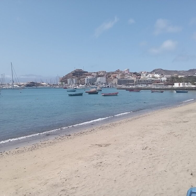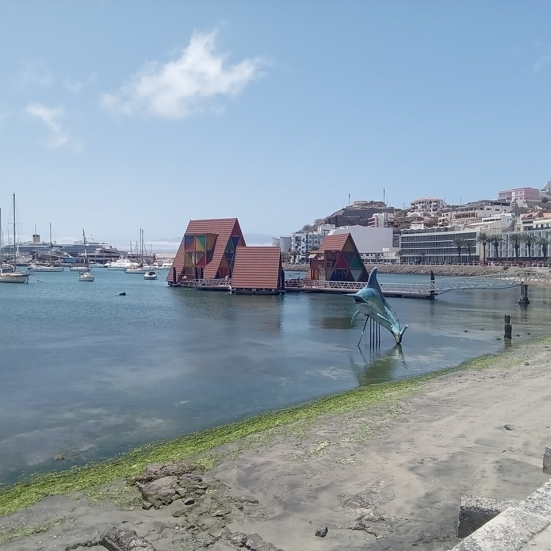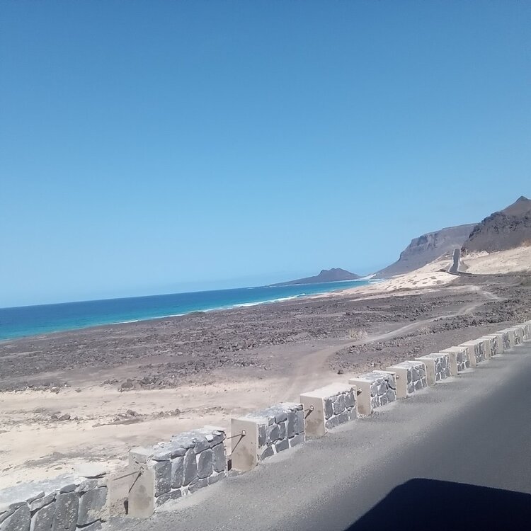 Mindelo Antes de Cabo Verde passamos por outras ilhas que também integram o país,almoçamos e desembarcamos para conhecer a cidade por umas horas.Grande parte não foi no tour guiado pago a parte,mas eu fui e adorei. A guia fala português de Portugal e o calor da África estava calmo neste dia. Saímos a pé do micro ônibus no centro histórico da cidade que não é longe do porto.Fomos visitar a casa da cultura,passa,os na porta do museu que conta a descoberta das ilhas por Portugal, mas não entramos,fomos a feria Livre e regressamos ao micro para a parte mais interessante do passeio. Subimos ao ponto culminante da ilha e vimos dois vulcões extintos.Com a altura,fazia frio acima mesmo para argentinos que eram todos no passeio,pois brasileiros não foram. E acabou o dia com o conhecimento de um lugar bonito, mas de muito difícil chegada a não ser por mar. 20250409_160906.mp41 ponto