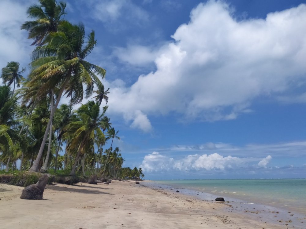 Resumo: Itinerário: Salvador a Recife Distância Aproximada Entre Origem e Destino (Google Maps): 784 km Distância Aproximada Percorrida Incluindo Passeios: 1.100 km Período: 24/07/2019 a 01/09/2019 (39 dias) Gasto Total: R$ 2.293,33 Gasto sem Transporte de Ida e Volta: R$ 1.779,43 - Média Diária: R$ 45,63 Ida: Voo de São Paulo (Congonhas) a Salvador pela Latam por R$ 212,95, sendo R$ 180,00 de passagem e R$ 32,95 de taxa de embarque. Volta: Voo de Recife a São Paulo (Guarulhos) pela Latam por R$ 300,95, sendo R$ 268,00 de passagem e R$ 32,95 de taxa de embarque. Paradas: 1- Salvador (Santo Antônio, próximo do Pelourinho): 1 dia 2- Salvador (Itapuã): 2 dias 3- Arembepe: 1 dia 4- Praia do Forte: 2 dias 5- Imbassaí: 1 dia 6- Subaúma: 1 dia 7- Baixio: 1 dia 8: Sítio do Conde: 1 dia 9: Costa Azul: 1 dia 10: Coqueiro - BA: 1 dia 11: Estância - SE: 1 dia 12: Aracaju: 3 dias 13: Pirambu: 1 dia 14: Ponta dos Mangues: 1 dia 15: Saramém - SE: 1 dia 16: Pontal do Peba - AL: 1 dia 17: Coruripe: 1 dia 18: Jequiá da Praia: 1 dia 19: Barra de São Miguel: 1 dia 20: Maceió: 3 dias 21: Paripueira: 1 dia 22: Barra do Camaragibe: 1 dia 23: Porto de Pedra: 1 dia 24: Maragogi - AL: 2 dias 25: Tamandaré - PE: 1 dia 26 Porto de Galinhas: 3 dias 27: Cabo de Santo Agostinho: 2 dias 28: Recife: 1 dia Considerações Gerais Não pretendo aqui fazer um relato detalhado, mas apenas descrever a viagem com as informações que considerar mais relevantes para quem pretende fazer um roteiro semelhante, principalmente o trajeto, preços, acomodações, rios a atravessar, meios de transporte e informações adicionais que eu achar importantes. Sobre os locais a visitar, só vou citar os de que mais gostei ou que estiverem fora dos roteiros tradicionais. Os outros pode-se ver facilmente nos roteiros disponíveis na internet. Os meus itens preferidos geralmente relacionam-se à Natureza e à Espiritualidade. Informações Gerais: Em boa parte da viagem houve bastante sol e pancadas de chuva breves, geralmente fraca ou só garoa. Dias com chuva prolongada foram poucos (acho que só uns 3). Não houve raios. A chuva, quando me pegava nas praias, apesar de não ser tão forte, tornava-se mais sensível devido ao vento forte. As temperaturas estiveram bem razoáveis (para um paulistano), variando de 20 C a 30 C. A sensação térmica às vezes era mais baixa por causa da chuva ou mais alta por causa do asfalto ou da areia. As praias, o mar, as lagoas, a vegetação, as paisagens rurais, os mirantes, as construções históricas e típicas e as igrejas agradaram-me muito . Em alguns trechos de mar aberto, o mar estava muito bravo, com ondas fortes e enormes, com muita correnteza, algumas vezes com direções conflitantes. Derrubou-me várias vezes. Em Sergipe o mar tinha cor escura, barrenta. Dava aparência de poluição ou sujeira para um leigo como eu, mas provavelmente eram sedimentos vindos de rios (talvez o São Francisco e o Real principalmente) e da chuva. Nos outros locais, principalmente em Alagoas, o mar tinha uma cor verde linda . Peguei 4 cocos na praia e 1 banana no chão em um caminho. Encontrei muito lixo nas praias, principalmente plástico. Encontrei também algumas tartarugas e peixes mortos. A população de uma maneira geral foi cordial e gentil. Em Baixio a Pousada Espaço Litoral aparentemente não quis me hospedar devido à minha aparência (de mochileiro andarilho), mas foi um episódio isolado. Foi impressionante a generosidade dos donos de acomodações e comerciantes, sendo que vários ofereciam cafés da manhã que eu não havia contratado ou produtos adicionais nas minhas compras . Procurei ser o mais educado possível e recusei quase todos para não abusar da hospitalidade. Em áreas remotas de Sergipe houve alguns trechos em que foi difícil conseguir acomodação para pernoitar. Em muitas localidades pequenas o comércio e a recepção das pousadas fechava cedo, o primeiro entre 17h e 19h e a segunda perto de 20h. A caminhada no geral foi tranquila. Os maiores problemas foram os rios a atravessar. Mas acabei conseguindo as travessias em quase todos. Não tive nenhum problema de segurança (nenhuma abordagem indesejada) nas praias nem nas estradas nem nas cidades. Precisei desviar de um trecho em Barreiras (Alagoas), em que havia um rio a atravessar para chegar no Pontal de Coruripe, devido ao domínio da área por traficantes (Boca de Fumo). Vários disseram-me para não passar ali e eu resolvi atendê-los e ir este trecho pela estrada. Muitos aceitaram cartão de crédito, mas vários com acréscimo. Um número maior aceitava cartão de débito, poucos com acréscimo. Meus gastos foram R$ 299,73 com alimentação, R$ 1.378,00 com hospedagem, R$ 101,70 com transporte durante a viagem, R$ 65,90 com taxas de embarque de ida e volta e R$ 448,00 com as passagens aéreas de ida e volta. Mas considere que eu sou bem econômico. A Viagem: Minha viagem foi de SP (Aeroporto de Congonhas) a Salvador na 4.a feira 24/07/2019 pela Latam (https://www.latam.com). O voo saía às 10h30 e estava previsto para chegar às 12h55. Paguei em 4 parcelas com cartão de crédito. Não pude escolher o lugar gratuitamente e não fiquei na janela. Durante o voo conversei com uma analista ambiental sobre a situação do meio ambiente em SP e no Brasil. Ganhei um cappuccino 3 Corações de chocolate de cortesia da Latam e da 3 Corações. Ao chegar, saquei dinheiro e peguei o ônibus do aeroporto até o metrô e depois o trem até a estação Campo de Pólvora, perto do Pelourinho, por R$ 3,70 pagos em dinheiro. Fiquei na Casa 37 Guesthouse (https://www.facebook.com/Casa37Guesthouse), que havia reservado pelo Booking (https://www.booking.com). No caminho da estação até lá, passei por parte do centro e fui apreciando a cidade. Paguei R$ 18,00 a diária, em dinheiro, sem direito a café da manhã. A proprietária Gisélia estava com o pé machucado, tinha desabilitado novas reservas e só esperava a mim na