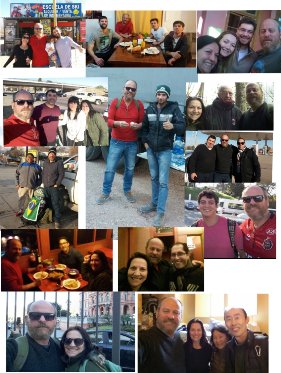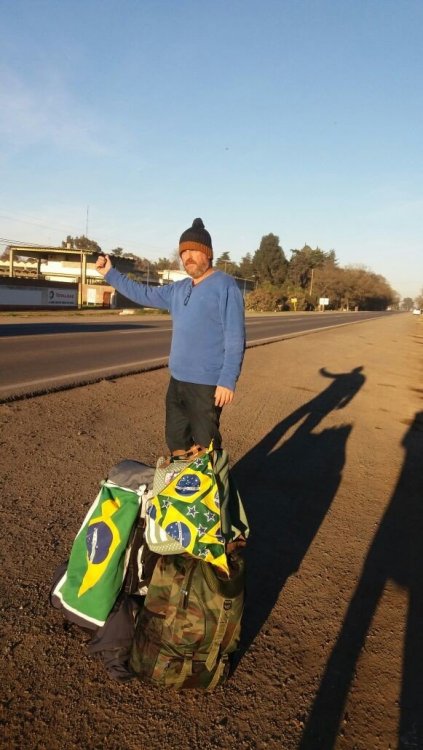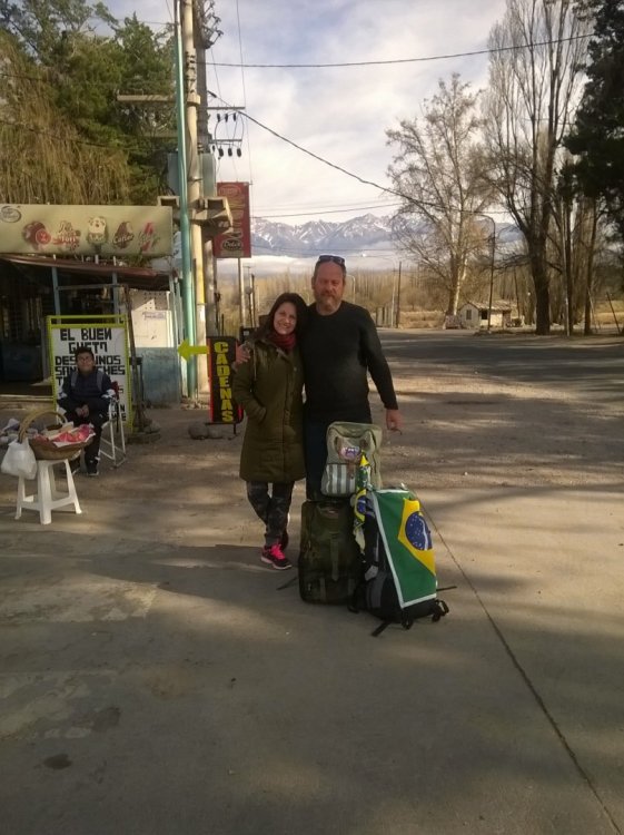 Eduardo – 50 anos – Funcionário Público Sônia Vargas – 50 anos - Comerciante Duas histórias distintas, mas com tudo a ver. Ambos separados, com filhos criados e uma vontade em comum: Fazer diferente. Apesar das marcas que o tempo se encarregou de deixar em cada um, pelo passar dos anos, a carcaça já não é mais a mesma, mas o pensamento… O pensamento de recomeçar e fazer o que a mente ainda é jovem, nos diz. Estamos juntos a pouco mais de um ano e a cada dia a cumplicidade aumenta e a vontade de viajar somaram-se, portanto estamos duas vezes mais dispostos. E foi isso que nos moveu a fazer uma trip nos moldes mochilão. (e podem ter certeza, não pararemos mais). Tenho acompanhado vários relatos por aqui, com dicas importantes que certamente nos ajudaram assim como ajudam vários outros mochileiros, entretanto, peço licença para fazer um relato um pouco diferente… Digo isto porque as pessoas (invariavelmente todas) , ficavam surpresas ao saberem de nossa história e da maneira como viajamos. Encontramos muita gente pelo caminho. Uns turistando, outros mochilando, outros a trabalho, enfim… e quando nos perguntavam como estávamos viajando, logo dizíamos que estávamos viajando de carona. - A dedo??? - Sí. A dedo!!! - Nooo… no creo… - Sí, creas porque es verdad!!! E assim seguia a conversa. Nos perguntavam se não tínhamos medo, se não era perigoso e outras tantas perguntas que rendiam boas horas de conversa. Tínhamos exatos 23 dias para fazer a trip, pois precisávamos voltar ao trabalho em 07/08/17. Para que não perdêssemos um segundo sequer, dividimos a trip em duas partes: a primeira era sair logo do Brasil e chegar a Colonia del Sacramento no Uruguai. Esta primeira parte fizemos de carro. Foram mais ou menos 780 km de Pelotas-RS até Colonia. Saímos sábado 15/07/17 as 11:16 e chegamos em nosso destino por volta das 21:45. Pronto. Estamos no Uruguai. Agora só vai… Uma boa ducha no Hostel El Español, Rua Manuel de Lobo 377, Colônia do Sacramento - e cama. Compartilhamos o quarto com dois franceses e um uruguaio. Domingo (dia 2) passeamos pelas belas ruelas de Colônia, vimos um lindo pôr do sol e bebemos um bom vinho no jantar ( feito por mim, aliás eu fui o cozinheiro oficial e único da trip, rsrsrs) Calle de los Suspiros -Colonia del Sacramiento Pô Pôr do sol em Colonia del Sacramiento Segunda-feira, (dia 3) após o desayuno (café da manhã), partimos para Buenos Aires via Rio de La Plata. Atravessamos pela Seacat. Chegamos à capital porteña no final da manhã e fomos direto a Rua Florida, a poucos minutos de Puerto Madero. Precisávamos cambiar, pois não tínhamos nenhuma moeda de peso argentino. Mal sabia eu que ali começaria o primeiro perrengue… Depois de quase quarenta minutos na fila, finalmente consegui cambiar. (R$ 1 por ARS 4,60). Dali saímos com nossas mochilas ás costas por quase 4 km até encontrar o Rock Hostel, ( Av. Rivadavia 1587, próximo ao Congresso Nacional – Telefone +54 11 4382-6345 ) que seria nosso endereço por três dias na capital argentina. Subimos os vários degraus até a recepção e quando o rapaz me pediu o RG para fazer o checkin, eis a surpresa!!! Cadê? Procura daqui, procura dali e nada… fizemos o checkin com o RG de Sônia Vargas. E agora? Como saio da Argentina e entro no Chile sem documento? Como retorno ao Uruguai??? Só restava uma esperança, ligar para casa de câmbio e perguntar. Foi o que fiz. - “No señor, no prestamos información por teléfono”… putz… Só nos restou caminhar até a Rua Florida novamente. Chegamos a casa de câmbio e perguntei a um rapaz se havia ficado um documento por ali. - Espera un momento que voy a averiguar. ¿Quién te atendió? - Un chico con tatuajes. E eis que o muchacho veio com o documento na mão! Ufa!!! Eu precisava de uma cerveja. E fui em busca de uma Quilmes!!! Voltamos ao Hostel, tomamos um ducha, descansamos um pouco, fizemos uma janta e nos convidaram para ir a “La Bomba” - um espaço de shows - tinha uma banda tocando – Ali conhecemos uma galera do mundo. Tinha umas gurias da Àustria, Hungria, Bélgica, França, etc e claro, muuitos argentinos, rsrsrs. Dali fomos a uma boate e dançamos até a carcaça não aguentar mais. Hostel. Descanso. No outro dia (dia 4) demos uma banda no Cemitério da Recoleta e pudemos apreciar os imponentes mausoléus e suas histórias. Depois fomos ao Caminito no Bairro de La Boca. Namorando no Cemitério da Recoleta Rolê no Caminito Quarta-feira (dia5) saímos do hostel e fomos em direção a RN7. Depois de alguns sobe e desce de metrô e ônibus, chegamos ao Terminal Las Piedras, onde compramos passagens para Junin, 270 km de Buenos Aires. Chegamos por volta das 15:00 e conseguimos de imediato uma carona para fora da cidade ( nossa primeira carona – cerca de 8 km). Não tivemos dificuldade para conseguir carona. As bandeiras do Brasil amarrada nas mochilas foram nosso passaporte para não esperar mais do que cinco minutos entre uma carona e outra. Chegamos na estrada as 15:20 , a segunda carona até Teodelina, 83 km de Junim, veio em seguida. Juan Pablo foi nosso chofer...Chegamos as 16:40. 16:47 a terceira carona até Villa Canãz. Um simpático casal de idosos, Juan Carlos e Matilde. Chegamos as 17:07. A quarta carona veio exatamente 4 minutos depois. As 17:11 estávamos a bordo de um Peugeot, dirigido por um tiozinho – sr. Alfredo - de un setenta e poucos anos. Aí veio o segundo perrengue: O tiozinho entrou contra mão, subiu canteiro e estava muito motivado ( pra fazer uma m…) depois de vários kms, percebi que o veínho tinha bebido umas e outras, mas aí… estávamos no meio do nada e o jeito foi rezar… O susto maior foi quando ele simplesmente não viu uma carreta… Lhe dei um grito e ele conseguiu parar a tempo… silêncio… andamos com ele por cerca de 76 km. Os piores de toda a trip. Muita tensão… Mas enfim, talvez tivéssemos sido “escolhidos” para salvar-lhe a vi