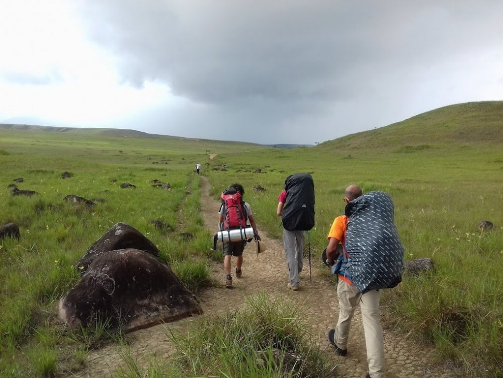 Partindo de São Paulo, eu e mais quatro amigos passamos 12 dias nessa viagem, incluindo o trekking do Monte Roraima e os passeios turísticos mais tradicionais de Manaus, entre outros programas mais alternativos que agradam qualquer mochileiro com espírito de aventura. Fizemos tudo da forma mais econômica possível sem comprometer a segurança e o mínimo de conforto, disso saiu um rolê bastante acessível, exótico e simplesmente fantástico. Acompanhe nesse relato dia a dia com todas as informações necessárias pra te ajudar a planejar e aproveitar ao máximo sua viagem e evitar perrengue. Essa foi também a primeira viagem internacional do grupo Trilhando na Faixa, então inscreva-se no canal para ver o vídeo assim que estiver disponível: https://www.youtube.com/channel/UCw7K-Ri4mgpVsG4WIBdIbSg Lembrando que os valores são aproximados e referentes a Julho de 2018, podendo apresentar variações. Os valores discriminados são em despesas essenciais, não esqueça de reservar um pouco do orçamento para uma regalia ou outra que não conste na lista. Bônus para os Veganos: O autor que vos escreve é um também, então acompanhem pra terem informações específicas sobre a alimentação vegana em cada local. Índice de dias (use o Ctrl+F para navegar): Dia 1 – De São Paulo a Manaus a Boa Vista Dia 2 – De Boa Vista a Santa Elena de Uairén Dia 3 – De Santa Elena ao Paratepuy ao Acampamento do Rio Têk Dia 4 – Do Rio Têk ao Acampamento Base Dia 5 – Do Acampamento Base ao Hotel Índio e circuito no topo Dia 6 – Vale dos Cristais Brasileiro, Ponto Tríplice, El Foso e o cume Dia 7 - Do topo ao Rio Têk Dia 8 - Fim do trekking e Gran Sabana Dia 9 - De Santa Elena a Boa Vista, Lethem e Manaus Dia 10 – Manaus, praia da Lua e Mercado Municipal Dia 11 – Rios Negro e Solimões, INPA e bar Dia 12 – Teatro Amazonas e retorno pra São Paulo Antes de mais nada – Preparação O planejamento da viagem foi montado em torno de seu prato principal, o trekking do Monte Roraima, então as outras coisas entraram como um adicional oportuno. Para o trekking em si Juntamos um grupo de 6 pessoas com disponibilidade de duas semanas em Julho para subir o Roraima de forma econômica, nosso plano foi de contratar um guia local e fazer o trekking sem recorrer a porteadores de equipamentos ou serviços de agência. Estando todos habituados a atividades outdoor, não seria problema algum transportar nossas cargueiras ou cozinhar nos acampamentos, então o serviço de que precisaríamos seria o mais básico possível. Procuramos por guias que trabalhassem dessa forma e encontramos algumas boas opções, sempre indo atrás de indicações e comentários sobre cada um. Tendo sido o que prestou melhores esclarecimentos sobre tudo que precisávamos e estando numa faixa de preço bastante razoável, além de ter sido recomendado por uma conhecida, optamos pelo Jesus (WhatsApp: +5804266940599 / +5524992802417 ), contratamos o serviço de guia para uma expedição de 6 dias e um porteador para a estrutura de “banheiro” (mais sobre isso adiante) e transporte de lixo e dejetos, já que o Parque Nacional Canaima exige que se traga de volta isso tudo. Lá não existe levar pazinha e enterrar os dejetos, os porteadores trazem tudo de volta em sacos plásticos grossos com cal. É incluso também o transporte em 4x4 de Santa Elena ao Paratepuy, onde começa a trilha, e a volta. Os guias não cobram por pessoa, mas pelo trekking em si, independentemente do número de participantes. Cada guia pode levar até 6 pessoas. O valor acordado foi de 3000 mil reais, totalizando 500 de cada um de nós. Antes da viagem, uma das pessoas envolvidas precisou desistir da viagem e o custo final foi de 600 por cabeça. Nos oferecemos para pagar parte do valor em equipamentos de camping, já que eles são muito caros e difíceis de conseguir na Venezuela, e Jesus incluiu um passeio em algumas cachoeiras da Gran Sabana no último dia do trekking como uma troca de gentilezas. Todo mundo saiu feliz, rs. Pagamos uma parte do preço antecipadamente para reservar o serviço, o restante seria pago em mãos na véspera da expedição. Mantivemos contato com o guia nos meses antes da viagem para preparamos os equipamentos e afins, partimos da seguinte lista de itens essenciais, que pode ser ajustada de acordo com as necessidades de cada um: É perfeitamente possível reduzir o número de trocas de roupa; uma para o dia e uma para a noite, mais uma de reserva, só é muito importante ter todas as peças para o sistema de aquecimento em camadas e também um bom número meias, se possível utilize as específicas para trilha, são caras mas valem muito a pena para o conforto e saúde dos pés na expedição. Do contrário, improvise um liner colocando uma meia social sob a comum, isso ajuda a reduzir o atrito dos pés com a bota e previne bolhas. Truque simples e funcional. Julho é temporada de chuvas no Roraima, então pra quem vai nessa época é muito importante ter uma barraca resistente a água (o sobreteto sim, mas também o piso, atenção pra isso); roupas impermeáveis; saco estanque para os eletrônicos, saco de dormir e roupas; sacos plásticos para o restante; capa de chuva pra mochila e possivelmente ainda um poncho. IMPORTANTE: Não use barraca que não seja autoportante, no topo do Roraima é bem capaz que ela dê trabalho ou seja simplesmente inútil no chão de pedra e areia dos hotéis (parapeitos rochosos ou pequenas grutas que servem de cobertura natural, provendo locais de acampamento protegidos de chuva e vento). O tempo lá é imprevisível e muda muito rápido por conta dos ventos alísios. Chove com frequência, em geral em baixo volume, mas às vezes a aguaceira pode vir mais forte. Não tem hora pra cair a chuva, as previsões do tempo dão uma ideia do que esperar, mas inevitavelmente vão errar em algum momento. Esteja sempre preparado. Uma boa mochila é essencial para quem vai levar suas próprias 