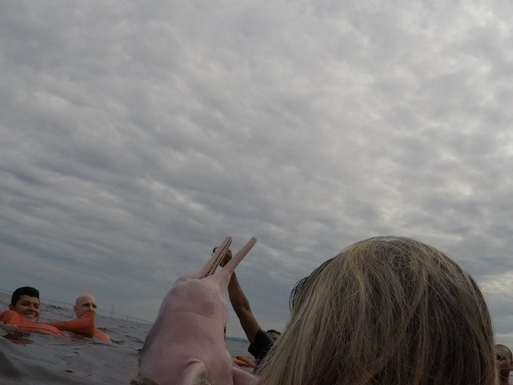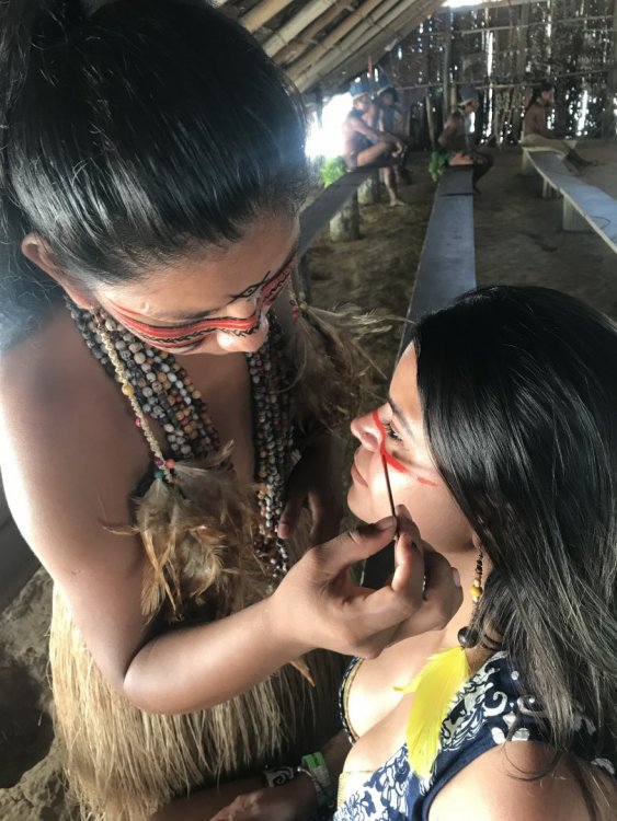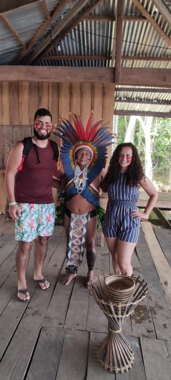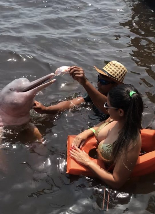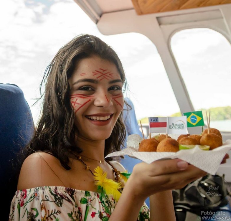 Safári Amazônico. O passeio chamado Safári Amazônico, um tour de um dia que sai de Manaus e percorre de barco as principais atrações da região do rio Negro: Tribo indígena, Botos cor de rosa (Boto Vermelho para os amazônidas), Lago Janauari (almoço), Ponte Sobre as Árvores e Encontro das Águas. Saídas: terça, quinta, sexta, sábado e domingo. Horário: 8:00 às 16:30 Embarcação: Lancha Rápida (Speed Boat) Pagamento: Visa / Master / Amex / Cash: 120 reais, com tudo incluso. Incluso: almoço, guia bilíngue, taxa de embarque e de visitação. A viagem segue com destino à uma comunidade indígena onde participamos de um ritual de apresentação e conhecemos um pouco sobre sua cultura. Logo após descemos o Negro passando pela orla da cidade em direção ao Parque Ecológico Janauary, no local foi servido um almoço regional (cardápio à base de peixes, carne ou frango, saladas e acompanhamentos, buffet self-service), depois fomos uma visita às vitórias-régias caminhando sobre uma passarela palafita na selva, em seguida visitamos a feira de artesanato local. Muitos animais silvestres, entre eles muitos macacos. Após isso, vamos ao mais esperado do passeio, o Encontro das águas, Rio Negro e Solimões, que correm juntos 7 kms para se misturarem e formar o Imenso Rio Amazonas, com o segundo encontro, lá no Pará, em frente a Santarém e desaguar no Oceano Atlântico, perto de Belém do Pará, porém isso já é outra história, farei um novo tópico. Saindo em direção a Ponte Sobre o Rio Negro. As fotos são de 2 modelos, que fui fazer os books para os portfólios delas. Roteiro: Saindo do porto (Roadway), subimos o rio Negro em direção à plataforma flutuante de interação com os botos, onde tivemos a oportunidade de nadar com esses animais incríveis e dóceis e observá-los ao serem alimentados por um nativo. Vamos aos detalhes: Primeira parada: Tribo indígena - a primeira parada foi na Tribo Indígena Tucanas, onde fomos recebidos com uma pequena demonstração da cultura, costumes e rituais indígenas da tribo. Dançamos, comemos e apreciamos o estilo de vida deles. Curiosidade: As formigas fazem parte da alimentação deles, assim como peixes e raízes. As formigas que provei na aldeia, tinham gostinho de amendoim, bem crocantes, como um salgadinho. Além de tudo o que vivenciei e aprendi, fiquei impressionado com o visual da aldeia. A vista do rio Negro, é fantástica. Uma sensação de paz e tranquilidade incrível. E os Tapurus, isso nós já estamos acostumados, desde que servimos ao exército e fazemos o "Boina Verde" um tipo de sobrevivência na selva. E como não poderia faltar, o peixe assado. Depois vem o convite para dançarmos como os índios,é sensacional. Na Tribo Indígena Tucanas, onde fomos recebidos com uma pequena demonstração da cultura, costumes e rituais indígenas da tribo. Dançamos, comemos e apreciamos o estilo de vida deles. Curiosidade: As formigas fazem parte da alimentação deles, assim como peixes e raízes. As formigas que provei na aldeia, tinham gostinho de amendoim, bem crocantes, como um salgadinho. Além de tudo o que vivenciei e aprendi, fiquei impressionado com o visual da aldeia. A vista do rio Negro, é fantástica. Uma sensação de paz e tranquilidade incrível. Depois foram as fotos com os índios e dos índios Tucanas. Aperta a fome, é hora do lanche, pois teremos muito chão pela frente, opaaa, muita água. Segunda parada: Interação com os Botos Obs.: Não tem saídas para interação com os botos às quartas-feiras, considerando a necessidade de promover o turismo responsável, estimulando o equilíbrio natural da espécie dentro de seu habitat conforme determinação do Ibama. A parada seguinte foi no flutuante do boto. Os animais ficam livres no rio Negro, não ficam em cativeiros e "aparecem" no local pois são alimentados, sendo que não é permitido encostar nos animais. Sugestão: Levar dinheiro trocado para o caso de compras de artesanato, toalha e roupa de banho. Assim que chegamos, fomos orientados de como nos conduzir na água. Após orientação do pessoal do flutuante, colocamos coletes e entramos na água em pequenos grupos, 6 por vez. Os visitantes são convidados a entrar na água para sentir a movimentação dos animais, mas é estritamente proibido encostar ou alimentá-los. Somente os monitores, podem alimentar os botos. Não é possível avista-los, quando estão submersos, pois a água do Rio Negro é escura, como já diz o nome do rio. Se leva sustos com os botos, passando ao lado das perna e braços da gente. Terceira parada: Restaurante Flutuante. Já era quase meio dia e a fome estava apertando. A próxima parada foi em um restaurante flutuante, onde almoçamos. O restaurante totalmente flutuante. A comida era deliciosa. Comi peixe, muito peixe Tambaqui e Pirarucu, deixei o frango e carme de lado, pedi como bebida, um delicioso suco de cupuaçú. Apo's o almoço, vamos a "feira de artesanatos dos nativos", ali próximos, é como se fosse passar de uma balsa a outra. Não dei muita importância, pois como mora na região, já não me chama a atenção esses produtos, porém os turistas ficam muito tempo vendo esses produtos. Então convidei a minha modelo, e fomos para a Ponte Sobre as Árvores, onde poderíamos encontrar alguns animais. Quarta Parada: Ponte Sobre as Árvores: Alguns animais que se encontram na mata próximo ao restaurante, tem o bicho preguiça, jacaré e muito, mais muito macaco e pássaros de todos os tipos e cores. Aqui é quase certo de encontrarmos muitos macacos, e eu já sabia disso, então sai na frente com a modelo para as fotos, bem antes dos turistas chegarem. Iniciando as fotos da modelo, vem um dos macacos e se aproxima dela, como dizendo, "Eu também sou modelo", claro, um modelo de macaco. Ficou até engraçado a foto da modelo com ele ao lado. Vale lembrar, que esses animais ficam soltos na selva. Observe que tem mães macacas, carregando seus filho