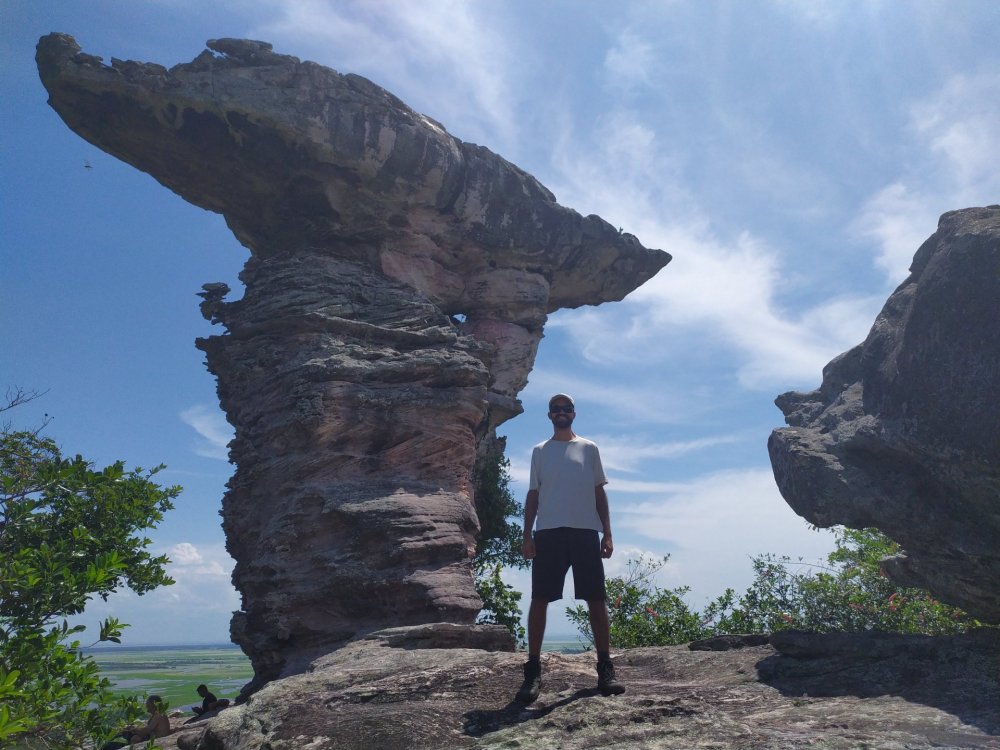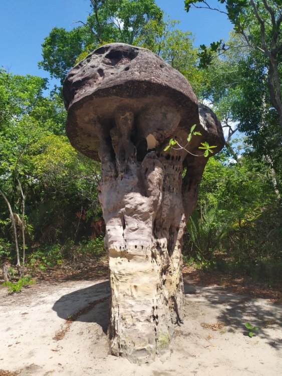 O Parque Estadual de Monte Alegre - PEMA pode ser facilmente incluído em uma viagem por Santarém e Alter do Chão. Para chegar no município de Monte Alegre, é necessário pegar uma balsa no porto do DER em Santarém, com saídas diárias conforme a escala abaixo (desconsiderem a frase e a seta indicativa hehehe) e duração de aproximadamente 2h de viagem até Santana do Tapará, de onde saem carros (transporte alternativo) ou ônibus regulares com destino a Monte Alegre (R$30, 1h15 de viagem). O parque se situa a cerca de 35km do centro de Monte Alegre. Criado em 2001, abrange uma área de 3.678 ha com vegetação de Cerrado, formações geológicas super interessantes, grutas e ainda pinturas rupestres com cerca de 12 mil anos de idade. Vale a pena reparar na paisagem ao longo do caminho entre a cidade e o parque, na qual se verá os campos de Monte Alegre: formações de campo sujo em que o capim natural parece que foi roçado por alguém. Para conhecer o parque é recomendável ir com carro traçado, pois há alguns trechos com areia fofa e alta. O guia atualmente é obrigatório. Fomos com o agente de turismo Natio (NW Transfer - 92-991810506) e com o guia Ilivaldo, ambos super atenciosos e com muito conhecimento sobre a região. As paisagens de Cerrado imersas na Amazônia são maravilhosas! E digo isso como um "calango do Cerrado do Planalto Central". 😂 O PEMA é um campo cheio para quem curte pinturas rupestres e de viajar na imaginação sobre os povos originários. Logo na entrada do Parque, nos deparamos com a Serra da Lua, um paredão com pinturas de 11.200 - 12.000 anos que se estendem por mais de 200 m. Entre as figuras, alusões ao sol e lua, figuras zoomórficas, outras antropológicas, outras que cada um pode interpretar da maneira mais conveniente para si, deixando a imaginação fluir. Interessante ver como algumas pinturas foram feitas em locais mais altos. Será que usavam escadas, andaimes ou em alguns locais subiam uns nos outros, como os pichadores dos nossos dias? Ainda não se sabe a resposta e provavelmente nunca saberemos exatamente. Do alto da Serra, é possível ver melhor o design do centro de visitantes/complexo de musealização, que foi construído inspirado nas pinturas rupestres e tem banheiro e espaço para loja, lanchonete, museu e biblioteca, mas que por enquanto ainda não está em pleno funcionamento. Ô, Governo do Pará, vamos dar mais atenção para este lugar incrível! Seguindo pela estrada, chegamos à Pedra do Mirante. O nome por si só já define o local. Um dos melhores pontos para se ter uma vista em 360° da paisagem e se deslumbrar com o rio Tapajós ao longe, encontrando uma faixa de floresta amazônica que depois se entremeia na vegetação de Cerrado. VID_20191208_101547.mp4 Mais adiante na estrada, chegamos à Gruta de Itatupaoca, com 56m de comprimento e uma bela entrada de cerca de 9,5m de altura. Dentro da gruta, infelizmente há traços de vandalismo de um pastor doido (segundo o guia) que pendurou uma garrafa de plástico no teto e escreveu uma frase em referência a Deus no teto da entrada. Seguindo o caminho, chegamos à Pedra do Cogumelo, uma formação bem interessante, que fica isolada, bem no meio do Cerrado. E um pouco mais adiante, avistamos a Pedra da Tartaruga, que fica na parte alta da serra. De longe parece mais um pato pra mim (hahaha!), mas olhando melhor se vê a tartaruga em cima da base de rocha. Mais adiante no parque, encontramos o Painel do Calendário, com mais figuras de animais, outras geométricas abstratas e as que motivam o seu nome que consistem quadradinhos marcados, como se indicassem a contagem de dias. Ou seria de pessoas, de animais ou de qualquer outra coisa?! A partir do Painel iniciamos uma caminhada um pouquinho cansativa de cerca de 20 min até a Pedra do Pilão. Com cerca de 8m de altura e uma bela visão da paisagem, é um dos atrativos de maior destaque no parque. No nosso percurso acabamos não visitando a Gruta do Pilão (caverna da Pedra Pintada), a qual tem mais mais algumas pinturas rupestres, pois estava fechada por conta de infestação de marimbondos (ou "cabás" em bom paraense hehehe). Realmente valeu muito a pena incluir Monte Alegre na viagem pela região de Santarém e Alter do Chão. Se quiser ver algumas dicas de Alter do Chão, acesse o meu Instagram de viagem: https://www.instagram.com/viajadon_/ Outras informações: - O nosso condutor Natio levou frutas, água, suco e biscoitos no passeio, então não tivemos que nos preocupar com comida e água previamente. - O passeio tem uma duração total de 5h30, 6h com saída às 7h30 da sua hospedagem. - Ficamos no Hostel Itatupaoca. O local é uma grande casa com posição e vista privilegiadas. O preço era bom, o café da manhã simples, mas bastante satisfatório, porém ficamos decepcionados com a limpeza do local e com o conforto das camas. Para reservar hospedagens, acesse o link https://join.booking.com/r/d/8065942d?lang=pt-pt&p=4