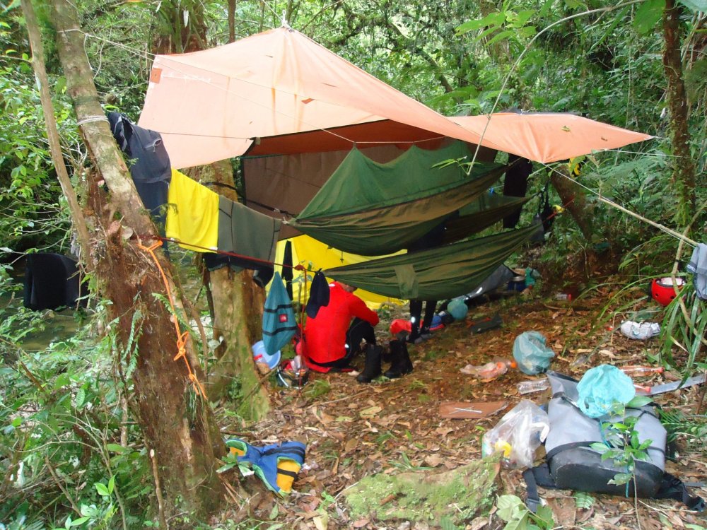 ALTO GRANDE X ESPELHO Estávamos à beira do abismo colossal quando ele apareceu, vindo sei lá de onde. Como um dragão cuspidor de fogo, parecendo ter saído das páginas do apocalipse, veio em nossa direção, sobrevoou os vales do Rio Cachoeira, Puruba e Verde, passou próximo da Montanha mais alta de toda a Serra do Mar Paulista e botou força nos seus motores e suas hélices. Ninguém sabia o que estava acontecendo, uns gritavam que era a Polícia Militar, outros insistiam que se tratava da Federal, eu mesmo só pensava em não cagar nas calças diante daquela cena dantesca e inusitada. Aquela era sem dúvida uma das montanhas mais isoladas de Ubatuba, lugar onde pouca gente já teve a honra de botar os pés e o seu nome refletia a angustia presente no olhar de cada um daqueles dez aventureiros que ali estavam, depois de uma jornada duríssima até o seu cume, esquecido pela civilização. Quando pairou sobre nossas cabeças, há 5 metros do chão, eu pensei em fugir, mas atrás de mim uns 500 metros de vazio me dizia que era caminho sem volta e aquela frase clássica escapou da minha boca num sussurro quase inaudível: “ AGORA FUDEU! Agora fudeu de verdade “ A EQUIPE: Régis ferreira, Paulo Potenza, Luciano Carvalho, VGN Vagner, Daniel Trovo, Divanei Goes de Paula, Rafael Araujo, Alan Flórido, Maurício Carbone e Thiago Silva(fora da foto) Se fizéssemos uma pergunta sobre qual o CUME da Serra do Mar de São Paulo, muitos daqueles que estão acostumados com os esportes de aventura e detêm um mínimo de conhecimento, vão dizer logo, com razão, que essa montanha é sem dúvida o TIRA CHAPÉU ( 2088 M) , mas outros poderiam contestar e chutariam que a mais alta é a Pedra da Bacia( 2090 m , mas nunca provado) , as duas turística e de fácil acesso, situadas lá pelas bandas de São José do Barreiro, no Parque Nacional na Serra da Bocaina. Pois bem, mas quando nós dizemos Serra do Mar Paulista sempre estamos nos referindo a sua parte litorânea, seu espigão fantástico, coberta de florestas quase intocadas, de onde rios selvagens escorrem do planalto em direção ao mar, num dos mais lindos ecossistemas do mundo. Dos 16 municípios que compõem o nosso litoral, QUAL SERIA A MONTANHA COM MAIOR ALTITUDE E ONDE ESTARIA LOCALIZADA, ou seja, QUAL O CUME DA SERRA DO MAR PAULISTA, em todo seu litoral? Durante muitos anos em que estivemos explorando a Serra do Mar, essa pergunta sempre martelou em nossas cabeças, muito porque nos faltavam mapas confiáveis e cartas com divisas de municípios e unidades de conservação. Quando meus estudos técnicos começaram antes da EXPEDIÇÃO que descobriu o Cume da Serra dos Itatins/Juréia, fui empurrado para o litoral norte tentando descobrir se aqueles picos gigantes, em se tratando de Serra do Mar, estavam ou não localizados na Bocaina e sinceramente na época, não consegui angariar informações convincentes, tanto que os 1425 metros do Pico Desmoronado nos Itatins, que eu pensava ser o cume da Serra, acabamos nem nos apegando a isso, porque faltava uma confirmação. Para muita gente, ou pelo menos para uns 99 % delas, o CORCOVADO de Ubatuba seria o cume de Ubatuba e para alguns vai muito mais além, alguns afirmam que seria o ponto mais alto também da Serra do Mar, inclusive até para alguns órgãos oficiais, uma vergonha gigantesca, uma desinformação que chega a ser patética diante do nanismo do Corcovado que não passa de míseros 1.181 metros. Outros mais antenados apostariam suas fichas no Cuscuzeiro (1278 m), ainda que pertencendo a Bocaina, mas situado também em Ubatuba. E por fim, alguma meia dúzia de gato pingado, e gente mais letrada em se tratando de estudos de mapas, irá dizer que existe um pico na divisa com Parati que atende pelo nome de PEDRA DO ESPELHO, mesmo que jamais tenha botado seus pés lá. A PEDRA DO ESPELHO eu já tinha ouvido falar e havia chegado a ela nas pesquisas dos mapas, mesmo não tendo essa certeza toda, mas havia algo que me intrigava: Pouco mais de dois quilômetros e meio ao norte/noroeste do Espelho, um cume proeminente me dava quase a certeza de que o Espelho era mais baixo e quando tive acesso a alguns mapas mais detalhados, a minha dúvida começou a ruir. Era certo que aquela montanha estava acima dos 1600 metros, mais de 100 metros acima do Espelho, mas tinha um, porém: Aquele pico até então desconhecido e sem nome, ao menos para mim, pertencia a Cunha-SP ou a Ubatuba-SP, pertencia a Serra do Mar ou a Serra da Bocaina? Aí alguém poderá me perguntar que diferença faria isso e eu simplesmente diria que se esse pico pertencesse a Cunha ou pior ainda, a Paratí-RJ, não faria o menor sentido se preocupar com ele, porque seria mais um, dentre tantos outros picos altos naquela região. Aliás, mesmo a PEDRA DO ESPELHO, apesar de pertencer a Ubatuba, estaria inserida no Parque Nacional da Serra da Bocaina, que é compartilhada tanto por São Paulo, mas também pelo Rio de Janeiro, mas mesmo assim ainda seria o ponto mais alto do LITORAL DE SÃO PAULO, só que nem isso seria verdade, como descobriríamos mais adiante. Sem saber como acessar nem o Espelho e nem muito menos essa montanha que eu supunha ser o Cume da Serra, mas não tinha certeza, fui cuidar de outras expedições à essa Serra onde a aventura te chama para qualquer lugar que você olhe e numa dessas aventuras foi que conhecemos o Alan Flórido e o Thiago Silva, dois conhecedores do litoral norte, inclusive o Flórido foi convidado por nós na expedição que ascendeu ao cume da Pedra da Boracéia( 1270 m) por uma nova rota, mas como estava às voltas com outra viagem e por infelicidade ficou fora de combate por causa de uma hérnia de disco, acabou abortando sua ida, mas numa discussão informal, acabou deixando vazar que conhecia uma rota para o Espelho e que o Thiago também já havia estado nessa montanha que eu buscava e não tardou em a gente alinhar uma data para irmos juntos desvendar esse mistério, mesmo que 