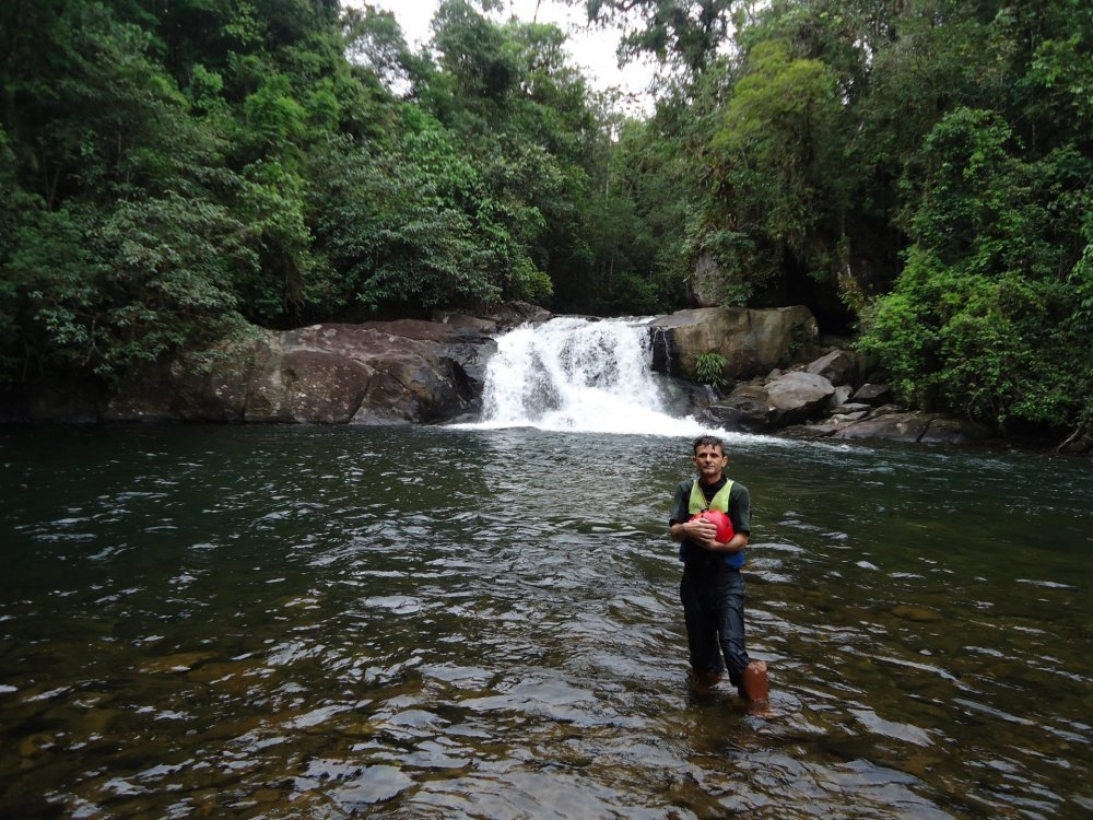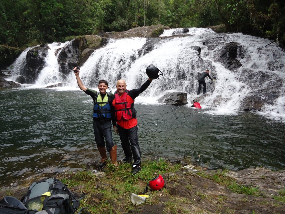 EXPEDIÇÃO BRACINHO (Anderson, Dema , Trovo , Divanei , Decio e Régis ) ......................“Aquilo parecia mesmo ser uma estupidez. Não que eu já não tenha feito uma infinidade de coisas estupidas nesses quase 25 anos de aventuras, mas com a idade a gente começa a tentar ficar longe dessas ações que possam nos levar a um acidente do qual talvez não tenhamos mais como nos recuperar. O Daniel Trovo, mestre das insanidades aquáticas, já havia inaugurado o salto, despencando no poço gigante sem jamais ter estado lá, o Dema também confiou nele e se jogou sem nem pensar e até o tio Décio, olha só, já se encontrava no fundo do poço. Nem me pareceu tão alto em um primeiro momento, mas olhando bem da beirada da cachoeira, me deu uma embrulhada no estômago, mesmo assim os meus medos não advêm da altura, mas da possibilidade do que poderia se esconder no fundo do poço. Jogo minha mochila que explode na água e ao longe vejo o sorriso dos outros dois companheiros de expedição (Rosa e Régis) que optaram pela sensatez e desescalaram as paredes da queda d’água e foram fazer as fotos bem longe daquela loucura. Tomo distância, dou uma corrida e paro imediatamente. Melhor não, melhor deixar pra lá, mas lá de longe a plateia grita freneticamente para eu não desistir, então resolvo que tentarei saltar usando o patamar 1 metro mais abaixo, não muda nada, mas as condições psicológicas me diz que poderá ser menos pior, mas ao me aproximar ainda mais a fim de baixar para esse patamar é que observo uma língua de pedra que se estende da parede em direção ao poço. DEUS ME LIVRE! Se eu escorregar o pé de apoio vou me esborrachar naquelas pedras lá embaixo. Um misto de ansiedade toma conta de mim, eu quero ir, mas o medo me puxa para trás, faço menção de desistir de vez, mas a plateia grita pula, pula e eu já perdi o rumo, com o corpo tomado pela adrenalina que já invadiu cada centímetro do meu corpo. Quer saber de uma coisa: FODA-SE, LÁ VOU EU!”.................. ( rio Bracinho e sua água incrivelmente transparente) Poucos lugares são tão incríveis nesse país quanto a Serra do Mar de São Paulo, não só por conter uma das florestas mais exuberantes do mundo, mas pelo fato de estar muito perto de uma das maiores cidades do planeta e ainda esconder no seu interior selvagem uma infinidade de biodiversidade que talvez não se encontre em nenhum outro lugar do Brasil. Por incrível que pareça, são lugares desconhecidos até mesmo de pesquisadores, moradores locais e exploradores modernos, lugares que passaram despercebidos justamente pelo seu isolamento e pela dificuldade para serem penetrados. Já há mais de meia década que a gente vem se dedicando a revelar esses paraísos perdidos, principalmente rios intocados, onde o ser humano ainda não espezinhou e até mesmo os famigerados caçadores e palmiteiros, mal conseguiram aranhar, justamente pela dificuldade técnica de acesso, mas ultimamente até parte do nosso grupo vinha tendo uma certa resistência porque as expedições acabaram por ter que se distanciar cada vez mais, se enfiar cada vez mais num mundo desconhecido e sem a certeza de que poderia nos revelar algo que realmente interessasse para parte do grupo , que sempre ia em buscas das grandes cachoeiras perdidas nos rio selvagens. Depois de 2 expedições que revelaram o interior de grandes rios de uma certa região, meus olhos acabaram por se voltar para alguns rios menores, rios com desníveis bem inferiores aos anteriores como o Lourencinho, o Itariru , mas a descida do Pedreado ,ocorrida esse ano, me disse e me ensinou que se valer de desnível de rio para saber se vale a pena ou não empreender uma expedição era uma grande bobagem, mesmo porque o PEDREADO( Braço Grande) nos surpreendeu positivamente, mas mesmo assim, uma grande parte do grupo, que obviamente se recusou a encarar o rio citado acima, ainda não havia se convencido que tanto esforço e perigo poderia mesmo valer a pena. ( Rio Pedreado) O Vale do Rio Bracinho levou alguns anos até para ser localizado no mapa devido ao seu isolamento por baixo da grande floresta e das grandes montanhas que o cercava e o espremia, era quase impossível saber aonde realmente começava a sua nascente e só depois de eu recorrer a diversos mapas e cartas antigas foi que aos poucos ele foi se revelando e juntamente com o Décio Marques, fomos juntando um quebra-cabeças até que conseguimos chegar a um consenso e nos pôr a planejar a expedição para valer. O rio apresenta duas nascentes distintas em forma de “Y”, sendo a nascente da direita (de quem desce o rio) a menor e a esquerda a maior, as duas se convergindo para formar o “Grande Bracinho”. Pois bem, saber por onde corre essas duas nascentes era o “x” da questão, porque era um emaranhado no meio de uma floresta gigante e longe, muito longe de qualquer lugar habitado e com acesso motorizado. Os estudos nos levaram a escolher 2 pontos de acesso, uma em cada ponta dessas nascentes, sendo a nascente mais curta distante uns 20 km de Juquitiba e a mais longa uns 30 km. No final chegamos à conclusão que pelas condições da estrada, a vertente mais curta poderia ser a mais interessante porque nos daria a possibilidade de fazer esse caminho usando um transporte que nos deixaria a pelo menos umas 4 horas de caminhada do rio varando mato, não era nada animador, mas era o que tínhamos , era ao que poderíamos nos apegar se quiséssemos realmente tentar colocar aquele rio no mapa. ( inicio Bracinho em amarelo) A única maneira de termos uma chance da expedição dar certo, era irmos antes lá e tentarmos primeiro achar o rio e só depois montarmos uma equipe e para isso tracei uma linha no mapa me valendo das curvas do terreno para podermos chegar ao rio com um esforço o menor possível. Traçada a estratégia inicial, coube ao Décio e aos meninos Régis, Potenza e Rafael, a missão de inaugurar os trabalhos e num sábado qu