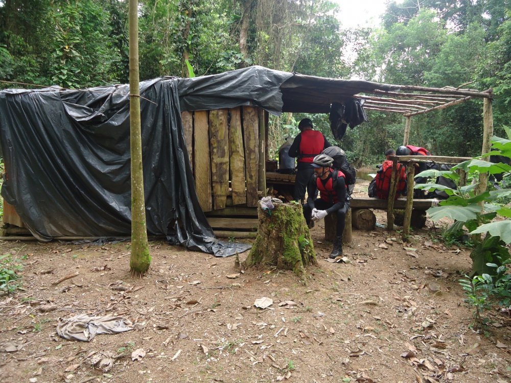 De Biritiba-Mirim à Bertioga-SP “ Chafurdados no pântano até o pescoço, cinco criaturas se arrastam na lama, se esgueirando entre camas de jararacas e casas de jacarés do papo amarelo, tentando fugir das desgraças aquáticas proporcionada pela aquela EXPEDIÇÃO que havia partido do Planalto Paulista três dias atrás. A tarde já vai pela metade e já dão por certo ter que dormir dentro d’água e virar comida dos mais terríveis insetos asquerosos que habitam aquele inferno alagado. A resiliência parece já ter tomado a alma de cada um daqueles infelizes, isolados do mundo, sem comunicação nenhuma, largados à própria sorte e fadados a pagar seus pecados antes de se transformarem em criaturas do brejo, melhor seria se fossem logo comidos por uma sucuri gigante, seria um desfecho mais glorioso para aquele sofrimento. ” (Da esquerda para direita : Anderson , Potenza , Divanei , Vagner , Trovo . ) Alguns roteiros são planejados e quando se vê a impossibilidade momentânea de realiza-los, são jogados e esquecidos numa gaveta ou num arquivo qualquer do computador, indo parar numa espécie de limbo digital até que alguém te faça lembrar que ele exista. O Rafael Araújo me consultou sobre a possibilidade de botar essa expedição em pratica já que os planos iniciais para o feriado do Carnaval acabaram indo por água a baixo. Acontece que essa Travessia tinha um entrevero que até então eu não havia achado solução, aí foi preciso voltar às pesquisas nos mapas e cartas topográficas a fim de desvendar o mistério. O projeto inicial da travessia partiria de Biritiba-Mirim, mais precisamente nas dependências da SABESP, num lugarejo conhecido como CASA GRANDE, mais de 20 km do centro do citado município, um fim de mundo servido por uma estrada de terra toda zoada. Partindo de Casa Grande ainda seria preciso mais 5 ou 6 km de andanças até interceptar a trilha de acesso para a CACHOEIRA DO DIABO, uma queda d’água quase que desconhecida nas nascentes do rio Guacá, descer o próprio rio por mais de 1 km e a partir de aí abandoná-lo pela esquerda e se jogar num mundo desconhecido varando mato montanha acima até a crista da serra e despencar para fundo do vale, ganhando as nascentes do RIO GUAÇU, afluente do grande Rio ITAGUARÉ. Do topo da serra à quase 800 m, desceríamos o despenhadeiro até a planície litorânea de Bertioga e aí é que estava o enrosco: Como passar pela área alagada, um mundo feito de água, pântano, mangue e charco? A solução inicial pensada foi a de traçar uma linha reta quando o rio arrefecesse, direto para uma estrada a 3 ou 4 km a sudoeste (direita de quem desse o rio) e deixar que o destino nos guiasse no final da travessia, mas já prevendo que o capiroto poderia fazer sua morada naquele caminho. (laranha- trilha até cachoeira do Diabo) ( vermelho - caminho da expedição selvagem) Ultimamente o grupo de gente disposta a enfrentar essas Expedições incertas acabou por diminuir drasticamente, alguns simplesmente começaram a achar que algumas travessias vinham se enveredando por lugares extremamente perigosos, outros acabaram por buscar atividades com menos perrengues, indo aprender novos esportes ligados ao mundo da aventura e outra parte já haviam sinalizado com compromissos familiares. No final apenas cinco míseros corajosos se dispuseram a enfrentar esses caminhos nunca dantes navegados e então numa sexta-feira cinzenta o grupo se juntou depois das 10 horas da noite na Estação Estudantes, em Mogi das Cruzes de onde partiria nossa VAN com destino à Casa Grande, no município de Biritiba-Mirim. A viagem de Mogi até Casa Grande deve ter levado umas duas horas e meia, o certo é que estávamos tão envolvidos jogando conversa fora e revivendo expedições passadas que nem nos demos conta do tempo. Depois de chegar até as instalações da SABESP (Companhia de Águas Paulista) , ainda foi preciso que o nosso transporte se metesse por mais uns 5 km de estradas enlameadas até o PESQUEIRO DO LUCIANO, que na verdade nem pesqueiro era e muito menos pertencia ao Luciano , o caseiro do criador de carpas. Como o Vagner já conhecia o caseiro de outra passagem por ali, não se fez de rogado e já intimou o nativo a nos conseguir um lugar para passarmos a noite e, entre cachorro, gatos e galinhas, nos acomodamos no chão do casebre e apagamos até depois das seis da manhã. ( o cão BINGO : mergulha, pesca e caça) A previsão do tempo era péssima, marcando quase 40 milímetros de chuva para o sábado de Carnaval, mas surpreendentemente o dia amanheceu seco e quente e tão logo o café ficou pronto, nos despedimos dos nossos anfitriões e partimos para a aventura. Ganhamos novamente a continuação da estrada que havíamos chegado na noite anterior e avançamos por mais uns 1500 metros, coisa de meia hora e quando a estrada se bifurcou, com uma perna indo para direita e outra para esquerda, não pegamos nenhuma das duas e a abandonamos em favor de uma trilha em frente, para sudeste, que no começo é meio apagada e confusa, passando por uma casinha em ruínas a nossa esquerda. Tão logo nos distanciamos do casebre abandonado, a trilha volta a ficar mais nítida porque na verdade, trata-se de uma antiga estrada que muito provavelmente serviu para extrair madeira para as carvoarias, mas hoje a mata voltou a se regenerar e o antigo caminho foi engolido pela floresta, restando apenas o antigo corte no barranco. A trilha vai seguir praticamente em nível, cruzando uma infinidade de riachinhos e quase 3 horas depois vai desembocar no leito do Rio Guacá, bem perto das suas nascentes. O RIO GUACÁ é um velho conhecido meu, foi nele que comecei minha vida mateira há 25 anos atrás, muitas são as lembranças de acampamento e explorações nas imediações da sua foz, junto ao Rio Itapanhaú, então ter a oportunidade de conhecer sua nascente é sempre um grande prazer. Chegar a esse rio já é um grande trampo, pela logística ruim e 