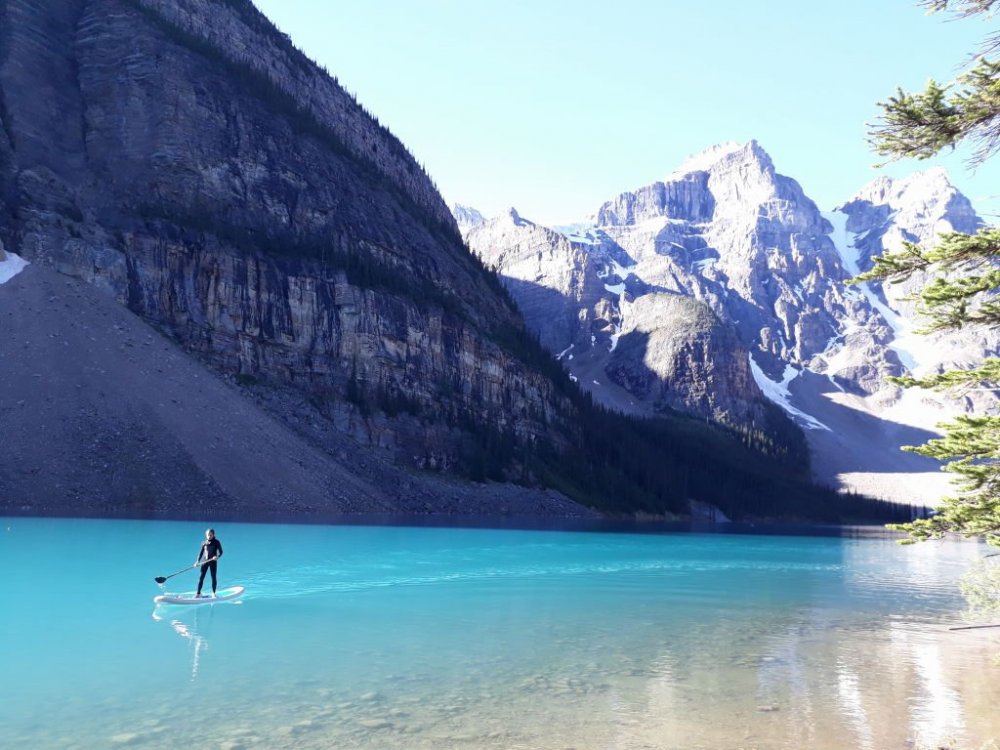 O Lago Moraine fica nas Montanhas Rochosas Canadenses, no Banff National Park. Nós fizemos uma viagem incrível de muitos dias, praticamente só fazendo trilhas na região. Junto do Moraine Lake há algumas trilhas que você pode fazer. Nós escolhemos 2 e as fizemos no mesmo dia. No total, caminhamos 17,5km, dando 23.500 passos. SHORELINE TRAIL : É bem curta, plana, às margens do Moraine Lake, com vistas incríveis dos Ten Peaks. São 3km ida e volta. Começamos por ela como aquecimento. LARCH VALLEY TRAIL/SENTINEL PASS TRAIL: Esse foi um dos melhores dias de trilhas das nossas vidas. As paisagens são maravilhosas. A primeira parte é inclinada e passa pelo meio do mato, onde vimos um cervo bem de perto. Depois, você chega no Larch Valley propiamente dito, com riachos, montanhas muita vida animal. E o final da trilha é deslumbrante. As montanhas são imponentes, há 3 lagos que servem de "espelho" para a paisagem e mesmo no verão você encontra neve. Divino! Use botas adequadas para fazer essa trilha. Bastões também ajudam muito. Distância: São 11,6km; Ganho de elevação: 725m. Temos um post super completo sobre esse dia, com as trilhas em detalhes, além de como e quando ir, onde ficar e muito mais em http://meusdestinosimperdiveis.com.br/lago-moraine-canada-moraine-lake-canada/.