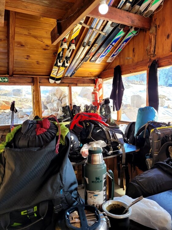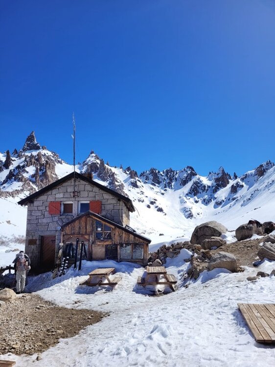 Refugio Frey - Bariloche (Breve relato)absfernandez postou um tópico em Argentina - Relatos de Viagem Salve mochileiros e viajantes, resolvi fazer esse breve relato de uma trilha que fiz em Outubro de 2023 para o Refugio Frey em Bariloche, pois recebi algumas mensagens perguntando se eu fiz o trekking, pois tinha comentado em um post da @JanaCometti que eu estava pretendendo fazer o role, não irei aprofundar sobre Bariloche devido ao excesso de informações (Inclusive, informações bem completas no post da Jana) A principio meu objetivo era ir com minha esposa para El Chalten e Puerto Natales para fazer os trekkings existentes nas respectivas cidades, no entanto meus sogros resolveram fazer a viagem conosco para Buenos Aires e então decidimos mudar para Bariloche por ser uma cidade mais estruturada com apelo turístico e ter mais atividades para eles participarem e não só trilhas. Confesso que Bariloche me surpreendeu pois eu tinha uma visão muito estigmatizada da cidade, mas vi que lá há mil e umas atividades para se fazer e para todos os gostos. Ficamos 8 dias em uma baita casa em frente ao Rio Negro pelo Airbnb, num preço que para 4 saiu bem barato dada a proporção da cidade, coisa de 4300 reais em media. Sendo assim poderíamos deixa-los perambulando pela cidade e irmos em 3 dias para o Trekking. O planejamento era de 3 dias, mas fizemos apenas em 2 e contarei em seguida o porquê; Em Bariloche há 4 refúgios no meio das montanhas da patagônia andina, são eles: Refugio Frey, Refugio Jakob, Refugio Laguna Negra e Refugio Lopes , há a possibilidade de fazer a travessia destes 4 refúgios (não recomendado para iniciantes) e possível apenas no final da primavera até o inicio do outono devido ao acumulo de neve e a travessia dura 4 dias, lembra que queríamos fazer em 3 dias ?! Pois é, nossa intenção era ir até o segundo Refugio, o Jakob, só que ano passado o inverno foi rigoroso e havia muita neve impedindo a travessia, talvez possível para trilheiros com equipamentos para gelo e de alta performance onde não é o caso meu e da minha companheira, sendo assim fomos prudentes e resolvemos ir até o Frey e voltar no outro dia, creio que a trilha ficaria boa depois de duas ou três semanas. O Refugio Frey fica as beiras da Laguna Toncek e cercado por montanhas em forma de agulhas parecido com catedrais e é muito procurado por esquiadores radicais e por escaladores (exceto boulder), pois os picos são perfeitos (ou não) para este tipo de atividade, a trilha fica aberta o ano todo e tem o tempo estimado de caminhada é de 4hrs a 7hrs (10 kms) dependendo da época do ano, fomos na segunda semana de outubro e já tinha começado o degelo que ajudou muito em alguns trechos mas prejudicou em outros que ainda havia neve mas sob derretimento, dificultando bem o desenvolvimento do trekking. Antes de fazer o trekking é necessário registrar sua caminhada no site do parque nacional: www.nahuelhuapi.gov.br e reservar com 3 dias de antecedência a sua pernoite no local, seja no refugio ou acampando nas dependências externas. A reserva é gratuita feita pelo site do refugio: www.refugiofreybariloche.com , para acampar é gratuito e para pernoitar no refugio é media de 30 mil pesos e necessário levar saco de dormir e lá eles alugam também, paguei 3 mil pesos o aluguel do saco e achei bem limpinho, lembrando que você dorme em um alojamento com diversas beliches tudo grudada uma na outra e todos dormindo junto em seus próprios sacos de dormir (para quem nunca dormiu assim parece ser estranho mas eu achei super de boa, dada as circunstancias do lugar). Lá eles vendem também uma janta bem modesta mas bem saborosa. A entrada para a trilha é na base do Cerro Catedral ao lado esquerdo do estacionamento, só perguntar para os funcionários do parque que eles irão indicar, do inicio do estacionamento até a entrada da trilha pode ser confuso mas com atenção e instinto da certo, na duvida use um wikiloc ou baixe um google maps apenas para se orientar, qualquer tipo de trilha se não prestar atenção é fácil se perder, mas após a entrada da trilha acaba sendo bem demarcado caminho. Inicie cedo para aproveitar lá em cima, se for fazer no verão da para ir e voltar no mesmo dia, pode ser cansativo mas da pra ir de boa e na primavera dependendo das condições climáticas acho que da também mas não sei se compensa, na duvida leve suprimentos para 2 dias. O que levamos: 2 bastonetes de galho de arvore Oculos escuro polarizado 1 mochila de ataque cada 1 garrafa de agua cada 1 Hidrosteril para pegar agua do degelo e deixar para consumo humano 1 lanterna 1 faca Umas 3 garrafas de vinho 2 latas de gin Lanches e petiscos Lenço umedecido e papel higienico Agasalho e segunda pele Botas de trekking Meias impermeáveis No inicio da trilha é bem plano, os passos vão progredindo ao redor do lago Gutierrez e a vegetação já ficando abundante devido a ao degelo da época, é possível ver bastante Carancho (o nosso Carcará) e alguns pássaros já iniciando os cantos, a cada passo que se dá a paisagem muda, pois é possível ver cascatas, bosques com pica pau em seu horário de trabalho e a medida do tempo a dificuldade começava a ficar progressiva já que nossas botas de trekking se afundava no gelo, nos 2 ultimos kms de trilha foi o mais complicado, a neve fofa e alta já degelando era como andar num sabão e pra piorar é uma grande subida, nisso paramos umas 5 vezes para descansar e beber agua, o desempenho não aumentava talvez tenha me faltado grampões nas botas para melhorar a performance, o que me ajudava era os bastonetes, extremamente necessário. Depois de 5 horas caminhando, avistamos o refugio e a paisagem era espetacular, ficamos a tarde toda contemplando aquela beleza, vendo esquiadores insanos demorando horas para subir as catedrais e esquia-las em segundos, a Lagoa Tonceck estava completamente congelada, o sentimento era de paz, tranquilidade e o silêncio que 