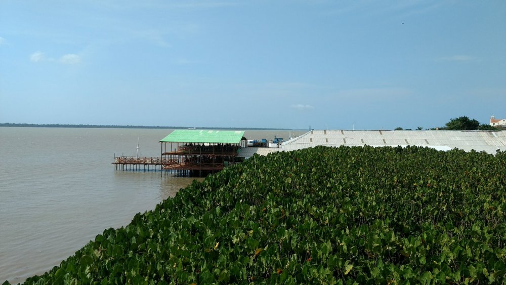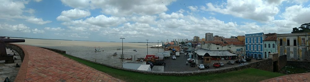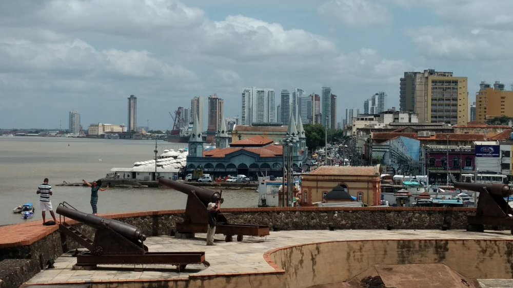 Mais uma capital brasileira conquistada! Macapá, Amapá. Depois de “completar” as capitais do Nordeste em 2013, levou tempo até avançar pelas capitais restantes do Norte. Este ano conhecemos Porto Velho e agora Macapá. Ainda nos faltam Rio Branco e Boa Vista. Macapá acabou sendo uma opção para o feriado (ao menos no Rio!) de 20 de novembro. Tínhamos várias opções para a data, mas estava difícil de encontrar bons preços. Aliás, 2017 foi um ano difícil para promoções. Ao menos nos patamares a que nos acostumamos. Quase comparamos para o Recife, para explorarmos o Vale do Catimbau – mas a proximidade com nossa viagem para a Serra da Capivara nos fez buscar outro estilo para o feriado. Então optamos pelos preços relativamente baixos, mas não tão promocionais, que nos levaram a Macapá. Com 3 dias nas mãos, avaliei que seria muito para Macapá. Turisticamente falando. De fato, é. Mas vc pode buscar opções nos arredores. Flona, Tumucumaque, Serra do Navio... Mas talvez acabe precisando de mais tempo ainda. Para a capital somente, considerei que um par de dias bastava. Então organizamos de passar um dia em Belém, que fica do lado, e que já conhecíamos. Depois de ter ido, posso dizer que um dia já basta em Macapá – para o nosso ritmo e interesse. O roteiro ideal, nesse sentido, seria o que o diogomarxx fez, que me parece ideal para conhecer o “combo” Belém e Macapá. Mais próximo da viagem, pesquisando o roteiro do que fazer, vi que teríamos um dia sobrando. Em Porto Velho isso tbm ocorreu, de modo que fizemos um esquema bem slow travel (novamente, para o nosso ritmo – cada um tem o seu). Mas em Macapá descobri que poderíamos passar o domingo na Ilha de Santana, fazendo passeio de barco e curtindo praia. Achamos boa ideia e fomos. Para uma capital, Macapá ainda é bem pacata. Construções ainda baixas, com um ou outro espigão sobressaltando aqui e ali. Do aeroporto para o Ibis, onde nos hospedamos, dá coisa de 2 ou 3km. 15 reais de taxi. Não me lembro de proximidade tão grande em outras capitais brasileiras. Chegamos tarde da noite, direto para o Ibis dormir. Saímos sábado de manhã para passear. Macapá está na linha do Equador e era 2º semestre, ou seja, o calor predomina. Melhor dizendo, muito calor. Mas já conforme esperado. Do Ibis fizemos uma caminhada pelos arredores, para conhecer alguns pontos mapeados. A igreja de São José, pequena e simples. Acho que é a mais importante – certamente não é a mais imponente – do estado. Uma pracinha simpática logo em frente e o Teatro das Bacabeiras ao lado. Não achei programação do teatro na Inet. No local, não parecia haver programação para aquele fim de semana. Então foi só contemplação externa mesmo. Passamos pelo Museu Histórico de Amapá Joaquim Caetano da Silva, que estava fechado. Li alguns raros relatos sobre ele, e alguns diziam que estava sempre fechado. Bingo. Todo reformado, mas fechado. Talvez só abra durante a semana. Brasil tem essas coisas: atrações que só abrem durante a semana. Dali para a Praça do Coco é um pulo. É onde a noite ferve, com visual para o Rio Amazonas, que passa pela cidade. A chamada Praça do Coco compreende (acho) uma vasta área perto do Trapiche Eliezer Levy. Que era, aliás, uma das atrações listadas da cidade. Só que estava em reforma, fechado. Pena, uma atração a menos. O trapiche segue metros adentro do Rio Amazonas e chega perto de uma estátua de São José, de costas para a cidade (como que a protegendo), já dentro do rio. É chamada Pedra do Guindaste. Com o trapiche fechado, dava para seguir andando até a estátua. É que, naquele momento de manhã, a maré estava baixa, era possível caminhar metros adentro pela areia (ou lama). Trapiche pela manhã Dali seguimos pela orla em direção ao Forte São José, que fica logo ao lado. Primeiro contornamos o Forte. Muito bonito por fora. Muita gente curtindo os jardins e o barato do entorno do Forte. Isso naquele fim de manhã, com o sol a pino. Qdo o calor se vai, aparece muito mais gente. Passamos pelo Parque do Forte, que fica ao lado do Forte. Um dia o parque foi reformado e acho que ficou muito bacana. Hoje é mais um retrato de Brasil, estando abandonado e se deteriorando. No Brasil gasta-se em reforma, não em manutenção. Certamente dá mais votos. Fortaleza de São José Entramos no Forte. É muito bonito. Belíssimos visuais, em relativo bom estado de conservação. Algumas salas são abertas ao público. Tal qual outros fortes pelo Brasil, poderia ter mais informações, mais contextualização. Mas o de São José já vale pela beleza que é. Fiquei um bom tempo passeando pelo forte e curtindo o visual. Em frente ao Forte tem o Mercado Central. Fomos lá. Um fracasso. Fechado, largado totalmente. Algumas lojas e lanchonetes nos arredores. Na frente do mercado havia um cara vendendo chopp a 1 real. Como assim, chope a 1 real?? Chega a dar medo. Mas, na verdade, é que chopp é como chamam o sacolé por lá. Tá explicado o 1 real. É sacolé! Já era hora do almoço e não tinha rolado café da manhã, então aproveitamos para seguir andando pela orla até o Restaurante Estaleiro, famoso na cidade. Sob calor forte a galera não curtiu muito de ficar andando pela cidade, mas fomos. No caminho tinha um monte de carros da polícia na frente do Hotel do Forte. Metros adiante um motociclista atropelado, mas felizmente não parecia ferido gravemente. A coisa não tava boa na área. Enfim, chegamos ao Estaleiro. Ar condicionado! Rolava um buffet de comida mineira. Mas estávamos lá para saborear os pratos locais. Enfim, lugar caro, mas gostamos muito dos peixes que pedimos. Chamamos um taxi para nos levar ao Marco Zero, a outra grande atração da cidade (além do Forte). Onde cruza a Linha do Equador. Os dois hemisférios a nossos pés. Curtimos bastante, aproveitando estar vazio naquela hora pós-almoço de sol forte. Ao lado tem o Sambódromo da cidade, mas a