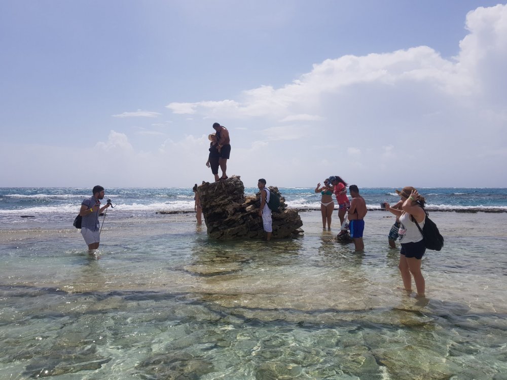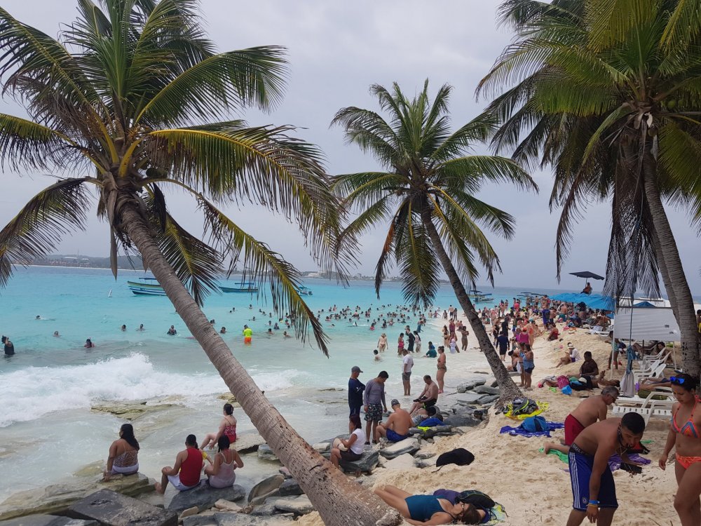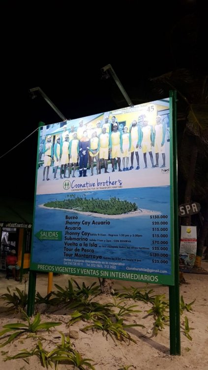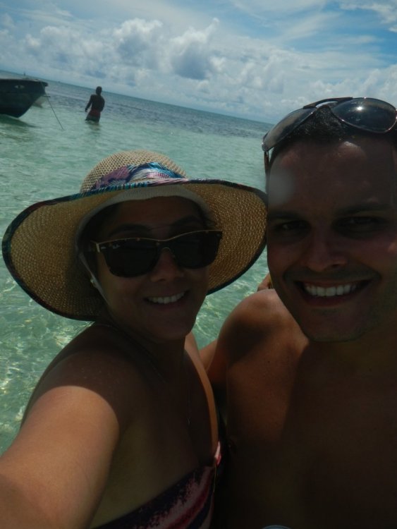 Como esse destino se popularizou entre os brasileiros e ficou mais acessível ($) acho que algumas informações com base na minha experiência de viagem podem auxiliar, principalmente, quem não está acostumado com viagens internacionais. Vou então tentar detalhar um pouco os procedimentos de imigração também. Antes de ir fiz umas pesquisas e tive que acessar vários blogs e sites para definir o roteiro, saber quanto e qual moeda levar, etc. Algumas informações estavam bem desatualizadas, principalmente, quanto aos valores dos aluguéis de veículos. Ah, uma coisa importante é entrar em contato com seu banco para solicitar autorização do uso do cartão internacional no período da viagem, além de consultar como estão as taxas para saque e compras no exterior para evitar surpresas. Com passagens e hospedagem não me preocupei porque comprei com a Agência Aventureiros de Nova Iguaçu. O pacote foi para o período de 03 a 08/06/2017 com hospedagem na Hosteria Mar y Sol. Ficou em US$ 902,55 = R$ 2.960,35 para duas pessoas (passagem, traslado e hospedagem com café da manhã). O hotel é afastado do Centro, uns 35 minutos de carro, isso foi ruim (se for possível, sugiro ficar no Centro), mas era bonito, a cinco minutos da praia Los Chaquitos e tinha traslado gratuito com ida para o Centro de manhã e retorno no final da tarde. A comida também era bem gostosa. O voo do Rio de Janeiro a San Andrés durou cerca de 8h20, com conexão em Bogotá (vale lembrar que não precisou de passaporte, mas se a conexão fosse no Panamá precisaria). Bastou levar RG com menos de 10 anos de emissão e certificado internacional de vacina contra febre amarela (foi uma exigência quando viajei, precisava estar vacinado há pelo menos 15 dias, então é bom sempre verificar com antecedência). No avião você recebe um formulário para declarar alguns itens da bagagem e a quantidade de dinheiro que está levando (foto abaixo). Posteriormente você entrega esse formulário preenchido quando desembarca e também preenche uma “tarjeta de migración”, com nome, sobrenome, identidade e data de nascimento. Essa tarjeta é solicitada novamente no retorno, então tem que guardar com cuidado. Já no portão de embarque vendem a “tarjeta de turismo” exigida no desembarque em San Andres. Custou 105.000 pesos por pessoa, pode ser pago com cartão, em dólar ou em peso colombiano. Na saída da ilha também solicitam essa tarjeta, então também guarde com cuidado. Bom saber que em comparação com o horário de Brasília o fuso horário tem diferença de 2h. Em San Andres é mais cedo. Com relação à quanto e que moeda levar, sugiro levar dólares do Brasil e trocar por pesos colombianos no aeroporto de Bogotá – tem várias casas de câmbio no aeroporto, então vale uma pesquisa antes para comparar os preços, eram bem diferentes de uma casa para outra. Comprei na que tem logo quando você passa para área de embarque, Alcansa S.A., saiu a U$1 = 2.700 pesos. Outra dica é levar ou comprar snorkels (cerca de 20.000 pesos) e os sapatinhos flexíveis que se usa muito lá para entrar no mar (de 12.000 a 15.000 pesos). Nas lojinhas do Centro é fácil encontrar. É bom comprar uns lanches no mercado para os passeios, tem praias que não possuem muita infraestrutura. Também sugiro levar uma bolsa impermeável ou com material plástico, para usar nos passeios de lancha e fazer as travessias pelo mar, isso vai proteger melhor seus pertences. Quanta às reservas de passeio, na recepção do hotel que fiquei era possível reservar, exceto o voo de parasail. Os preços não variam muito na ilha, mas sempre dá para negociar e conseguir um desconto. Caso seu hotel não reserve, sugiro a lojinha Sun Island, na Av. Colombia Frente Hotel Tres Casitas – contatos: (57) 312 232 5050 / 318 759 3375 / 317 751 2212 (whatsapp) / e-mail: sunislandtourssanandres@gmail.com - lá que reservamos o voo de parasail e os funcionários são muito simpáticos. Agora, vamos ao roteiro. DIA 01 (SÁBADO) Chegada na ilha por volta de 17h20. Do aeroporto ao hotel que fiquei o táxi custou 35.000 pesos, mas tem hotéis no Centro que dá para ir andando do aeroporto. Chegamos no Hotel por volta de 18h, guardamos as coisas e pedimos um táxi para ir ao Centro. Custou 30.000 pesos a ida e 40.000 a volta. Essa era a média do preço cobrado pelo taxistas no trajeto hotel-centro-hotel. Por isso, achamos melhor alugar um transporte. Na ilha é comum o uso de motos, carrinhos de golfe e mules (um carrinho mais potente que o de golfe), os preços eram em média, 60.000, 120.000 e 160.000, respectivamente, para o aluguel das 8 às 18h. Lá as leis de trânsito ficam um pouco de lado, só vi policiais usando capacete e quando você aluga eles não te dão nenhum. Também é feita vista grossa se sua habilitação é pra moto ou carro. Então, dificilmente, alguém terá problema para alugar se quiser. Não vi acidentes, nem blitz, mas há muitos policiais circulando na ilha. Optamos por alugar uma moto no dia seguinte. Visitamos algumas lojinhas no Centro e compramos os sapatos flexíveis, snorkels, lanches. Achei as coisas baratas para um lugar turístico. A ideia inicial era irmos no Coco Loco, única boate da ilha. Mas ficamos muito cansados e só demos uma volta no Centro, que estava bem movimentado, com várias opções de bares e restaurantes. Paramos no Bocca de Oro – Av. New Ball, em frente a praça - que estava tendo reggae ao vivo, tem todas sextas e sábados. Comemos crema de lagosta, que é tipo um caldinho, e um prato chamado Trilogia Del Sabor, que vem com carnes vermelha, de frango e de porco na chapa acompanhadas de arroz de coco e legumes refogados. Tava bom, amei o arroz de coco, o mais gostoso que comi foi nesse restaurante. Bebemos umas Coronas e água. A conta deu cerca de 110.000 pesos. Para quem prefere não jantar, tem várias opções de lanches na ilha, sanduíches e cevicherias, que também sai mais em conta. As p