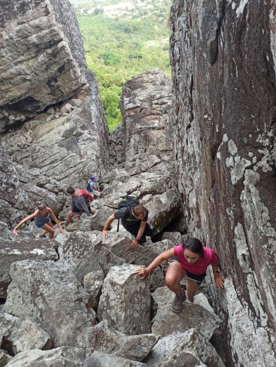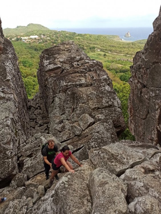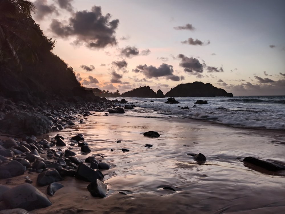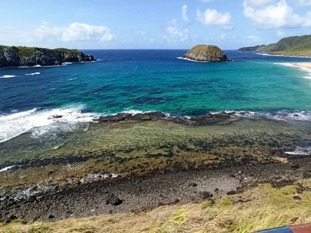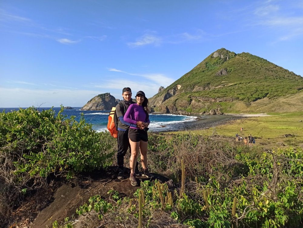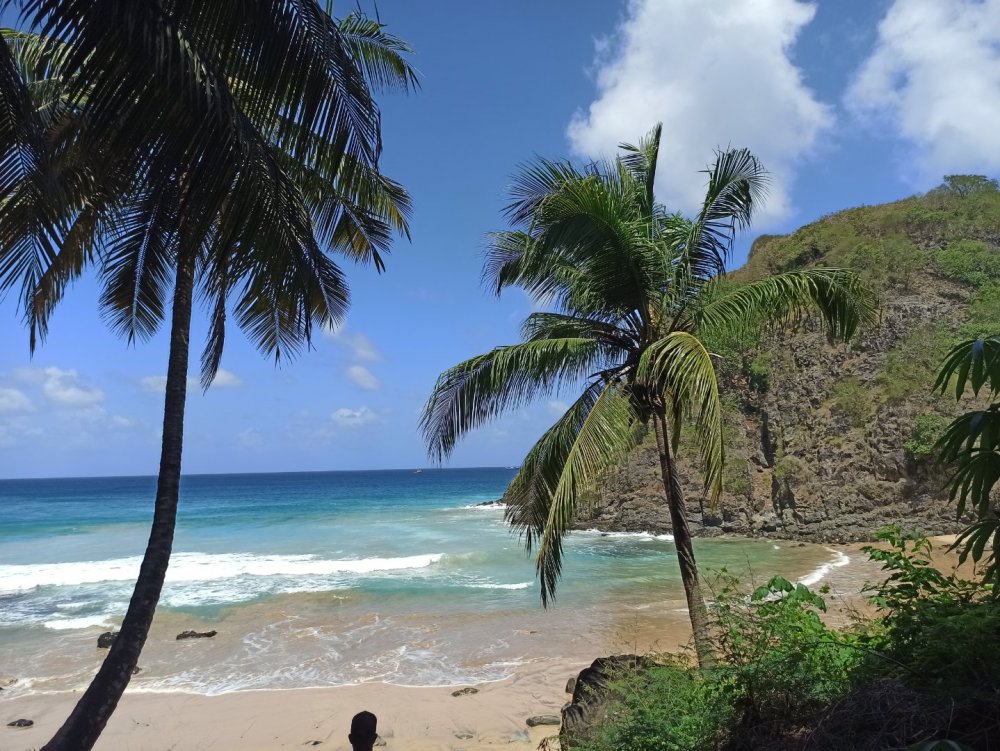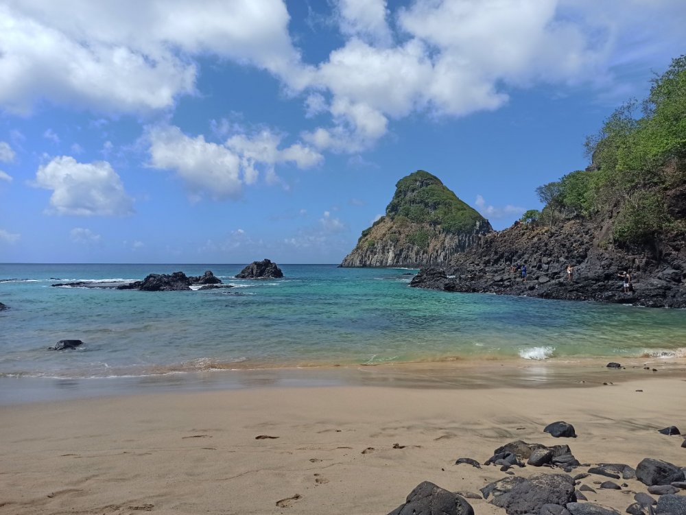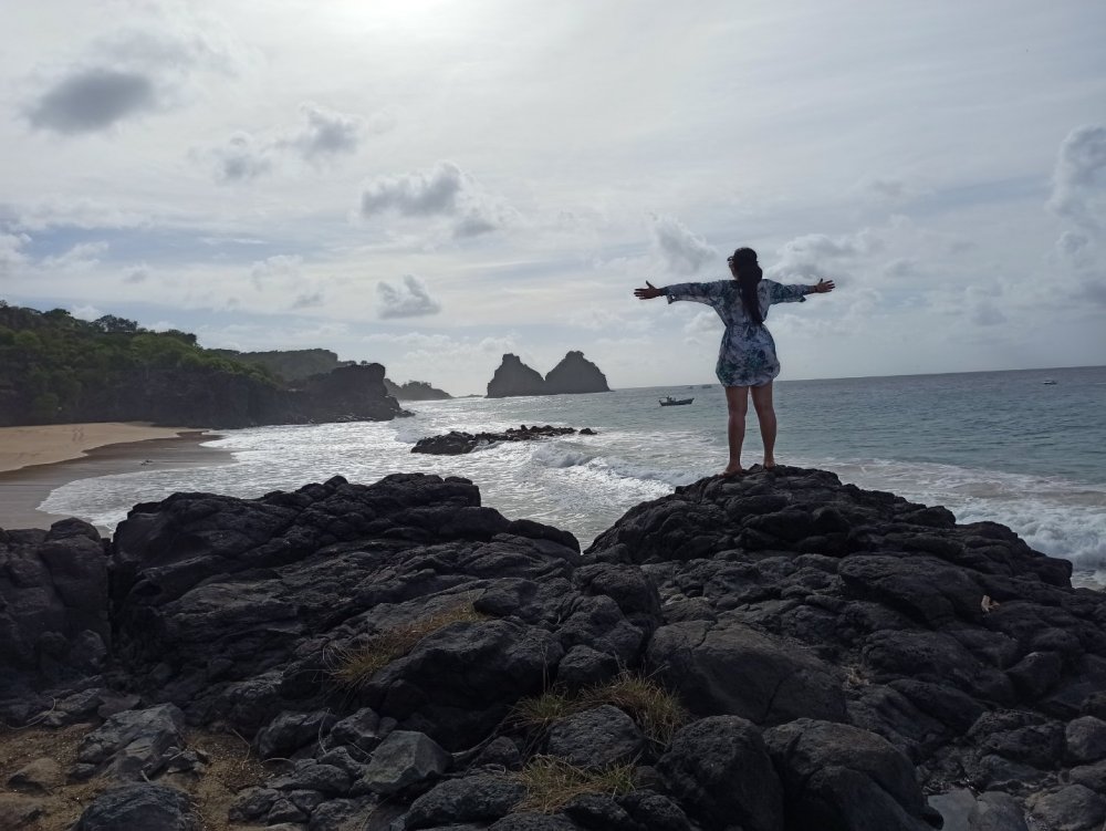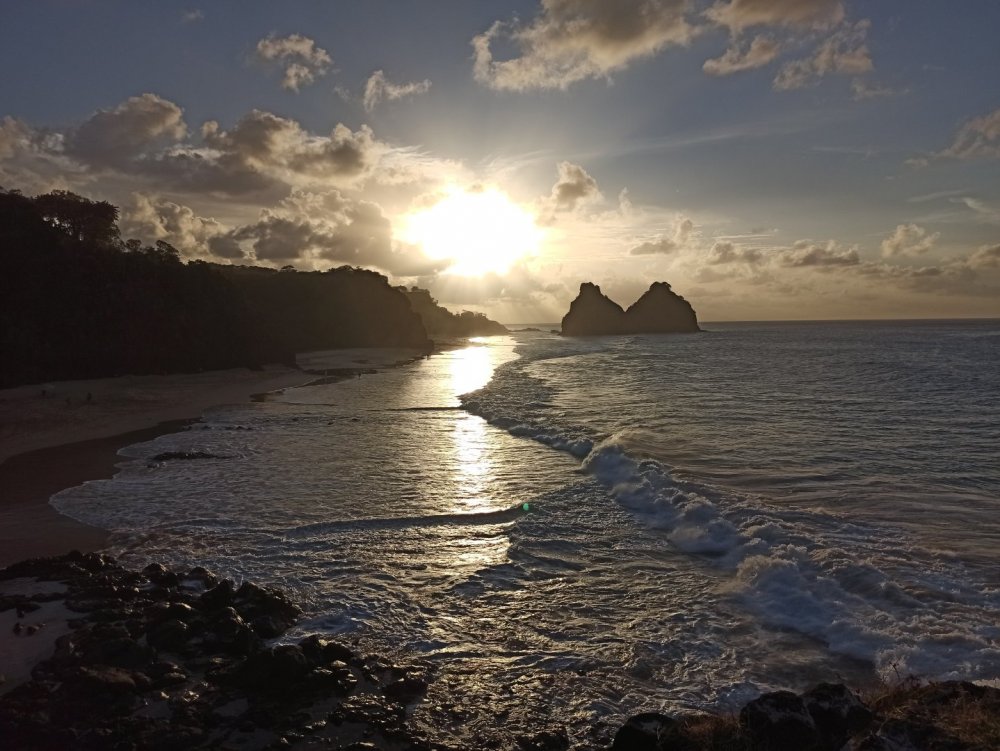 Noronha - que lugar incrível! Que beleza deslumbrante! Um local único no mundo! Uma ilha de pedras vulcânicas com águas cristalinas e de uma cor turquesa incrível! A oportunidade de admirar uma natureza completamente preservada, repleta de vida marinha em total equilíbrio com os seres humanos. Um destino desejo, de luxo, mas ao mesmo tempo rústico e simples, 0% frescura, em que a natureza é a estrela principal! Tivemos a oportunidade de ficar por oito dias nesse paraíso, entre 19 e 26 de dezembro de 2020. Sim, eu sei, estamos em pandemia. Mas infelizmente, perderíamos nossa passagem se não fossemos agora, e a ilha possui um rigoroso controle, em que você precisa fazer teste PCR para entrar e sair. Claro, em Noronha havia algumas limitações, mas valeu muitooo a pena! Antes de ir, é importante dedicar um tempo para dar uma pesquisada sobre a ilha, as praias e os principais passeios, para conseguir aproveitar ao máximo. Há muitas opções, e possibilidade de ter experiências muito diferentes em Noronha. Nós curtimos muito experiências de contato com natureza, e foi isso que valorizamos em nosso roteiro. Os melhores meses são setembro e outubro, fora da época de chuva e com mar mais calmo, o que dá melhores condições de banho e também visibilidade para os mergulhos, além de preços melhores. Infelizmente, tínhamos agendado para setembro, mas o vôo foi sendo cancelado e remarcado até dezembro, e acabamos pegando o mar mais agitado. Ao reservar seu lugar no vôo, pegue uma poltrona do lado esquerdo, para ter uma visão privilegiada do Morro Dois Irmãos, cartão postal da ilha, já na aterrisagem. Aproveite também e pague as taxas antes de embarcar, para eliminar tempo de fila no aeroporto. A primeira é a taxa de preservação ambiental, cujo valor é proporcional ao número de dias em que ficará na ilha, e pode ser paga pelo site: http://www.noronha.pe.gov.br/turPreservacao.php. A segunda, é o ingresso de entrada no Parque Nacional Marinho de Fernando de Noronha, que dá acesso às praias mais bonitas da ilha, e pode ser paga pelo site: http://www.noronha.pe.gov.br/turPreservacao.php. Primeiro dia - 19/12 Pousamos na ilha por volta das 17 horas, em um vôo de uma hora partindo de Recife. Pois é, a ilha fica a cerca de 500 km da costa, o que faz com que tenha até mesmo um fuso horário diferente, de uma hora a mais do que o horário de Brasília. Por isso, ao chegar, já ajuste o horário de seu relógio e celular! Seguimos o conselho de vários blogs, e não aceitamos o transfer que é oferecido pelas empresas de turismo para a pousada. Pelos relatos, este transfer é bastante demorado, pois te levam primeiramente para uma apresentação, na tentativa de te vender passeios, e depois passam por várias pousadas para deixar todos. Escapamos e pegamos um táxi direto para a pousada, a tempo de deixar a mala e correr para curtir o primeiro pôr do sol, na praia do Cachorro. Se prepare para andar muito em Noronha! Só para descer para esta praia e voltar, encaramos uma bela descida e subida em uma ladeira íngreme. Deu canseira, mas valeu a pena, claro! Na volta, por indicação do taxista, fomos jantar no restaurante Delícias da Ná. Pedimos uma carne de sol, com queijo coalho grelhado, arroz, macaxeira frita e farofa de banana da terra. O restaurante é simples, a comida saborosa, mas o preço salgadinho. A conta saiu quase R$ 200,00, para dois. Bem-vindo a Noronha! Segundo dia (20/12) Vi que muitas pessoas contratam o passeio Ilha Tour, em que um guia te leva de buggy para conhecer todas as praias da ilha. Particularmente, acho que só vale a pena se você tiver pouco tempo, ou se fizer questão de um guia, pois é fácil conhecer todas as praias por conta. Como tínhamos uma semana, essa foi a nossa opção! Usamos muito o ônibus por lá! São dois ônibus cruzando a ilha de ponta a ponta, trafegando pela BR e entrando em ruas em alguns pontos. É possível ter acesso ao itinerário pelo aplicativo Moovit, que inclusive aponta a sua localização em tempo real, bem como todos os pontos de parada. Mas, depois do primeiro dia, você já estará bem habituado, e será fácil se localizar. Um ônibus vem em sentido Sueste - Porto, e o outro, sentido Porto - Sueste. Como o percurso é curto, você provavelmente não aguardará mais do que meia hora do ponto de ônibus. Não pagamos nada pelo ônibus, mas creio que a gratuidade seja temporária, por conta da pandemia. Para algumas praias, como a do Porto e Sueste, a parada do ônibus é a um passo da praia. Já para outras, como Praia do Leão e Cacimba do Padre, é preciso alguma caminhada por estrada de terra. Pelo Google Maps é possível se orientar por estas estradinhas. Quando estiver cansado, sempre há a opção de pedir um táxi. Por muitas vezes fomos às praias de ônibus e a tarde, cansados, voltamos de táxi. Usamos a Nortax que é uma espécie de associação de taxistas, e gostamos muito do serviço. É rápido, e os preços são tabelados. Dependendo da distância, pagava-se R$ 26,00, R$ 34,00 ou R$ 40,00. Noronha também tem uma cultura forte de carona, e volta e meia nessas estradas alguém oferecia uma carona de buggy! Particularmente, a menos que esteja em quatro ou cinco pessoas, também não acho que vale a pena alugar buggy. A diária estava R$ 350,00, mais o combustível (R$ 7,00 o litro!), ou seja, é preciso pegar muitooo táxi para chegar neste valor! Neste dia, acordamos cedo e fomos conhecer as praias do mar de dentro. Começamos pela praia do cachorro, de onde uma pequena trilha leva a praia do meio. O acesso à praia do cachorro é por uma escadaria de pedra abaixo da Vila dos Remédios. Tem um ponto de ônibus na praça. Da praia do meio, você passa entre o famoso Bar do Meio para chegar à praia da Conceição, em cuja ponta esquerda se localiza o morro do Pico. Todas as três praias belíssimas e com o turquesômetro a mil! A cor da água é belíssima! As praias são todas bas