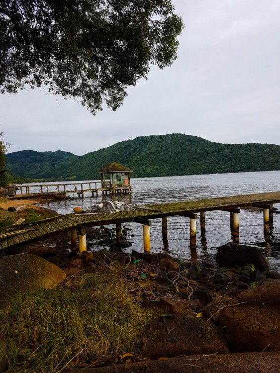Alone in Floripa Fala galera, fiz uma trip solo barateza para Floripa esse mês e gostaria de compartilhar com vocês essa experiência, foi tudo meio que de última hora e improviso, mas são dessas viagens que vêm as melhores experiências. Vou aqui separar pelos dias em que fiquei por lá, qualquer nova informação sobre passeios ou valores vocês podem solicitar aqui ou no meu Instagram, que terá o link ao final e terei prazer em responder. Minha ideia era fazer mais trekking do que visitar praias visto que a previsão do tempo não estava muito ao meu favor, apesar da chuva e dos incríveis 5 minutos de sol nos 4 dias em que estive lá, aproveitei cada segundo da viagem, o lado bom é que voltei com meu protetor solar praticamente cheio. 31/10- Dia 1 (Muita chuva e amizades inesperadas) Cheguei bem cedo na ilha e fui para o Mercado Municipal comer alguma coisa, pois estava no ônibus há bastante tempo e a essa hora já estava morrendo de fome. Eu nunca tinha ido em um Mercado Municipal, mas não me impressionei não, porém o lugar é bem organizado, vale a pena visitar se você estiver nas redondezas, pois a rodoviária, o mercado e o TICEN (terminal central dos ônibus) ficam praticamente juntos. Comi uma coxinha de massa de mandioca muito boa, cara pra cacete e sumi, já serviu para desgrudar as paredes do meu estômago e sobreviver até o miojão do almoço. Peguei um busão e segui rumo a Lagoa da Conceição onde ficaria hospedado. Eu costumo sempre andar de ônibus onde vou viajar, Uber é muito bom mas só uso em caso de extrema necessidade, sem contar a economia, e o sistema de ônibus de Floripa é muito bom e fácil de se localizar. Fiquei hospedado no Geckos Hostel, recomendo muito pois o ambiente é agradável e o povo que trabalha lá é extremamente prestativo, eu o escolhi principalmente pela ótima localização, fica a uns 5 minutos de caminhada do centro da lagoa, deu R$41 por dia sem café da manhã, se quiser o café tem um custo adicional de R$12 se não me engano, eu achei melhor não pegar e fazer o meu próprio café nesse caso. Como cheguei um pouco antes do horário de check-in, resolvi deixar minhas coisas por ali e procurar uma trilha pequena e por perto para fazer já que a chuvinha deu uma trégua. A moça da recepção me indicou a trilha da “Costa da Lagoa”, disse que era pertinho e tranquila. Pois bem, fiz meu banquete (miojão, banana e umas bolachas), peguei minha mochila, minha bota e na saída encontrei outra hospede do hostel querendo sair, convidei ela e fomos juntos. Duas quadras depois do hostel encontrei uma cachorrinha toda molhada e andando sem rumo, como eu adoro cachorro fui lá brincar um pouco com ela e ela resolveu me seguir, pensei que apenas por uns quarteirões mas para a minha surpresa ela não nos abandonou até o final da trilha, como não sabia seu nome comecei a chamá-la de Luna. A costa da lagoa é um bairro que realmente fica na costa da lagoa (ah sério?) então você vai andar com a lagoa de um lado e na maioria do tempo um penhasco do outro, e o único jeito de se chegar lá é pelos barcos que passam de 1 em 1 hora ou então por esta trilha, a maioria do pessoal vai até o fim da trilha andando e volta de barco, era o que eu planejava fazer mas acabou não dando muito certo, mas logo chegamos lá. No caminho tem várias casas e paisagens bem diferentes, como uma floresta de bambu onde fazia um barulho que até dava medo devido ao vento forte, mas para mim que adoro a natureza foi bom demais ficar um tempo ali aproveitando essa beleza, as paisagens são lindas e tem uma cachoeira bem bonita quase no fim da trilha, se estivesse um pouco mais calor eu me jogaria nela mas com o frio que estava achei melhor seguir em frente. O caminho parece ser decorado pelos moradores que ali residem, as vezes a trilha meio que parece acabar e temos que passar pela casa de alguém, mas isso é tranquilo pois os moradores, pelo menos todos os que eu encontrei, ajudam os turistas perdidos por ali. Então eu fui até o final, eu acho que era o Ponto 23, os barcos paravam nestes pontos para pegar o povo. Chegando no final, depois de quase 3 horas e 11km de caminhada, fui esperar o barco e lá fui informado que cachorros não podem embarcar. Isso já era quase 5 da tarde e nesse dia anoitecia perto das 6 h. Eu não poderia deixar minha companheirinha lá. Ela podia se virar e voltar embora, como também poderia se perder, e no caminho tinham muitos cachorros que poderiam assustar ela. Me senti responsável pelo que cativei, como diz o "Pequeno Príncipe", então sentei no chão, descansei um pouco, comi o que eu ainda tinha de comida, consegui um pouco de ração e água para a Luninha e voltamos, um pouco mais rápidos desta vez. Eu tenho um pouco de medo de ficar na trilha quando anoitece, e para ajudar, meu celular ficou sem bateria e das 2 lanternas que eu havia levado para a viagem, nenhuma delas eu tinha trazido para a trilha. Um pouco de falta de planejamento e de experiência que poderiam ter custado bem caro, pois virar um pé ou se perder na trilha (não neste caso pois era bem sinalizado) por estar sem luz podem acabar se tornando problemas bem sérios em situações como esta. Mas apertei o passo e voltamos bem rápido, com sorte acabamos chegando ao começo da trilha com o sol já se pondo (a última foto mostra a vista de quando saí da trilha), tive muita sorte, mas isso serviu como um aprendizado para as próximas. Por isso uma dica: por menor que seja a trilha tente se planejar antes com o horário, no meio do mato acaba anoitecendo mais cedo por conta das árvores e se você se desesperar ao ver que está longe do fim e com a luz diminuindo, pode acabar se machucando pela pressa ou pela falta de visibilidade e o que era para ser uma aventura acaba se transformando em um pesadelo. Pelo menos eu não estava sozinho dessa vez, diferente do próximo dia que foi outro sufoco, mas depois eu chego lá. Chegamos no hostel, ma