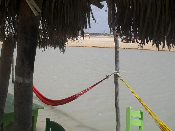 Dia da ida até Jericoacoara. Como combinado, às 13hs, o Guilherme estava na porta do quarto. Contratamos o serviço por telefone, e havia um certo medo do cara não aparecer. Mas tudo correu bem. O plano era cruzar os aprox 550 km entre Caburé e Jeri no mesmo dia. Outra opção é fazê-lo com paradas em Parnaíba e etc, mas tudo fica muito mais caro, e sinceramente, queríamos chegar em Jeri sem mais pausas. Guilherme, um brasileiro nascido em Portugal, se divertiu quase tanto quanto a gente, dirigindo a Land Rover nas praias, lagoas, dunas, estradas, rios, estradas sem estrada e etc., que cruzamos. Existem lugares em que simplesmente tem que se fazer a estrada. Boa gente, bom motorista e excelente serviço. Os transfers de Caburé pra Jeri podem custar até 1100 reais e o preço médio da viagem direta como a nossa é 550 pelo carro. O segredo é pechinchar muito pra tentar salvar algum dinheiro. Senão, a opção é ir de ônibus de linha, o que vai tomar dois dias, mas custará cerca de 90 reais /pessoa. (Transfer Guilherme, (98) 8819-1112) Chegamos em Jeri à noite, bastante cansados. E fomos direto pra pousada. Outro acerto. Uma área imensa, cheia de árvores e poucos chalés espalhados no terreno. Os quartos eram um tanto quanto pequenos, o que é facilmente compensado pela simpatia da Renata (gerente do lugar). Pousada do Caju, 100 reais/casal. Pra jantar, nos encontramos com Guilherme no Bistrogonoff. O lugar é uma surpresa. Tem um menu com pratos que vão de um PF a pratos bastante mais elaborados (prove o PF. Por 12 reais, será o melhor custo benefício de Jeri). Muito boa comida. No outro dia como planejado tínhamos que mudar pra recém inaugurada Pousada Araxá. Infelizmente, mão de obra em Jeri não é das mais comprometidas, e a obra acabou atrasando. Alberto, o dono italiano, devolveu o dinheiro e pediu imensas desculpas. Ele precisaria de mais um dia, e nós não estávamos dispostos a barulhos no nossa estada em Jeri. Apesar disso, vi os quartos – Fantástico. Com certeza, das melhores opções na faixa de preço. Acabamos por nos hospedar na Casa na Praia. Praticamente o mesmo valor, com quartos menores (mas ainda muito bons), e na frente da praia. Outro acerto. O atendimento simpático e alegre da equipe é o destaque, junto com a vista da duna do por-do-sol, a boa piscina e o café da manhã. Jeri é toda bonitinha com seu pôr-do-sol lindo e a pedra furada como ponto obrigatório, assim como a volta à noite por bons restaurantes e a parada na padaria do Inazio (outro italiano) que faz uns doces que são de jogar qualquer dieta no lixo. Além disso, é um dos melhores lugares do mundo pra praticar Wind e Kitesurf. Mas ainda assim me desapontou. Esperava uma das praias mais lindas do mundo, e achei uma outra praia, barulhenta, com motos passando na areia, suja já que os cavalos dos passeios transitam na praia sem cerimônia e não são raros os vazamentos de fossa e caixas de gordura correndo no meio da praia. Tomara que dêem logo jeito nisso. De Jeri pra Fortaleza, pode-se fazer de transfer, ônibus de linha ou minivan. Pelos horários disponíveis, decidimos fazer de transfer, rachando com mais um casal. Custo de R$ 100/pessoa. O onibus (que parece ter A/C) custa 29, ou seja, muito mais barato. Chegamos em Fortaleza depois de 4 horas de viagem, passando por alagados, pontes a cair, asfalto bom e ruim. And trip was sadly over.
