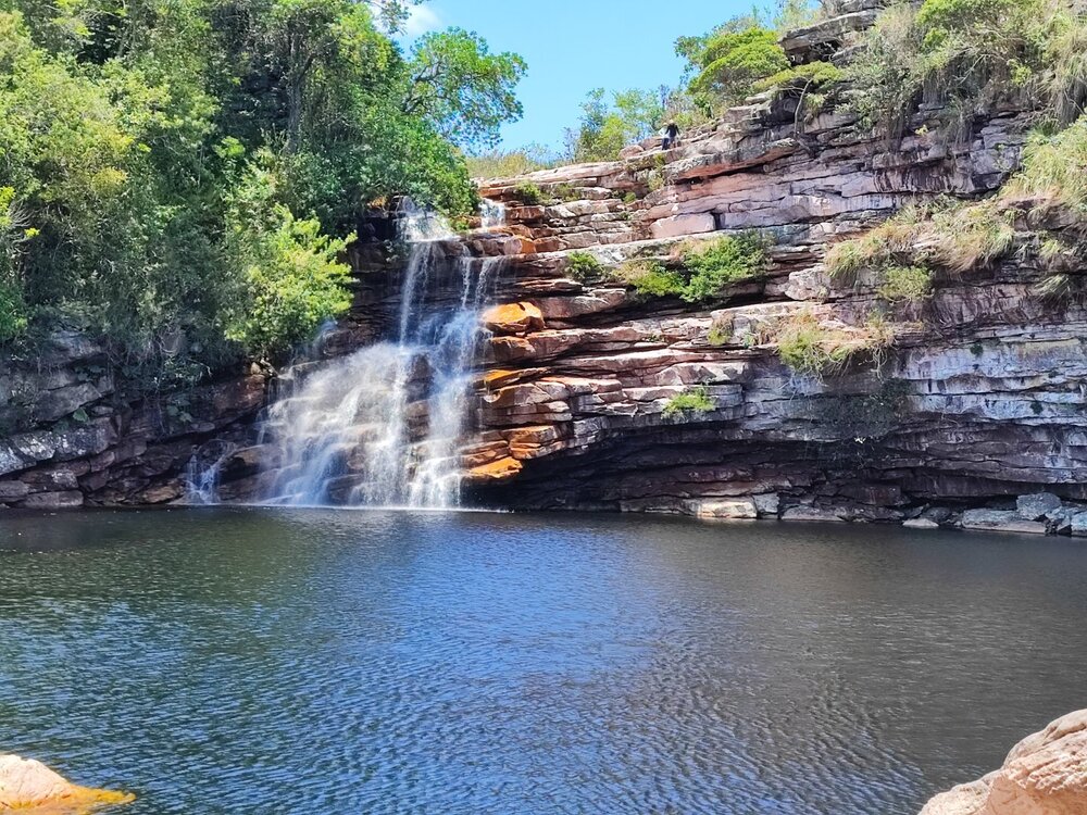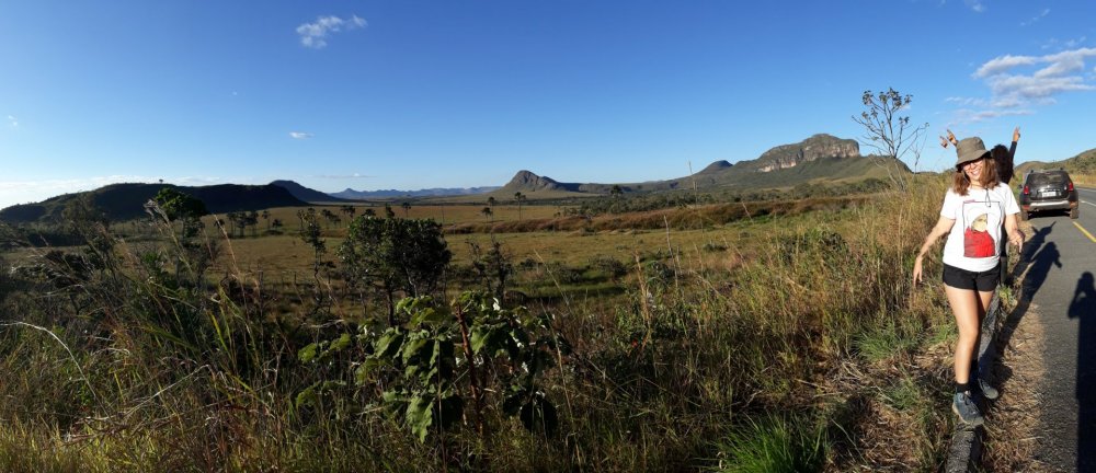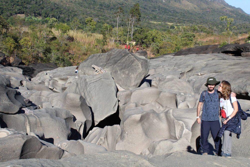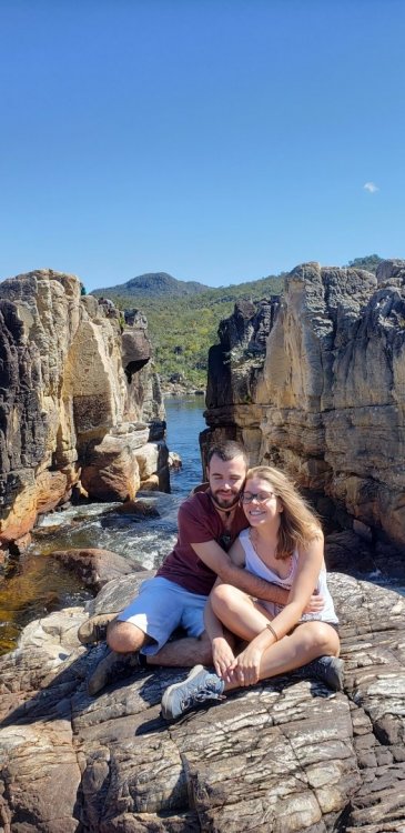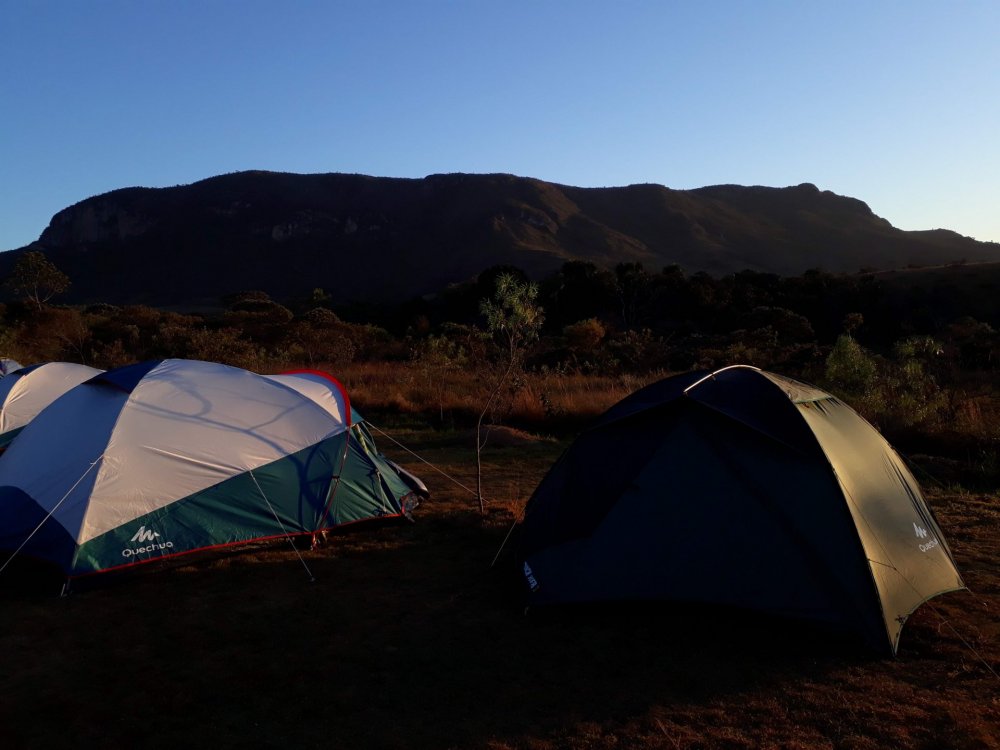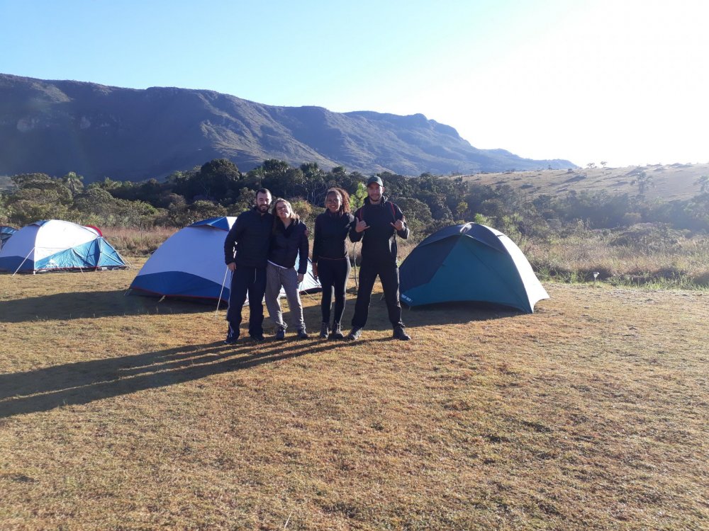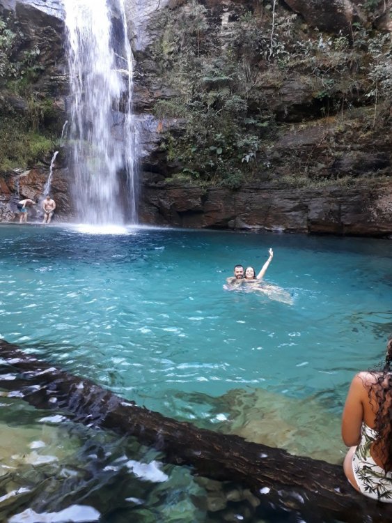 Um relato de Guilherme e Thais, com nossos amigos de viagens e do interiorr de SP, Daniel e Dayane. Realizamos uma viagem de 03 dias completos para Chapada dos Veadeiros entre 19/06 e 23/06, durante feriado prolongado. Origem: São Paulo. Avião com destino Brasília e aluguel de veículo (Duster) no próprio aeroporto. Optamos pela Duster pra evitar problemas com buracos, maior espaço interno e em eventuais travessias de rios, apesar de que em época seca (junho) o nível é baixo. Hospedagem e Clima: Camping Pachamama. Durante a noite faz frio (+/- 13ºC), utilizamos sacos de dormir (10ºC) + Isolante Térmico, foi o suficiente. Objetivo do Relato: Apresentar um conteúdo que facilite uma viagem ao local, com as nossas impressões, planejamento, custos e dicas. Aplicativo para Trilhas e Locomoção: aplicativo Avenza Maps. Mesmo na ausência de sinal ou internet, com mapas georreferenciados, é possível se guiar em trilhas e rodovias, com a sua posição aparecendo no mapa. Os mapas georreferenciados estão disponíveis para download ao final do relato. Nem todos os mapas foram utilizados na viagem, creio que o mais útil seja referente à trilha para Cachoeira do Segredo, nas proximidades da vila de São Jorge. Contextualização: O Parque Nacional da Chapada dos Veadeiros contém parte dos atrativos da região, e é localizado cerca de 3 horas distantes de Brasília (244 km). A entrada para visitantes é localizada na vila de São Jorge, pertencente ao município de Alto Paraíso de Goiás. Outra cidade integrada à região é Cavalcante, onde é situado o quilombo Kalunga, que contempla boa parte de outras cachoeiras de interesse. Dessa forma, a vila de São Jorge, Alto Paraíso e Cavalcante constituem-se nos principais destinos turísticos da região, e opções de hospedagens. Uma vez que o nosso grupo (de dois casais) prefere a hospedagem em camping, distante de cidades, optamos por nos hospedarmos no Camping Pachamama, localizado entre a vila de São Jorge e Alto Paraíso. Roteiro: O roteiro foi baseado na distância entre os locais, sendo que os agrupamos conforme a distância entre eles e o Camping. Consideramos o período de 03 dias para realização dos mesmos. Sendo assim, nos baseamos em mapas com a localização dos atrativos (disponíveis na internet e outros, que criamos para um melhor planejamento) e informações sobre acesso e interesse. O resumo do roteiro está abaixo: Quinta-Feira: Cachoeira Candaru e Cachoeira Santa Bárbara (Quilombo Kalunga, município de Cavalcante) Sexta-Feira: Parque Nacional da Chapada dos Veadeiros, Trilha dos Cânions e Cachoeira Cariocas (vila de São Jorge) Sábado: Vale da Lua, Fazenda Volta da Serra e Jardim da Maytrea (Entre Alto Paraíso e vila de São Jorge) Quarta-Feira (19/06): Brasília - Chapada dos Veadeiros (Camping Pachamama) Chegada à Brasília (18:00) e trajeto (244 km) para o Camping Pachamama. Trata-se de uma estrada de boa qualidade e boa sinalização, realizamos o trecho em menos de 3 horas. Estradas: GO-030, GO-010, GO-239. A rodovia GO-10 é seguida até a cidade de Alto Paraíso, posteriormente é tomada à esquerda a GO-239, que liga Alto Paraíso à vila de São Jorge. O Camping Pachamama é localizado à beira da rodovia em questão. Caso o destino seja a cidade de Cavalcante, basta permanecer na GO-010. O Check in no Camping Pachamama ocorre até as 22:00, onde a recepção, assim como durante comunicação prévia via e-mail, fornece uma série de informações sobre as acomodações do Camping, orientações de convivência e dicas sobre as atrações da região. O Camping fornece espaços de convivência, como a fogueira, oferece churrasqueira, armários para acondicionamento de alimentos, cozinha, banheiros com chuveiro quente. As acomodações são todas bem equipadas, limpas e bonitas. No Camping, o silêncio é preservado e são realizadas atividades como observação dos astros, através de telescópios. A área de Camping é gramada e com ótima vista para os planaltos (Figura 1 e Figura 2), que representam principalmente a porção central do Parque Nacional, ilustrado, no caso do Camping, pelo Morro da Baleia. Figura 1: Área de Camping (Camping Pachamama, GO-239, Alto Paraíso-GO) Figura 2: Nós e o friozin de manhã cedo (Camping Pachamama, GO-239, Alto Paraíso-GO) Quinta-Feira (20/06): Cavalcante (Quilombo Kalunga) -> Cachoeira Santa Bárbara e Cachoeira Candaru Uma vez que se tratava de feriado prolongado, a estratégia para visitar a Cachoeira Santa Bárbara (a mais disputada da região), localizada no quilombo Kalunga, Município de Cavalcante, foi realizar esse passeio no primeiro dia, uma vez que parte dos visitantes ainda não estariam instalados na região. A estratégia deu certo, saímos às 06:30 do Camping em direção a Cavalcante. Por volta das 08:00 chegamos no Centro de Atendimento ao Turista (CAT) de Cavalcante, onde acompanhados da Guia Ivana nos dirigimos ao Quilombo Kalunga. Quando a procura é grande, no Quilombo Kalunga são distribuídas senhas para acesso à Cach. Santa Bárbara (Figura 3), sendo que o local comporta 300 visitantes por dia (fomos a senha 257). Enquanto nossa vez não chegava, visitamos a Cachoeira Candaru (Figura 4). Para contextualizar o local, o Quilombo Kalunga contém 03 principais cachoeiras: Cachoeira Santa Bárbara, Cachoeira Candaru e Cachoeira Capivara. Ao menos em relação às duas primeiras, o acesso é feito através de uma carona em pau de arara, e que com certeza agrega ao passeio. Uma vez que o acesso é feito através dessa carona, o trecho de caminhada é curto. Alimentação: Tanto no CAT, na cidade de Cavalcante, quanto no Quilombo Kalunga é possível comprar lanches para um café da manhã. No Quilombo ainda é possível almoçar, por 30,00 R$, coma a vontade. Valores: Diária da Guia é cerca de 150,00 R$ por grupo. Carona sede do Quilombo - Cach. Candaru é 20,00 R$ ida e volta por pessoa. Carona sede do Quilombo - Cach. Santa Bá