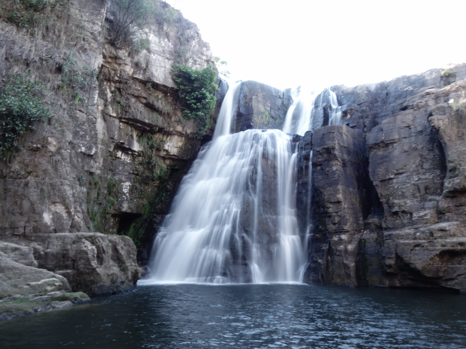 Período: 15 a 19/11/2017 (período chuvoso) Cidade-Base: Caiapônia/GO, a 550 km de Brasília e 335 km de Goiânia. Relato escrito pela companheira de viagem Maria Fernanda. Fiz só algumas pequenas adaptações. Dessa forma muitas vezes vai estar se referindo a mim na 3ª pessoa...hehehe Além dela o Raphael também integrou o grupo, na verdade foi ele o mentor da viagem em seu Uninho Mille. Dia 15/11, quarta: - Saída DF: 05h30 - Chegada Caiapônia: 13h30 - Estrada via Iporá em ótimo estado de conservação ao longo de todo o trajeto - Fomos direto às Cachoeiras Jalapa e Tobogã. No caminho de terra à direita avista-se ao longe o "Morro do Gigante Adormecido". Lindão! Nível dificuldade das cachús: Zero! Segundo nossa avaliação, são as mais "simples", de menor beleza cênica e sujeitas a estarem lotadas nos feriados e finais de semana. Entretanto, quando lá chegamos só havia mais 3 pessoas. Depois de ficarmos ali um tempinho, seguimos rumo a Cachoeira Três Tombos Como chegar: 5 km antes de Caiapônia na GO-221 no sentido Iporá-Caiapônia Cachoeira Três Tombos Chega-se por cima, onde o Rio São Domingos encontrava-se raso, (na altura de minhas canelas, se tanto!). Do alto, aprecia-se um lindo desfiladeiro e a bela Três Tombos (nome autodescritivo). Próximo ao local do estacionamento à direita há uma trilha para a descida com mais segurança, com cordas para apoio. Não é preciso fazer como nosso audaz e intrépido Anderson Paz que - não encontrando a "descida oficial" - bancou o "Indiana Jones" numa descida arriscada pirambeira abaixo, ok?! O poço dessa cachú é DE-LI-CI-O-SO!! Todos concordamos que suas águas são as mais deliciosas em que tivemos a experiência de nadar / mergulhar. NÃO DEIXEM DE VIVENCIAR ISSO, certo?! Como chegar: BR 158, 46km em direção a Piranhas a partir do trevo que sai de Caiapônia + 16km de estrada de chão. Tem algumas placas. Confie nelas. (Digitar “Cachoeira 3 Tombos” no Google Maps) À noite: Restaurante do Ernesto, frente do Hospital Municipal. Fernanda e Rapha foram de "jantinha" (PF reforçado!) e Anderson foi de sanduba sem carne (com ovo, tomate, milho, alface e maionese). Dia 16/11, quinta feira. Cachoeiras Samambaia e Abóbora Chega-se por cima da Samambaia, literalmente! Inclusive, cruzamos o riacho q a origina sem que déssemos fé disso. Um pouco mais a frente percebemos que havíamos passado do ponto - ela estava logo à direita do riacho. Ao fazermos o retorno, tivemos a sorte de avistarmos 2-3 catetos ariscos. A de scida da Samambaia é tranquila e sinalizada. Queda d'água bonita. Há um poço pequeno . Para chegarmos a Abóbora, voltamos ao ponto de início da descida à Samambaia e pegamos uma trilha em frente, curta (talvez 250 m) e discretíssima! É provável q exista outra trilha por baixo, mas não vimos! A queda e o poço da Abóbora são maiores do que a Samambaia. No entanto, ao chegarmos, deparamo-nos com um fedor forte e nauseante de algum bicho morto nas proximidades. Não permanecemos mais do que alguns poucos minutos por ali. Peninha... Nota Importante: das que visitamos, estas duas cachoeiras ficam muuuito próximas de pastagens e plantações imensas. Como chegar: BR 158, 10km em direção a Piranhas a partir do trevo que sai de Caiapônia + 30km de estrada de chão. Na BR entrar na placa escrita "Vivas Samambaia". O carro para em um estacionamento ao lado do córrego que desemboca na Samambaia. A primeira cachoeira é a Samambaia. Uns 300m de trilha a direita fica a Abóbora (digitar “Cachoeira Abobora” no Google Maps) Após, retornamos ao carro e seguimos nossa aventura em busca à Cachoeira São Domingos... Nessa tarde, fomos agraciados com um original e generoso "Safari no Cerrado". Além dos catetos que avistamos mais cedo conseguimos ver: 10 ou 12 emas, vários tucanos, dezenas de periquitos, muuuuitas corujas, alguns carcarás, seriemas aos montes, curicacas às dezenas, muuuuuitas Araras. Em especial, passamos por um grande pequizeiro e, logo atrás dele, uma fascinante "Árvore de Araras" com 12 exemplares delas, algumas com pequis nos respectivos bicos! Muitos bichos depois, chegamos ao mirante natural da cachú São Domingos... Cachoeira São Domingos Respirações suspensas, expressões estupefatas... Até agora, não encontramos a palavra exata para descrevê-la... BELÍSSIMA! EXUBERANTE! ENCANTADORA!* Para quem conheceu o *"Buraco das Araras" em Formosa... 3 ou 4x o diâmetro dela x 96 m de altura. Para quem conheceu o "Véu de Noiva da Chapada dos Gimarães...mais bela na nossa opião! Após muitas fotos e contemplações, ficamos por uns 40 min procurando a trilha para descer até seu poço. Já estávamos desistindo da descida, quando um som de esperança inundou o ar... uma moto estacionou: era uma das moradoras da casa logo na entrada do terreno de acesso à cachoeira. Apontou-nos o início da trilha ao lado da cerca da propriedade. Após uns 15 min de percurso no sentido contrário à cachoeira, em um caminho plano, a trilha inicia uma descida relativamente inclinada rumo ao vale; por baixo, retorna-se por cerca de 1 km em direção à cachoeira e VOILÁ: a queda belíssima e o poço magnífico!! Dá pra chegar bem embaixo da cachoeira, como é possível ver na foto abaixo. Após uns 40 min, vimo-nos obrigados a abandonar o paraíso recém-encontrado e retornar: já eram 17h40h. Não queríamos correr o risco de retomar a trilha, em geral bem marcada, mas com alguns trechos que requeriam um pouco mais de atenção, e realizar a subida no escuro. Ao chegarmos no topo, não pudemos apreciar o pôr do sol... dia nublado. Mas, fomos premiados com um belo passarinho azul da cara preta e mais 2 casais de curicacas. Como chegar: a partir da Abóbora, há uma estrada de chão de aproximadamente 40 km (digitar Cachoeira de São no Google Maps) Início da noite. Já na estradinha deserta em direção à Caiapônia avistamos 3 belíssimos veados (um deles galhado), pastando serenos