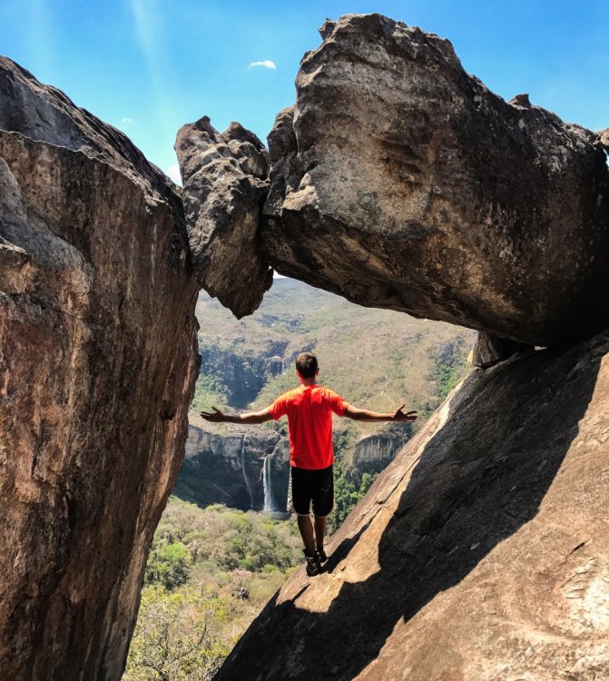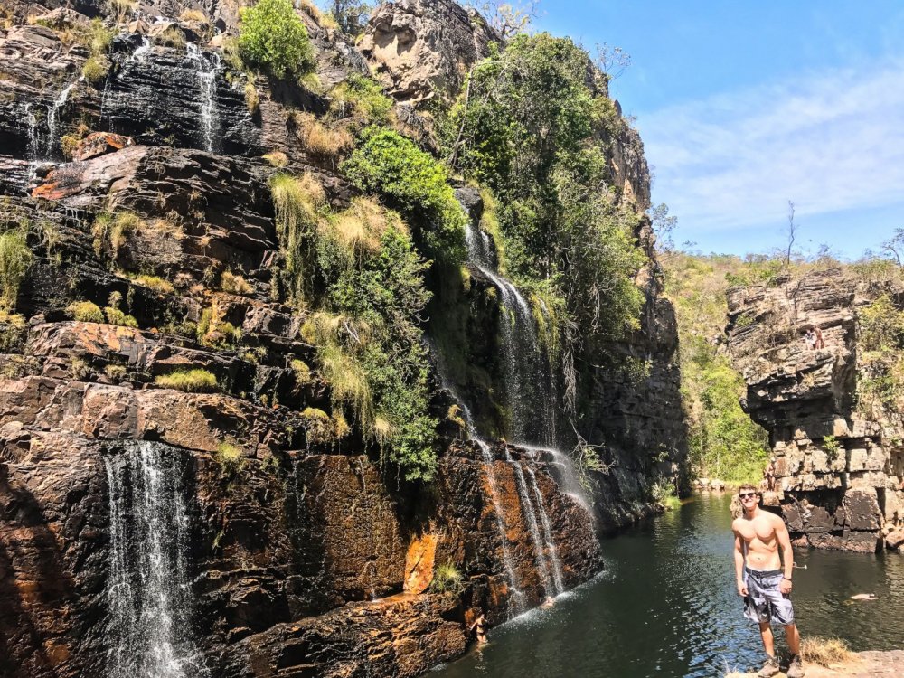 Quinta-feira, 30 de abril de 2020. Saravá, mochileiros! Escrevo esse relato no dia 30 de abril, em plena pandemia de COVID-19. Estou pra escrever o relato já algum tempo. A viagem foi em fevereiro de 2020, no carnaval, logo antes do primeiro caso de coronavírus ser confirmado no país. E nesse momento de stress, a coisa que eu mais sinto falta é pegar a mochila e viajar, sem sombra de dúvidas. De certa forma, o relato vai ser meio bucólico pelo fato da gente não poder sair. E escrever sobre viagens talvez seja a atividade mais terapêutica que eu conheço, além de viajar, claro. Então se você, como eu, está aflito com toda a situação, ficando em casa e lembrando de viagens antigas e bons momentos, aproveite esse relato pra te inspirar e lembrar que tudo isso vai passar 😊. Afinal, melhor que surtar com toda a situação é nos apoiar nos momentos que marcaram a sua vida. E com certeza, conhecer a Chapada foi um dos grandes expoentes da minha vida de viajante! 🌎 Antes de tudo, vale conferir dois relatos que me ajudaram bastante ao planejar a viagem: O relato geológico do Guilherme e também o divertidíssimo e detalhado relato do Stanlley. Ambos abordam de forma diferente a Chapada, dando uma ideia geral, junto com esse relato, do que esperar lá! Vamos lá! 1. Cronograma A viagem se divide em duas partes. A primeira, em Brasília, que fui sozinho, por dois dias. Nunca tinha ido à capital e era um sonho conhecer o lugar onde fica o Itamaraty, o Planalto, o STF...como um bom economista, BSB é destino obrigatório em algum momento da sua vida. E foi incrível! Depois os últimos 4 dias foram na Chapada, onde encontrei meu irmão Flávio e minha grande amiga Thaís. Viajamos os 3 juntos de BSB pra Vila de São Jorge. Aqui vai o cronograma: Dia 1: Quinta, 20/fev/2020: Voo Congonhas-BSB, Congresso, Esplanada, 3 Poderes e Pontão do Lago Sul. Dia 2: Sexta, 21/fev/2020: Banco Central, Caixa Cultural, Itamaraty, CCBB. Dia 3: Sábado, 22/fev/2020: Saída de BSB para São Jorge, chegada às 15h. Dia 4: Domingo, 23/fev/2020: Parque Nacional, Saltos, Corredeiras. Dia 5: Segunda, 24/fev/2020: Cachoeira do Cordovil. Dia 6: Terça, 25/fev/2020: Mirante da Janela e Cachoeira do Abismo. Dia 7: Quarta, 26/fev/2020: Voo BSB-Congonhas, chegada 13h30. 2. Gastos A viagem não é cara, se você for prudente. O que fizemos foi poupar nas hospedagens para poder gasta um pouco mais nos restaurantes/bares. Aqui vão os gastos: Voo ida e volta SP-BSB: 703,00 BRL Hospedagem em BSB (Econotel, 2 diárias): 298,00 BRL Hospedagem em São Jorge (Savana Hostel) 420,00 BRL Entrada trilhas/parque: 120,00 BRL Comidas/souvenirs: 400,00 BRL Aluguel carro (4 diárias, com combustível incluso, pra cada um): 255,00 BRL Total sem passagem aérea: 1493,00 BRL Total com passagem aérea: 2196,00 BRL 3. São Jorge ou Alto Paraíso? Esse foi uma pergunta que ficou na nossa cabeça desde o planejamento da viagem. A Vila de São Jorge é uma vilarejo a 40km da cidade de Alto Paraíso de Goiás, que se autointitula "capital da Chapada dos Veadeiros". Acho que vai de cada um, do tipo de viagem. Uma das vantagens de São Jorge é que, caso vá visitar o Parque Nacional, ele fica em São Jorge, dando pra ir a pé. A maioria das cachoeiras/trilhas da região fica na estrada que liga as duas cidades. A Chapada é enorme e claro, não conhecemos Cavalcanti e etc, vai ficar pra próxima. Você já deve ter ouvido que para conhecer a Chapada inteira você tem que ir váaarias vezes, e é real!! Conhecemos inclusive uma garota, a Paula, que ela tava pela quarta vez em 1 ano na Chapada. Gente fina demais! Basicamente então minha dica é: se você curtir um clima mais simples, com direito a forró e samba na praça, escolha São Jorge. Se você quer algo mais reservado, com pousadas, etc, vá para Alto Paraíso. Ficamos em São Jorge e curtimos demais! 4. Condicionamento físico, roupas, etc Aqui uma dica de ouro. Se você não tem, providencie uma bota/tênis de trekking. Eu já tinha feito viagens de trilha pra Patagônia e Atacama, então já tinha uma ideia do que esperar. Mas por exemplo, meu irmão teve bastante problemas com o joelho por causa do tênis. Ele levou um New Balance urbano. Grande erro! O sapato praticamente se desfez e jogamos no lixo antes de voltar pra SP. De resto, o básico: você vai fazer uma viagem de trilha, então trate de ir adequadamente! Camisetas leves, bermudas/calças, capa de chuva (pegamos uma chuva pesadíssima na volta do Mirante da Janela!), chapéu/boné, protetor solar...Vimos uma quantidade imensurável de gente que tava indo maquiada e despreparada (sim!!! haha fizemos piada a viagem inteira disso) pras trilhas. Imagino como ficaram depois de tomar a chuva que a gente tomou no último dia. Sobre condicionamento, depende da trilha que você escolher fazer. A mais difícil que fizemos foi bem tranquila, mas sei que tem umas trilhas bem pesadinhas lá! Então não que você precisa ser um atleta, mas tenha um pouco de condicionamento físico. Ele será importante, principalmente nas partes de subida . Sobre isso, eu também levei meu bastão de trekking que tinha comprado para ir à Patagônia e foi de ótima utilização! Subir e descer com o auxílio do stick poupa muita energia! Fica a dica. 5. Época de ir e clima Estamos falando do cerrado! E ele é bem característico e previsível! Então basicamente há dois períodos: a seca e a cheia. A seca é entre abril e setembro, e a cheia é de outubro a março. Como fomos no Carnaval, pegamos o fim da cheia. Então sim, todo dia chovia! Ou pelo menos dava aquela chuviscada. Demos sorte e pegamos chuva em apenas uma das trilhas, o resto já estávamos no hostel. Em Brasília é a mesma coisa. Era bizarro, o dia amanhecia com um sol escaldante e, do nada, às 14h da tarde vinha um temporal. Mas aí o Sol voltava a surgir às 15h. Eu achava muito legal! A vantagem de ir na cheia é que algumas cachoeiras, como a do Abismo, estão, como o n