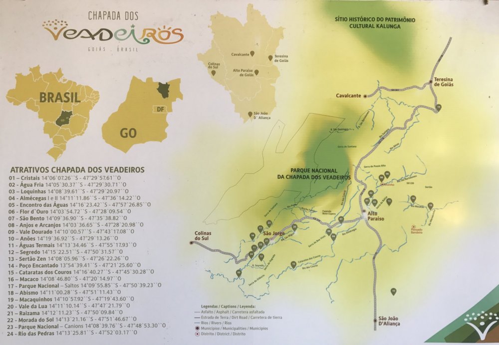 Olá pessoal, Morei em Brasília por um tempo e em alguns finais de semana fui conhecer a Chapada dos Veadeiros. Me apaixonei por aquele lugar. Natureza em estado bruto! Acordava com tucanos nas árvores do lado do meu quarto. Enfim, segue um pequeno vídeo que fiz dos momentos que passei lá... Juntei algumas informações e dicas dos lugares que visitei. Segue abaixo: Informações gerais A Chapada dos Veadeiros é formada por várias cidades e mais de 2000 cachoeiras catalogadas para a região. A regiao fica no mesmo paralelo que Macchu Picchu e esta localizada em cima de uma imensa placa de cristal de quartzo que, reza a lenda, tornam a região brilhante se vista do espaço e atrai uma energia cósmica... Ou seja, a Chapada dos Veadeiros é considerada um dos maiores destino místicos do Brasil. As 3 cidades mais populares como ponto de acesso aos principais atrativos são Alto Paraíso, São Jorge e Cavalcante. Alto Paraíso é a maior cidade das 3. É onde se encontra maiores opções de hospedagem, restaurantes, etc. São Jorge é um vilarejo localizado a 35 km de Alto Paraíso e porta de entrada para o Parque Nacional da Chapada dos Veadeiros. São Jorge tem uma atmosfera mais hippie, com muitas lojas de artesanato e ruas apertadas (muitas delas sem asfalto). Cavalcante, localizada a 91 km de Alto Paraíso, é a cidade aonde todos vão com o objetivo de conhecer Santa Bárbara, a cachoeira mais famosa da Chapada. Mas também existem outras atrações imperdíveis como Rio da Prata. A maior cidade mais próxima da Chapada é Brasília. São 230 km da capital até Alto Paraíso que podem ser feitos de carro (melhor opção pois te dá autonomia em relação aos passeios), ônibus (empresa Real Expresso) ou carona. Existe dois grupos no Facebook de pessoas que oferecem carona (muitas vezes vc contribui na gasolina) que funcionam muito bem! Os links: https://www.facebook.com/groups/240194479350012/?ref=br_rs https://www.facebook.com/groups/1636791463255652/?ref=br_rs Dicas Gerais - A primeira coisa a se fazer assim que chegar m Alto Paraiso, Cavalcante ou São Jorge: Ir ao CAT (Centro de atendimento ao turista). Lá vc vai ver todos os passeios disponíveis, pegar informações sobre o estado atual das trilhas, contratar guias, etc. - Tênis confortável, protetor solar e MUITA água pras trilhas. - Não faça fogueiras nem use sabonete ou shampoo nas cachoeiras. - Na rua principal de Alto Paraíso tem um mercado e uma padaria muito bons (é fácil achar). A Padaria abre as 6:30 todo dia. Vendem omeletes, bolos e salgados bons pra levar pra trilha (pão de queijo deles é mto bom tbm), só não vendem água (que vc tem que comprar no mercado do lado). - Todo sábado pela manha acontece uma feira onde se vende artesanato, sucos, lanches, etc. Vale muito a pena ir tomar um café da manha por lá. É só perguntar no hotel que eles sabem dizer onde fica. - Quer ver muitas maritacas e tucanos? Tem um terreno baldio em Alto Paraiso que parece ser o dormitório deles. Siga até a Pousada Meu Talento e de lá ande uns 10 metros vc verá um terreno abandonado. É lá! Chegue umas 17:50 e espere ate eles aparecerem. Os tucanos ficam mais nas embaúbas. Eu pulei a cerca e entrei um pouco mais para ficar mais de perto (cuidado com os cachorros! Kkkk). Clique na imagem abaixo para ler melhor as informações: Dinheiro Leve dinheiro em espécie! Em Alto Paraíso tinha um caixa eletrônico, mas na época que fui (Agosto/2017) não tinha nenhum! Em São Jorge e Cavalcante também não existem caixas. Qual a melhor época? Existem 2 períodos: O da seca (maio a setembro) que é quando o nível de água das cachoeiras diminui e é possível tomar banho sem riscos. Já no período das chuvas o volume aumenta e elas ficam mais bonitas, mas o perigo de trombas d’água é maior. Onde se hospedar? A cidade com maior opção de hospedagem é Alto Paraíso. Das 3 vezes que fui fiquei em Alto Paraíso. Segue a avaliação das pousadas: - Buddy’s Hostel: Quarto limpo, staff atencioso e ambiente bacana. Tem quarto compartilhado e cozinha. Fica uns 10 minutos a pé da rua principal. Recomendo! Site: http://www.buddysalto.com/ - Pousada Caminhos de Santiago: Ótimo ambiente e café da manhã. O único problema é que alguns quartos ficam no segundo andar em uma construção de madeira que faz mto barulho quando as pessoas passam. Principalmente a noite. Site: http://www.pousadacaminhodesantiago.com.br/ - Pousada Meu Talento: Uma das melhores pousada que fiquei na vida! Café da manhã completo com vários tipos de queijo, frutas, sucos, etc. Staff extremamente atencioso, piscina, ambiente... Tudo perfeito! Ambiente romântico. Perfeito para casal. Mas se prepare pq é caro! Site: http://pousadameutalento.com.br/ Onde comer? Na rua principal de Alto Paraíso tem varias opções. - Caverna do Crepe: Crepe realmente muito bom e barato. - Ateliê da Pizza (conhecida tbm como Pizzaria 2000): Pizza OK. Nada demais. - Vendinha 1961: Um restaurante/bar com um clima legal. Olhando de fora parece que é caro, mas é um preço justo. Musica ao vivo, mas atendimento não muito bom. Especialidade em pastéis. Muito gostosos! - La Vita e Bella: Restaurante de comida italiana. Experimentei um nhoque que tava bem meia boca. Pode ser que os outros pratos sejam melhores. - Cravo e Canela: Restaurante vegetariano muito bom! Sabores bem diferentes. Me surpreendi. Só demoram pra fazer o prato. Recomendo! - Santo Cerrado Risoteria: Esse restaurante fica em São Jorge. Especialidade em risotos (óbvio) e realmente são muito bons! Com musica ao vivo no segundo andar. Ótima opção em São Jorge. Em feriados fazer reserva com antecedência!! - Jambalaya: Restaurante caro, mas um dos melhores de Alto Paraiso. Todo a luz de velas. Clima romântico. Comida maravilhosa (Pedi um pesto com filé ao molho de limão siciliano que tava perfeito). Ir de carro ou não? Fui 1 vez sem caro e outras 2 com carro. Sem carro fazia o seguinte: Faz