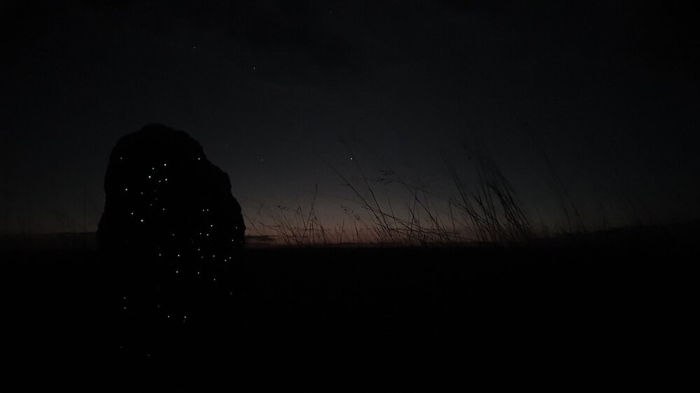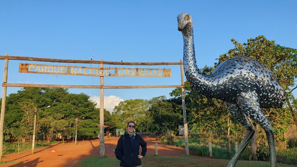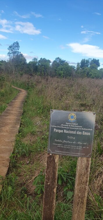 Finalmente criei coragem para fazer o relato dessa viagem deliciosa! Tudo começou com uma amiga bióloga que já conhecia o Parque Nacional das Emas e ela sabia que eu sou doida por natureza etc e me convidou pra ir no feriado do dia 15 de novembro do ano passado (uma sexta). Obviamente eu aceitei o convite e fomos ela, os filhos dela, um casal de amigos dela com um filho e eu. Fomos de carro, partindo de Campo Grande-MS. O Parque pega Goiás (Mineiros e Chapadão do Céu), a maior parte dele, e Mato Grosso do Sul (Costa Rica). Seguimos pra Costa Rica, cerca de 4 horas de deslocamento, almoçamos na cidade antes de partir para o Parque. Existem algumas pousadas próximas ao Parque, mas acabamos acampando por lá na área de camping. Levamos barraca, alimentação e tudo mais. Quando vai pra acampar, me parece que existe a possibilidade de combinar o almoço por pessoa com uma senhora que vai pra lá pra cozinhar. Acabamos almoçando com ela apenas no último dia porque um grupo de pessoas havia combinado de ir e não apareceu, então estava sobrando comida e nos ofereceram (acho que por R$20,00, algo assim). Bom, quanto ao Parque e aos passeios etc... existe entrada pelo lado do MS, mas acredito que entramos por uma das entradas de GO mesmo. O primeiro dia foi de organização das barracas e observação de aves (essa minha amiga é passarinheira e condutora de observar aves, então ela contratou um condutor para fazermos passarinhada nos dois primeiros dias). Começamos a passarinhada às 14h30 mais ou menos, voltamos no final da tarde pra tomar banho e comer e logo retornamos apenas o condutor, minha amiga e eu para a passarinhada noturna. Vocês me desculpem, mas eu sou passarinheira amadora e não lembro e nome de quase nada das aves que vi, kkkkkk, mas garanto que eram todas lindas e muitas delas bem fofinhas (os passarinhos pequeninos). A parte da noite foi a de que mais gostei... uma sensação de aventura muito maior, algumas partes da estrada estavam com bastante água porque havia chovido um pouco naquele dia e nos dias anteriores, então foi mais legal ainda. Além disso, nosso condutor era simplesmente maravilhoso e mostrava pra gente não só aves, mas também cobras; foi a 1ª vez na minha vida que vi uma jiboia arco-íris e eu me apaixonei por ela 😍. Conseguimos ver algumas aves que eram "lifer" pra minha amiga e foi isso. Voltamos bem tarde e vale muito a pena. No segundo dia, mais passarinhada pela manhã. Dessa vez, fomos para um outro lado do Parque e de novo apenas o condutor, minha amiga e eu. Não conseguimos aproveitar tanto porque começou a chover, mas não reclamamos... a chuva era ótima para o que viria à noite... No período da tarde, fomos fazer o passeio de safari (precisa ter pelo menos 8 pessoas para o passeio rolar). Não lembro o horário que saímos, mas foi um passeio muito gostoso... é ótimo para contemplar o Cerrado (🥰) e ver animais (quando eles aparecem kkkkk); não sei se era pelo horário (sol muito forte), mas não vimos taaantos bichins... (emas, veados, cobra, alguns gaviões - lobo-guará, que dizem ser tão fácil de ver, não deu o ar da graça), mesmo assim foi muito bom! Durante o passeio, existem algumas paradas para contemplar a natureza, a vista (se bem me lembro, há 2 mirantes). Mais adiante, tem uma parada na entrada principal do Parque (indo pelo lado de dentro, óbvio) pra banheiro, comes e bebes, compras (souvenirs e picolés) e o resto é gastar um tempinho pra turistar pelas esculturas de animais da entrada do Parque. Feita a parada estratégica, o sol já estava se pondo e fomos rumo à maior sensação do Parque Nacional das Emas: os cupinzeiros bioluminescentes 🤩. Eu parecia uma criança prestes a ganhar o presente dos sonhos!!! Nenhuma foto é capaz de passar esse fenômeno! O que dá a bioluminescência aos cupinzeiros? Nada mais, nada menos do que larvas (bebês) de vagalumes que se alimentam dos cupins. Inclusive, na estrada dentro do Parque, se vê bastante desses insetinhos com lampadinhas no bumbum, coisa rara de se ver fora de áreas protegidas, infelizmente. Esses cupinzeiros de dentro do Parque possuem muitos anos, coisa de décadas. O mais famoso pra ver esse fenômeno é um enorme que fica bem na beirada da estrada, mas a guia oferece pra entrar no mato (eles obrigam o uso de perneiras por conta de cobras e são oferecidas por eles mesmos). Obviamente que quis ver todos os cupins brilhantes possíveis kkkkk. O ápice da noite ao contemplar os cupinzeiros foi quando a lua cheia saio de trás das nuvens... indescritível! Fim do 2º dia. O terceiro e último dia foi de passeio de bote no Rio Formoso. Fomos pela manhã (acredito que lá pelas 8h30 ou algo assim), vai um guia por bote pra remar (pegamos 2 botes) e existem alguns pontos para banho. Não lembro ao certo quanto tempo de passeio, mas penso que deve ter sido no máximo 2h. Um passeio bem gostoso, conseguimos observar algumas aves (já que tinha uma condutora no mesmo bote que eu kkkk), aproveitar um banho de rio e contemplar a natureza. Terminado o último passeio, hora de levantar acampamento para voltar pra casa e almoçar antes da partida. Observações: é obrigatório guia para a permanência dentro do Parque (seja em passeio ou não); não tenho o preço de nada porque não anotei (😁); havia um tipo de flor cor rosa-chiclete no meio da vegetação (dentro do Parque), mas fiquei com medo de atrapalhar e não pedi pro carro do safari parar pra eu ver e fotografar... uma flor que só existe lá (arrependimento bateu forte); a estrutura da entrada da frente tá bem feia... há umas bicicletas cujo propósito seria alugar para fazer trilha, porém estão em péssimo estado; a época boa de ver a bioluminescência é de período de chuva, sendo melhor os meses de outubro e novembro. 20241115_124750.mp4-