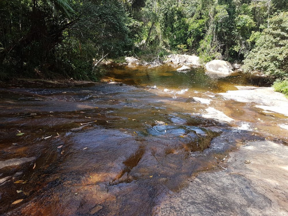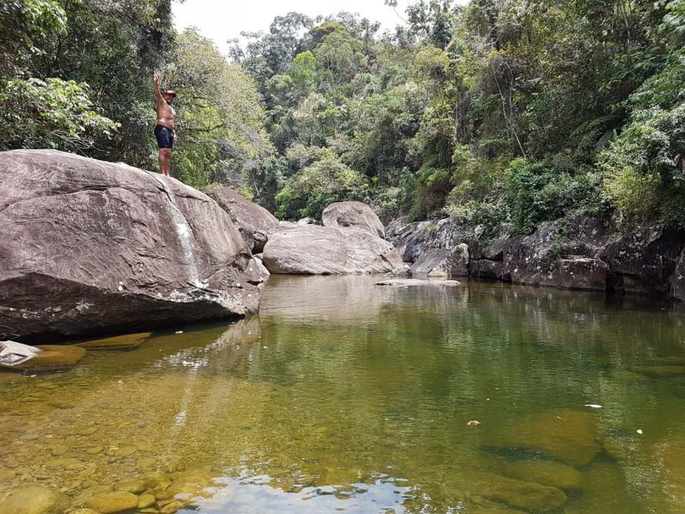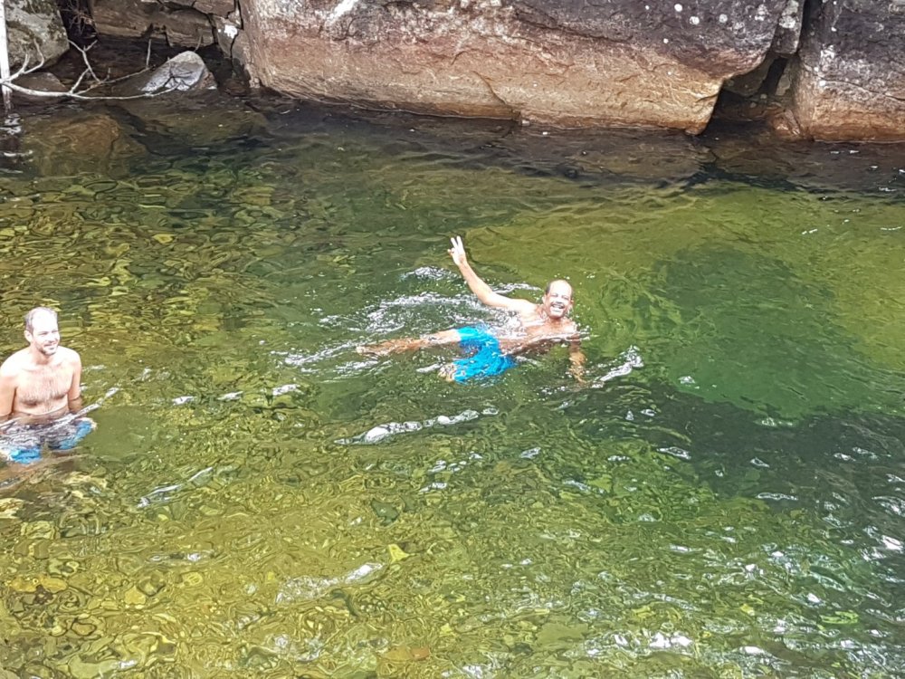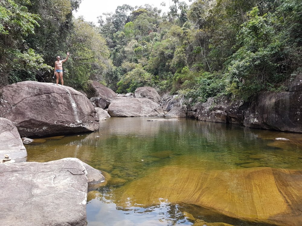 Patrimônio da Penha Como chegar em Patrimônio da Penha Existem algumas maneiras de chegar em Patrimônio da Penha vindo de Vitória, com caminhos pela BR-262 e pela BR-101, mas vou focar somente na que o Google Maps indica, justamente o trajeto que fizemos para voltar da Penha e que é totalmente asfaltado – apesar de ter muuuitos buracos na estrada. A distância a ser percorrida desde a Rodoviária de Vitória é de 235 Km, indo pela BR-262, o que dá umas 4 h de viagem, a depender do trânsito de caminhões lentos que você irá encontrar pelo caminho. Onde se hospedar em Patrimônio da Penha A zona urbana do distrito não tem nem 1 Km, mas, ainda assim, só nessa pequena área, você já encontra algumas opções de hospedagem. A primeira são os campings, e aqui eu destaco dois: o Cachoeira da Vó Tuti, que fica a poucos metros da rua principal e tem a sua própria cachoeira no quintal, além de um espaço para esportes de aventura. As cachoeiras de Patrimônio da Penha Patrimônio da Penha possui uma fantástica sequência de cachoeiras que iremos apresentar para você agora. No alto dessas cachoeiras está uma “praça” com um balanço pendurado em uma enorme árvore, a Casa de Vidro e o Portal do Céu, mas não conseguimos visitar esses dois últimos locais, e você vai entender o porquê mais adiante. O percurso para passar pelas Cachoeiras da Penha é por uma estrada de terra, com o rio passando sempre do lado esquerdo e com as cachoeiras acessíveis basicamente por trilhas, e a distância de caminhada para chegar até a praça do balanço, seguindo sem nenhum desvio desde a guarita da entrada das cachoeiras, é de 1,3 Km – na descida, percorremos esse trecho em 25 minutos de caminhada direta. *Cachoeira Vó Tuti Saímos da CasaZen já no final da tarde e fomos caminhando mesmo, tendo o primeiro contato com a parte urbana de Patrimônio da Penha. Em uns 600 m, após passarmos pela entrada do campo de futebol à esquerda, viramos à direita na placa que indicava o caminho para a Cachoeira Vó Tuti e percorremos mais uns 300 m até a propriedade, que possui bar, restaurante, área de camping e espaço para atividades radicais, como escalada e tirolesa. Ah, claro, tem também uma cachoeira no quintal. *Cachoeira Beija-Flor Tomamos café no dia seguinte e a Tetê sentou com a gente para nos passar as instruções a fim de conhecermos as demais cachoeiras de Patrimônio da Penha. Saímos então às 8:30 h de carro mesmo – poderia ser a pé, mas foi mais cômodo assim – e, em 400 m, viramos à direita na placa que indicava “Acesso às Cachoeiras do Patrimônio da Penha”, na esquina da Assembleia de Deus. *Cachoeira Caldeirão das Maravilhas Essa aqui é uma cachoeira escondida, pois não há placa na estrada indicando a existência dela. Saindo da Beija-Flor, caminhe só por uns 200 m e à esquerda haverá uma casa abandonada. Siga pela lateral esquerda da casa e você verá uma trilha com descida – o caminho é esse. A trilha aqui já é mais rústica e inclinada, precisando em alguns pontos de um apoio nos galhos. *Cachoeira Arco-Íris Bem pertinho da Caldeirão das Maravilhas está a Cachoeira Arco-Íris, voltando para a estrada e pegando novamente uma trilha à esquerda mais adiante. Ela tem uns três poços com pequenas quedas d’água e outra queda d’água bem maior mais acima nas pedras. Para ir nessa outra queda d’água, volte para a trilha e logo vire à esquerda. Essa cachoeira mais acima no rio tem um poço maior e melhor para banho. *Cachoeira da Purificação De volta à estrada, continuamos o caminho e logo nos deparamos com uma bifurcação: para a esquerda, mais alguns poços; para a direita, uma ladeirinha com trilha bem estreita que é o caminho para o balanço, o Portal do Céu e a Casa de Vidro. Seguimos para a esquerda. Na verdade, estávamos meio perdidos nesse momento, pois achávamos que a Casa de Vidro era por ali, o que não tem nada a ver. Logo à frente, a pista de carros termina no rio, onde poderíamos atravessá-lo ou pegar um caminho pela direita – a Cachoeira da Purificação é por essa direita. Mas antes fomos em direção ao rio e paramos um pouco para apreciar a vista maravilhosa do alto de uma queda d’água, que era a cachoeira mais acima da Arco-Íris. O que mais tem para fazer em Patrimônio da Penha e nas redondezas? Para finalizar as atrações da Penha, vamos deixar duas atrações para curtir à noite: o Bar Destino e o Armazém, todos ali pertinho, na rua principal. O Bar Destino (que não tem nenhuma relação com o Destinões :P) tem um cardápio variado, que flerta mais com as comidinhas de boteco, mas também é restaurante e cafeteria. Já o Armazém é uma pizzaria, e em alguns finais de semana ou em datas específicas, como feriados, rola alguma banda – na noite que estivemos por lá tinha um forró pé-de-serra. Em todos dá para tomar uma gelada, aquela pinga e outras bebidas para esquentar a noite. Balanço, Casa de Vidro e Portal do Céu O caminho que leva ao Portal do Céu é bem fácil de identificar, que é essa subida pela direita da imagem abaixo, passando por uma trilha apertada – e também porque tem uma placa escrita “Trilha Portal do Céu”. PEDRA ROXA, IBITIRAMA Patrimônio de Pedra Roxa é uma região de Santa Marta distrito de Ibitirama. Também esta no entorno do Caparaó. Fica a 22 km da sede do município. É no caminho de Ibitirama para Pedra Roxa (depois de Santa Marta) que fica a Tecnotruta. Uma propriedade muito conhecida, responsável pela criação de trutas, peixe que veio do frio polar canadense e se adaptou às montanhas do Espírito Santo. A temperatura baixa e o clima ameno das montanhas tornaram-se o cenário perfeito para a criação de trutas. A Tecnotruta cria e vende o peixe inteiro ou em forma de filé. Vale a visita pela beleza do lugar, com todos aqueles tanques. E há um pesque e pague e um restaurante onde você pode apreciar o peixe em pratos diferenciados. *