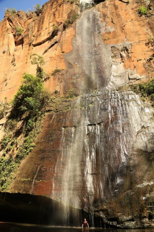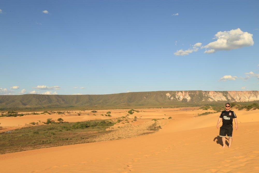 Olá, companheiros de viagem. Espero poder ajudar vocês com o relato do meu roteiro ao Jalapão e à Chapada das Mesas. Fui eu e minha namorada. A nossa viagem ocorreu entre os dias 22/07 e 02/08 do ano de 2017. Ficamos quatro dias no Jalapão e mais quatro na Chapada das Mesas. Saímos de carro de Brasília no dia 22/07 em direção a Ponte Alta do Tocantins-TO, cidade considerada o portal de entrada do Jalapão. São por volta de 770 km de distância. Fui por dentro da Chapada dos Veadeiros, onde você tem o privilégio de desfrutar lindas paisagens. As cidades referências pelo caminho são Alto Paraíso-GO, Campos Belos-GO, Arraias-TO, Natividade-TO, Chapada da Natividade-TO e Pindorama-TO. Há um trecho de estrada de chão de 65 km para se chegar a Pindorama. As rodovias estavam em boas condições. A viagem durou 10 horas, saímos às 6h de Brasília e chegamos às 16h em Ponte Alta. O trecho de terra aumentou um pouco o tempo de duração da viagem. Essa parte do relato é mais para auxiliar pessoas que partirão de carro de Brasília. Pra quem for de avião, tem a opção de alugar um veículo 4x4 em Palmas ou contratar uma agência que busca os turistas em Palmas. Há a possibilidade de incluir a Chapada dos Veadeiros no roteiro, a depender do seu tempo e disposição, ou trocar a Chapada das Mesas pela dos Veadeiros. Eu optei pela das Mesas por ser de Brasília e já ter ido algumas vezes à dos Veadeiros. JALAPÃO Vou iniciar com algumas considerações que acredito ser importantes para quem vai ao Jalapão. - CARRO. É necessário um veículo 4x4 para trafegar pelo Jalapão, ao menos no período de seca, de junho a setembro. Vi um carro sem tração, no caso um doblô, atolar várias vezes e sempre precisar de resgate; - GUIA. Eu optei por ir com um guia e recomendo. Acredito que ganhei tempo e segurança estando com o guia. Além disso, tivemos a felicidade de ir com um guia que nos falava sobre a fauna e a flora do Jalapão, que nos chamava a atenção para os animais, identificando-os, que nos contou as histórias dos morros e das serras. Enfim, o guia não era uma seta humana. Fizemos nosso roteiro e apresentamos ao guia, que foi bem solícito para que pudéssemos aproveitar ao máximo o Jalapão. Mas ressalvo que há pessoas que vão sem guia e conseguem ir a grande parte dos lugares. O guia que foi conosco é conhecido como China, telefone (63) 98432-6518. Recomendo-o. Tenho contato de outro guia, que foi quem nos ajudou muito durante o planejamento da viagem, mas não foi conosco por já ter outro passeio no mesmo período. Um cara muito tranquilo e gente boa. Oziel o nome dele, telefone (63) 98424-5822. A diária do guia custa R$ 150,00. O guia Oziel também faz o passeio no carro dele. Acredito que dessa forma seja R$ 600,00 a diária. Vão até 4 pessoas no carro, mais o guia; - DINHEIRO. Há poucas opções de caixa eletrônico. Em Ponte Alta, onde há melhor estrutura, só tem Bradesco e Correios, pra quem tem conta no Banco do Brasil. Não sei se tem lotérica, mas deve ter. Alguns restaurantes e pousadas aceitam cartão. Os postos de combustível passam cartão; - HOSPEDAGEM. Há poucas opções de hospedagem e os valores nas pousadas, no mês de julho, variaram entre R$ 140,00 e R$ 270,00, o quarto de casal com café da manhã; - ALIMENTAÇÃO. Há lugares para jantar em Ponte Alta, Mateiros e São Félix. Contudo, quanto ao almoço, haverá dias em que não será possível almoçar. A refeição custa em média R$ 35,00 por pessoa. Leve lanches a seu critério para comer durante o dia, pois também não há paradas para lanches. Eu e minha namorada somos vegetarianos, mas mesmo assim conseguimos nos alimentar numa boa; - GASTOS. A entrada nos fervedouros custa entre R$ 15,00 e R$ 20,00. Nas Dunas é sugerido uma contribuição para manutenção do local e normalmente as pessoas contribuem com R$ 5,00. Fora isso, só é cobrada entrada nas cachoeiras do Formiga, do Prata e das Araras, cujas entradas variam entre R$ 10,00 e R$ 20,00; - LEVE REPELENTE E PROTETOR SOLAR. Porém, é proibido utilizá-los nos fervedouros, por questão ambiental. 1º DIA (23/07) - (Cachoeira da Fumaça / Rio Soninho / Cachoeira do Rio Soninho / Pedra Furada) Nesse primeiro dia fomos à cachoeira da fumaça, que tem esse nome por conta da nuvem de fumaça formada por sua volumosa queda d’água. Logo no início do caminho vale a pena sair alguns metros da estrada para ir ao pé do Morro da Cruz. De Ponte Alta até a cachoeira da fumaça são 90 km, sendo 70 km em estrada de chão. Após, voltando pelo mesmo caminho, tomamos banho no Rio Soninho, apreciamos a bela cachoeira do Rio Soninho, e assistimos ao pôr do sol da Pedra Furada. Nesse dia não há parada para almoço. Dormimos novamente em Ponte Alta. Fotos da Cachoeira da Fumaça e da Pedra Furada. Ao fundo da Pedra Furada está o Morro da Cruz. 2º DIA (24/07) - (Cânion da Sussuapara / Cachoeira do Lajeado / Cachoeira da Velha / Rio Novo / Dunas do Jalapão) Daqui pra frente é tudo estrada de chão. Encha o tanque em Ponte Alta, pois em Mateiros e São Félix o litro da gasolina custou R$ 5,25. Saímos às 8h30 de Ponte Alta com destino final Mateiros. Esse é o dia mais longo da viagem. Percorremos 225 km. Mas curtimos cada momento. Cada lugar visitado oferece uma beleza única e peculiar. Essa é uma característica do Jalapão. O Cânion com suas paredes cobertas por vegetação e água brotando de vários pontos das rochas, a beleza e o banho da Cachoeira do Lajeado, a força e o volume d’água da Cachoeira da Velha, o refrescante banho no Rio Novo e, por fim, as Dunas do Jalapão no meio da imensidão do cerrado. Da estrada nesse dia avistamos os Morros da Bigorna, Saca-Trapo e Dedo de Deus. Nesse dia também não há parada para almoço. Fotos do Cânion da Sussuapara, da Cachoeira da Velha e das Dunas do Jalapão com a Serra do Espírito Santo ao fundo. 3º DIA (25/07) - (Serra do Espírito Santo / Fervedouro Buriti 