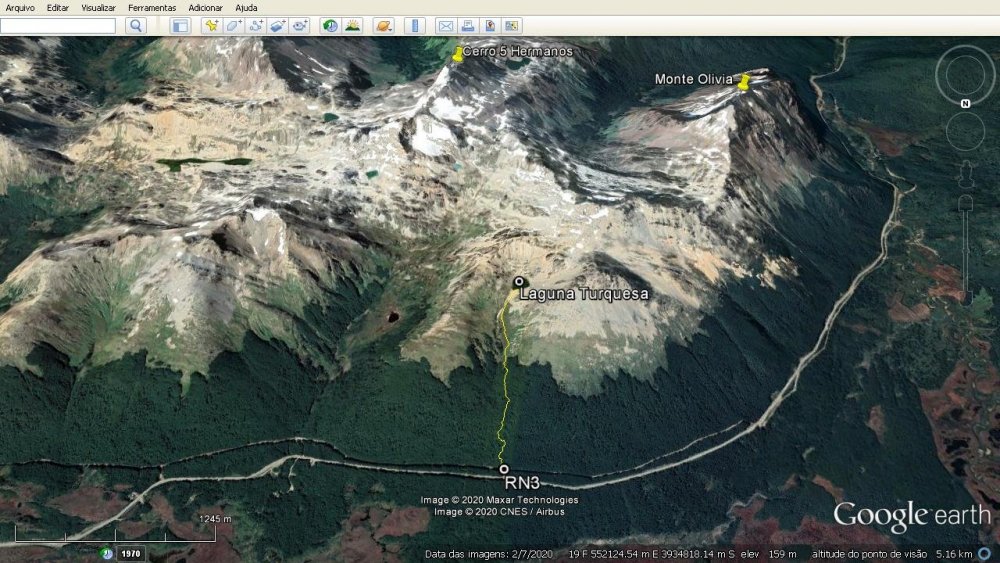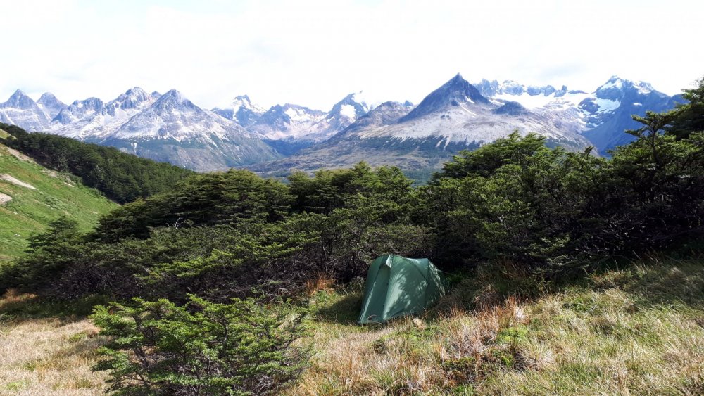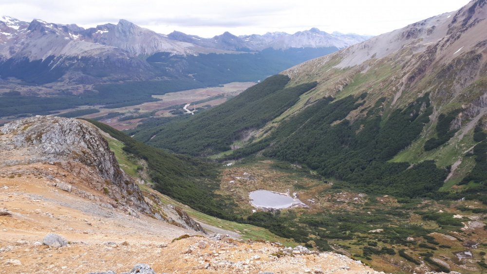 Laguna Turquesa A caminhada da Laguna Turquesa costuma ser feita num bate-volta de um dia apenas. Apesar do desnível de 363m a subida pode ser feita em 1h, com a descida ainda mais rápida. Eu tinha bastante tempo e queria acampar na laguna para assistir ao pôr-do-sol se o tempo permitisse. Porém os dias estavam muito chuvosos. Acompanhei a previsão pelo Yr e ele indicava pouca chuva e algum sol para os dias seguintes. Porém na manhã em que sairia (27) a previsão para o dia seguinte (28) mudou e era de mais chuva que antes (2,2mm). Já estava com a mochila pronta e resolvi ir assim mesmo. Mal sabia eu o que me esperava... 1º DIA - 27/01/20 - subida à Laguna Turquesa Início: RN3 Final: Laguna Turquesa Distância: 1,7km Maior altitude: 658m na Laguna Turquesa Menor altitude: 295m na rodovia RN3 Resumo: nesse dia subi da rodovia RN3 à Laguna Turquesa em cerca de 1h (desnível de 363m) Saí do hostel bem tarde, às 12h36. Os dias longos do verão no extremo sul do continente deixam a gente bem relaxado com relação ao horário das caminhadas. Há luz do dia até depois das 21h30 nessa época (janeiro). Na Rua Gobernador Deloqui, no centro de Ushuaia, peguei o ônibus da linha B (poderia ser o da linha A também, porém na Avenida Maipu) e desci no ponto final junto ao portal da cidade (saída para Rio Grande). Em frente ao ponto final fica o posto policial e ao passar por ele somos sempre "convidados" a entrar e registrar nome, documento e destino. Logo depois do portal as pessoas ficam pedindo carona. Quando cheguei um rapaz argentino me disse que estava ali fazia 1h... mas tive mais sorte que ele. Num momento em que ele saiu para fumar um caminhão parou para mim sem eu levantar o dedo! O motorista ia para Tolhuin. Saltei na entrada da trilha para a Laguna Turquesa às 14h14. Há uma plaquinha improvisada de madeira na rodovia RN3 apontando a trilha. Nos primeiros 70m é uma rua de terra que liga a RN3 à estradinha do gasoduto. Cruzando essa estradinha é que se entra na trilha no bosque. Parei para comer alguma coisa e entrei nela às 14h36. Altitude de 310m. Valle Olum Subi até os 535m e saí do bosque (15h12) cruzando um lamaçal terrível. Passei a caminhar por um campo encharcado já com visão do circo glacial que abriga a laguna. O rio que brota dela corre num valezinho à esquerda. Ao subir um pouco mais olho para trás e avisto a famosa e popular Laguna Esmeralda entre montanhas do outro lado da RN3. Cheguei à Laguna Turquesa, que na verdade tem cor verde-esmeralda, às 15h32. Altitude de 658m. Decidi ir direto para a Laguna Turquesa Superior e subi a encosta do lado esquerdo. Ao chegar à crista a visão se abriu para o lado leste com o enorme Valle Olum e um lago bem abaixo. Continuei pela crista contornando a Laguna Turquesa pelo alto, porém parei num local mais estreito e exposto. À esquerda há uma parede e à direita uma queda enorme. Se eu pisasse num local não muito firme podia rolar muitos metros quase verticais. Dali em diante parecia bem exposto também. Não senti segurança e desci de volta à Laguna Turquesa. Arranjar um lugar seco e abrigado do vento para acampar foi uma tarefa complicada. Perto da laguna eram só pedras e muito vento, abaixo dela era só terreno encharcado. Além disso, tinha muita gente subindo e descendo pela trilha e eu preferi ficar afastado para ter um pouco de privacidade. Acabei montando a barraca num lugar protegido por lengas baixas mas num solo bem úmido, abaixo da laguna e do outro lado do rio que nasce dela. Choveu forte a partir das 19h com vento forte também, mas a barraca aguentou bem. Não entrou água apesar de estar tudo encharcado em volta dela. Temperatura mínima durante a noite fora da barraca: 1,2ºC 2º DIA - 28/01/20 - muita chuva e neve De manhã tirei a cara para fora da barraca e vi um grupo de seis pessoas subindo em direção à Laguna Turquesa Superior. Passaram pela parte exposta, para minha frustração... Não estava chovendo e resolvi voltar à laguna. Foi só cruzar o rio e começou a nevar bastante! Bonito de ver mas muito frio. Voltei à barraca e passou a chover fraco. Mesmo assim bastante gente na trilha, com frio, vento, chuva e neve. À tarde fiz uma segunda tentativa e consegui tirar mais fotos da laguna, mas na descida à barraca fui pego pela neve de novo. Com tudo isso não desmontei acampamento. Mais tarde vi que a neve já estava acumulando em volta da barraca. Meu termômetro marcava 1,4ºC às 19h35. Nesse dia nevou mais do que choveu. E a previsão do Yr era de apenas 2,2mm de chuva... Temperatura mínima durante a noite fora da barraca: 0,5ºC Depois da tempestade... 3º DIA - 29/01/20 - retorno a Ushuaia As montanhas ao redor da laguna amanheceram brancas pela neve que caiu durante a noite. Mas felizmente saiu um pouco de sol para eu secar a barraca antes de guardar. O nylon do piso já estava saturando e umedecendo o isolante por baixo. Justo nesse dia que eu precisava de carona para voltar a Ushuaia quase ninguém subiu à laguna. Desci em 52min até a estradinha do gasoduto. Uns 50m à direita há água corrente (vem da Laguna Turquesa) e aproveitei para limpar as botas e a calça impermeável para pedir carona limpo. Fiz sinal na RN3 durante 20min, um Audi parou mais à frente e deu ré para me apanhar. Mas eram três caras bem estranhos e colocavam o som do carro no último volume. Torcia para chegar vivo na cidade. Ao chegar na periferia de Ushuaia entraram por ruas estreitas de terra, o que me deixou apreensivo. Me deixaram no shopping Paseo del Fuego e caminhei mais 2,5km até o hostel. Quanta aventura numa caminhada só! Informações adicionais: . para chegar ao início da trilha deve-se tomar o ônibus das linhas A ou B no centro de Ushuaia e saltar no ponto final no portal da cidade, em seguida pedir carona (hacer dedo, em espanhol) . o valor da passagem em fev/20 era ARS24 (R$1,50) que deve ser pago obrigatoriamente com o cartão de transporte SUBE (o mesmo de Bue