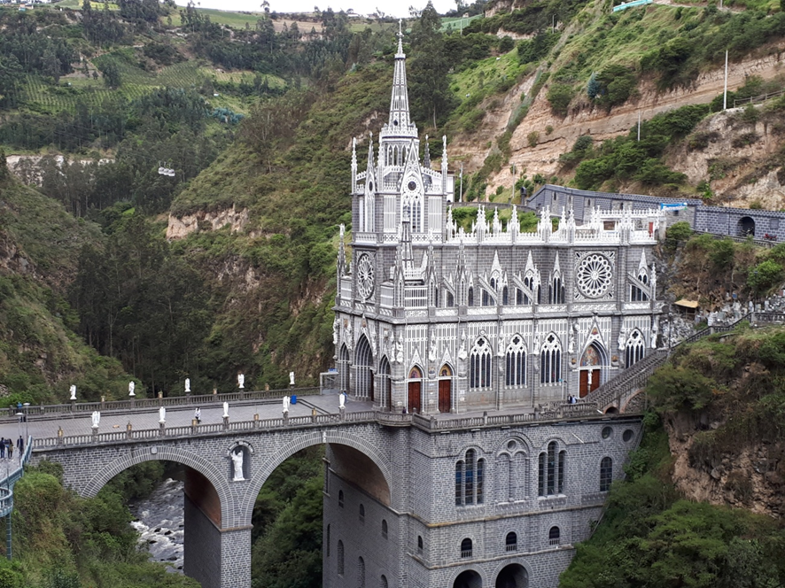 Fala pessoal, Vou deixar aqui um relato de uma viagem que eu fiz ao Equador em 2019, com uma passadinha na Colômbia. Pra não virar um textão que ninguém lê até o fim 🤣, vou postar alguns dias. Ah, e quem quiser conferir o relato completo (e várias outras aventuras), deixei meu livro/ebook Destino Vulcões totalmente grátis por um tempo no amazon.com.br (link: https://a.co/d/agKaeNM). Instagram: www.instagram.com/destinovulcoes Youtube: www.youtube.com/@destinovulcoes Resumo do Roteiro, Equador Figura V‑34: Roteiro Equador e Colômbia O roteiro escolhido foi: Dia 1 -> São Paulo –> Quito Dia 2 -> Mitad del Mundo Dia 3 -> Santuário Las Lajas Dia 4 -> Quito (obs: vou postar até aqui....) Dia 5 -> Cotopaxi Dia 6 -> Laguna Quilotoa Dia 7 -> Baños Dia 8 -> Baños Dia 9 -> Galápagos (Ilha San Cristobal) Dia 10 -> Tour 360 Dia 11 -> Ilha Santa Cruz Dia 12 -> Tour Bartolomé Dia 13 -> Ilha Santa Cruz –> Quito -> SP Relato dia a dia, Equador e Colômbia Dia 1 -> São Paulo –> Quito Assim como aconteceu na ida viagem para o Chile, eu já estava com as minhas férias inteiras programadas, passagens aéreas compradas, hotéis reservados...., até que, um mês antes da viagem, começaram uns mega protestos no Equador! Os protestos ocorreram porque o presidente Lenin Moreno pegou um empréstimo com o FMI e implantou medidas de austeridade, especialmente aumentando preço da gasolina, alegando que esta seria uma das condições impostas pelo FMI. O Equador é um país exportador de petróleo e, tradicionalmente, pratica preços abaixo do valor internacional de mercado para o mercado interno. O aumento dos combustíveis enfureceu taxistas, caminhoneiros e motoristas de ônibus, que iniciaram os protestos. Aí foi aquela história.... Os protestos, que começaram não tão grandes, logo ganharam a aderência de estudantes, grupos indígenas e sindicatos, e as manifestações foram escalando. Bloqueio das principais estradas, confronto com exército e polícia, toque de recolher, mortes.... Fiquei bastante preocupado, mas ainda bem que, depois que o presidente revogou o aumento da gasolina, as coisas acalmaram um pouco, umas duas semanas antes da minha ida (novembro de 2019). Chegar até o Santuário de Las Lajas, na Colômbia, era a parte mais cansativa, achei melhor começar a viagem por lá. Pegaria um ônibus até a fronteira da Colômbia no Terminal Carcelén, ao norte de Quito, relativamente perto da Mitad del Mundo, mas longe do centro histórico, que fica na zona sul. Como meu voo chegava quase meia-noite, decidi conhecer Mitad Del Mundo pela manhã e seguir para a Colômbia à tarde. Fiquei em um hotelzinho a duas quadras da Mitad del Mundo, o mais barato possível. Era bem simples, mas o banheiro era zoado... Minha esposa ia me matar se tivesse junto, mas eu até que achei bacaninha 🤣. Enfim, deu para o gasto e, no dia seguinte, era hora de conhecer o meio do mundo! Dia 2 -> Mitad del Mundo Meu primeiro passeio era na Ciudad Mitad Del Mundo, a 26 km do centro de Quito. Mitad del Mundo fica no ponto onde se acreditava que a Linha do Equador atravessava o país e foi construído um monumento de 30 metros que hoje abriga algumas exposições. No século XVIII, houve um debate significativo na comunidade científica sobre o formato da Terra e o achatamento nos polos. Debatia-se se a circunferência da Terra era maior em torno do Equador ou em torno dos polos. Louis XV, o rei da França e da Academia Francesa de Ciências, enviou duas expedições para determinar a resposta: um foi enviado para Lapônia, perto do Círculo Polar Ártico, sob liderança do sueco Anders Celsius, o mesmo que foi homenageado com a unidade de temperatura em seu nome, e outra para o Equador. A missão do Equador começou em 1736 com Bouguer, La Condamine, Godin e seus colegas, que mediram arcos de curvatura da Terra, das planícies perto de Quito para o sul da cidade de Cuenca. Estas medidas permitiram a primeira determinação precisa do tamanho da Terra, o que levou ao estabelecimento do sistema internacional métrico de medição. A missão geodésica francesa foi uma das primeiras missões geodésicas realizadas sob os princípios científicos modernos, e a primeira grande expedição científica internacional. E por que escolheram o Equador? Como era colônia espanhola, era considerada mais acessível e segura do que os outros países que cruzam o Equador, principalmente os africanos. Cheguei em Mitad del Mundo bem cedo e, em frente à entrada, impossível não notar a arquitetura do prédio que foi construído para ser a sede da Unasul, muito bonito. Figura V‑35: Sede da Unasul Ao lado do prédio da Unasul, está a bilheteria e a entrada para o parque Ciudad Mitad del Mundo. Depois de uma curta caminhada pela via principal, chamada a avenida dos Geodésicos, chega-se à praça central com o Monumento a la Mitad del Mundo. Vale a pena dar uma volta no monumento, é bem bonito, com algumas belas montanhas de fundo. Não poderia faltar, é claro, a foto clássica sobre a Linha do Equador. Figura V‑36: Avenida dos Geodésicos Figura V‑37: Foto clássica na Linha do Equador E depois de duas viagens frustradas tentando usar o drone novo, no Equador era bem tranquilo usar o drone! Só em Galápagos que é proibido, mas não vão confiscar o seu drone no aeroporto, retê-lo, etc. Figura V‑38: Monumento a la Mitad del Mundo Salvei dois vídeos da Mitad del Mundo no no canal do livro (youtube.com/@destinovulcoes), Cap V‑8 e Cap V‑9. O Monumento é a principal atração da Mitad Del Mundo, vale muito a pena subir lá, ver as exposições e as belas vistas das montanhas ao redor. Normalmente, você sobe de elevador e desce pelas escadas, e em cada andar tem várias exposições, como um museu. Essas exposições falam sobre o Equador, suas regiões geográficas, a população original e sobre os geodésicos. Há também uma seção dedicada à ciência, magnetismo e curiosidades sobre a linha 