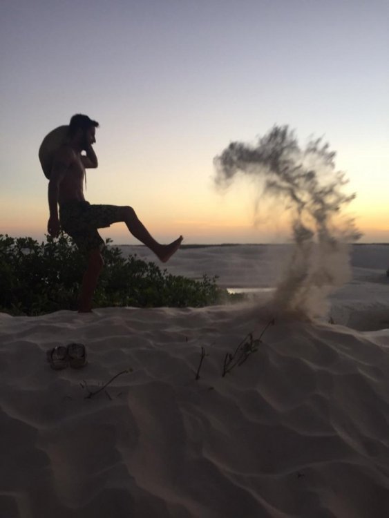 E aí Mochileiros? Tudo bem? Espero que sim!! Bom, vim contribuir com o relato da minha trip pelos Lençóis Maranhenses e por São Luis, já que tive uma cerca dificuldade de encontrar informações atualizadas e com valores. E toda a ajuda que tive foi desse Fórum, e portanto gostaria de devolver a gratidão narrando como foi minha trip, espero que gostem, pois é a primeira vez que posto relatos aqui. Então vamos lá. Consegui uma passagem em promoção, de São Paulo para São Luis, por R$394,00 (ida + volta + as taxas). Sai de Londrina/PR para São Paulo de ônibus leito diurno que tbm consegui em promoção por R$99,00 (aproveitei e já comprei a volta tbm). Dia 14/09 – quinta feira - São Luis Cheguei em São Luis por volta do meio dia e fui direto para a casa da minha host pelo CouchSurfing, aproveitamos para conversar, e aguardamos sua companheira chegar e almoçamos juntas. À noitinha fomos conhecer o famoso reggae do Sr. Nelson (R$20,00 de entrada), fiquei impressionada de ver o pessoal dançando reggae agarradinho, foi muuuito legal!! E para quem é do Sul e nunca viu esse tipo de reggae, eu super recomendo. Dia 15/09 – sexta feira - São Luis Dormimos até tarde, e fomos almoçar na praia do Calhao, praia linda com AGUA QUENTE e que estava deserta, fiquei encantada pq foi a primeira vez que entrei num mar que a água não estava trincando de gelada (como normalmente é aqui no Sul), comemos o famoso arroz de cucha, e muitas outras especiarias como o sururu, e tava tudo fantástico. Almoçamos no quiosque do Gaúcho, almoçamos em 4 pessoas, e a conta deu R$50,00 pra cada com as bebidas. Achei que super valeu a pena (foto do cardápio pra vcs terem idéia do valor). No fim do dia fomos no centro histórico (Reviver), onde vimos uma apresentação de Tambor de Crioula, achei muito emocionante. Comemos beiju na feirinha e comprei o doce de espécie (um docinho de coco delicia), tem muuuuuuita coisa pra ver nessa feirinha. Muita mesmo!! Antecipamos nossa ida para Barreirinhas para fazer o trekking, pq havíamos combinado com o guia começar o trekking no domingo (17/09), MAS NÃO EXISTE VAN PARA BARREIRINHAS NO DOMINGO às 4h00, apenas às 8h00 (daí perderia o passeio de barco). Fiquem atentos. Tive uma dor de cabeça danada por causa disso. 16/09 - sábado - Barreirinhas Para que não corresse o risco de perder o trekking, tive que sair de São Luis um dia antes, sendo assim fui de São Luis para Barreirinhas de van que passou para nos pegar as 4h00 na casa da Host, e custou R$60,00, fui com o Sr. Jorge (98) 9969-4544 (super recomendo), chegamos em Barreirinhas por volta das 8h00, são cerca de 250 km. Como eu não tinha me programado para dormir em Barreirinhas, a van me deixou no centrinho da cidade e aí fui procurar Hostel, resolvi ficar no Hostel Casa do Professor, simples e aconchegante (achei pelo booking). Paguei 35,00 (quarto compartilhado misto c/ café da manhã) + 20,00 (da chave que foi devolvido qdo entreguei a chave). Gostei bastante do Hostel, dos hospedes, funcionários e principalmente do VAGALUME, que é o cachorro funcionário do mês do Hostel, e uma das regras da casa é FAZER CARINHO NO CACHORRO. À tarde fui andar e conhecer a cidade, e encontrei com meu guia, o Joel, ficamos conversando na beira do rio (que da pra nadar tranquilamente) e tem uma duna de areia, onde assistimos o por do sol, bem legal. Optei por não fazer nenhum passeio (tem um passeio famoso saindo de Barreirinhas pra conhecer a Lagoa Azul e Lagoa Bonita), já que caminharíamos bastante nos próximos dias, optei por descansar, e o Joel me informou que as lagoas do trekking eram mais bonitas que essas outras lagoas. Em Barreirinhas comemos Jussara (açaí) que não tem absolutamente nada a ver com o nosso Açaí no paraná, aqui eu acho que tem gosto de terra, mas o de lá é simplesmente sensacional, peguei um acaí completo por R$12,00 (veio uma tigela com açaí, mais leite condensado, mais granola, mais alguma outra coisa q não lembro, tudo delicia). À noite jantei uma pizza grande por aproximadamente 30,00 (uma delicia, com uma massa que lembrou rap10 de tão fininha e crocante). 17/09 – domingo – DIA 1 - TREKKING com Passeio de Barco. A van passou para me pegar no Hostel às 8h00, e nos levou até o barco onde iniciaria o passeio, o barco custou R$60,00, mas quem fez a minha reserva no barco foi o próprio Guia Joel, saímos de barreirinha pelo Rio Preguiça, o guia/piloto do barco foi sensacional (acho que ele chama Osmar), nos deu uma aula de biologia e história. Passamos pelo manguezal, onde estão as maiores arvores de mangue do mundo (foto). Paramos em Vassouras, onde tem uns macaquinhos lindos, que comem frutas (uva, manga, banana, no quiosque vendem frutas pra dar pros macacos, mas vc tbm pode levar, eu peguei a frutas q eles tinham deixado cair no chão kkkkk), e tbm vimos as hélices de energia eolítica. (não sei o nome correto) A lagoa que tem em Vassouras, tava meio seca, pq como choveu muito no inverno, elas encheram tanto que algumas sangraram pro mar. O que é incrível, é que nessas lagoas, existem peixes, que ninguém sabe explicar como eles foram parar lá. Almoçamos em Cabure (tem alguns restaurantes), uma faixa de areia que separa o rio Preguiça do Mar. Coisa de Filme. Almocei uma casquinha de siri por R$15,00 (lembra da pizza da noite anterior... então eu levei (mochileiro é mochileiro kkkk) e comi um pouco antes de chegar em Cabure, então tava sem fome) E também dá pra fazer passeio de quadriciclo. Depois fomos para Mandacaru, uma pequena vila de pescadores, onde está localizado o Farol da Preguiça. O farol possui 160 degraus e bastante visitado pelos que seguem passeio pelo rio Preguiças até Caburé, do alto do farol o visitante tem possibilidade de ver uma das mais belas vistas de Caburé, Mandacaru e Atins. Dá pra ver o rio, a faixa de areia (cabure) e o mar. E seguimos para Atins, onde o barco nos deixou, e onde iniciaríamos 
