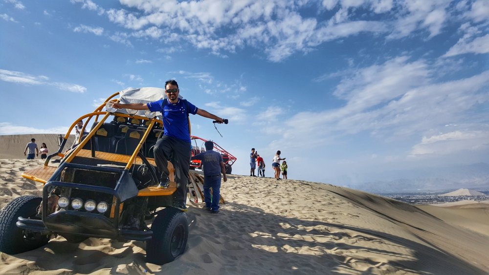 Pois é gente, resolvi continuar o relato do mochilão pelo Peru. Lima, 11 de outubro Acordei cedo novamente. Fiquei deitado e cochilei até às 06:30h. Aproveitei para apagar algumas fotos ruins e terminar de carregar as baterias. Desci para o café e ele estava bem fraco hoje; só pão, café com leite e uma fatia fina e pequena de queijo e presunto. Como lembraram que não como pão, ganhei um ovo mexido, mas me atrasou a saída. Saí às 8:25h em direção ao terminal do Metropolitano Ricardo Palma, em Miraflores, chegando às 08:35h. Carreguei o cartão com 2,50 soles e desci para o embarque. Logo chegou o primeiro ônibus, mas estava totalmente lotado no terminal C. Fui para o outro que não tinha tanta fila e às 08:46h chegou o B, semi lotado. Eu com 2 mochilas pensei que não ia dar, mas o desespero é tão grande que empurrei e consegui no limite (nada como ter experiência do rush de Sampa... rsrsrs). Chegamos à estação Javier Prado às 08:55h e parti caminhando ao terminal da Cruz del Sur, chegando às 09:05h. No Peru, especialmente em Lima, não existem estações rodoviárias. As empresas criam as suas áreas de embarque, geralmente nas maiores garagens. Nesta da Cruz del Sur achei boa a estrutura... Banheiros limpos no piso superior... e com papel higiênico! Mas já dou a dica que é sempre bom levar um sobressalente consigo, para evitar perrengues pelo caminho. Despachei a bagagem e fiquei tirando fotos, conversando com algumas pessoas que acharam curiosos os equipamentos fotográficos que estava levando. Isso que é legal em um mochilão, a gente vai interagindo e exercitando a comunicação. O ônibus chegou e foi feita uma revista na bagagem e passado o detector de metais. Além da revista, depois de entrarmos no ônibus são capturadas imagens de todos os passageiros para fins de segurança. Embarquei no assento 44 e fiquei surpreso com a qualidade do ônibus. Era bem confortável, com bancos em couro, internet e tela multimídia, além do atendimento à bordo. Sim, tem um atendente à bordo que serve bebidas e alguns snacks durante a viagem (dependendo da duração, é claro). As passagens de ônibus desta aventura pelo Peru comprei antecipadamente pelo site da Cruz del Sur e consegui descontos muito bons, da ordem de até 60%!!! O único porém disso é que não se pode fazer nenhuma alteração. Por isso, o planejamento é essencial! Se eu faria essas compras antecipadas novamente? Olha, de alguns trechos sim, com certeza, mas não de toda a viagem como fiz, pois acaba engessando muito e, em caso de algum imprevisto, perdemos a passagem. Saímos com atraso de quase 15 minutos. Bom destacar que o atendente de bordo cobra o cinto de segurança de cada passageiro e fala sobre os procedimentos de emergência quanto às portas, janelas e escotilhas. Por volta das 12:40h iniciou o serviço de bordo, com lanche no qual consistia em um pão doce com presunto, um pedacinho de bolo bem doce e, para beber, pedi uma Inka Cola... Sim, a icônica bebida mais consumida no Peru! Achei muito doce e sem graça... Gosto é gosto, rsrsrs Assisti a dois filmes e joguei um pouco de Angry Birds durante a viagem. Aproveitei também para carregar os meus equipamentos usando a porta USB presente no painel. Viagem muito confortável! Chegamos à Ica por volta das 15h e a visão Da cidade não é muito agradável. Muita sujeira e pobreza. Infelizmente, essa é a realidade peruana... O fato curioso é que as casas mais simples não possuem telhado e sim uma fina esteira de palha como cobertura. E como fazem na chuva, deve estar se perguntando... Pois é, eles também não sabem responder, porque quase nunca chove por lá! Do terminal Cruz del Sur até o hostel seriam aproximadamente 2km, segundo as indicações do Google Maps. E sob um sol escaldante e duas mochilas pesadas lá fui eu pelas ruas de Ica! Táxi é para os fracos! 😅 O bom é que, por ser tudo novidade, nem senti muito o esforço. Fui observando o movimento pelo caminho, marquei possíveis lugares para comer e mercados mais próximos. O hostel que escolhi foi o Ica Adventures II, que reservei pelo Booking mas deixei para fazer o pagamento presencial. Estrutura muito boa, com lockers, bons beliches e vários ambientes. O valor era de 14,50 dólares e resolvi pagar em soles, que deu 47,50 (em dólares sairia perdendo pela conversão pouco favorável proposta). Conversando sobre os passeios na região achei tudo muito caro. Por isso é importante ter feito uma pesquisa prévia antes da viagem. O passeio das dunas de Huacachina foi oferecido por 60 soles e o para Ilhas Balestras por 110 soles. Resolvi não aceitar e fui me acomodar. Os dormitórios eram mistos e já me posicionei na parte superior de um beliche que estava perto da porta de correr da varanda (mais ventilada) . No andar de baixo estava um canadense chamado Vicent e conversamos um pouco sobre viagens e também fotografia, pois vi que tinha equipamentos muito bons também. Para não perder muito tempo, tratei de ajeitar as coisas com carinho (mentira, soquei tudo no locker como deu), coloquei uma bermuda e parti em direção à Plaza de armas para explorar os arredores. Pelo caminho, vi um monte de tuctucs (aquele misto de moto com cabine típicos da Índia) em frente à um Shopping e resolvi perguntar o preço. No Peru tudo se deve barganhar, chega até a ser um costume deles mesmo, tipo dos muçulmanos no Egito ou Turquia. Pois bem, tinha uns trocados no bolso e joguei o preço lá embaixo... Se colasse, bem... O primeiro me cobrou 7 soles para Huacachina, que ficava a uns 8 Km de distância. Pechinchei por 3, ele baixou para 5 mas não aceitei. Andei mais um pouco e falei com um que estava no trânsito se fazia por 3 e ele disse 3,50. Aí fechei e fui. Tá aí a minha cara... Um misto de conquista por ter conseguido um transporte barato com a tensão do malabarismo do meu motorista, equilibrando o celular enquanto dirigia no trânsito caótico. Ainda bem que nã