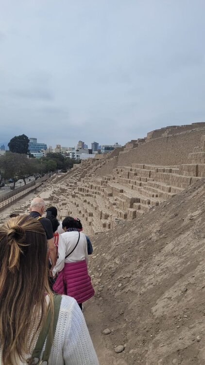 Durante o planejamento da viagem ao Peru, fui fazendo o levantamento das atrações mais interessantes nas proximidades dos lugares por onde iria passar e uma reportagem no google chamou muito a atenção, a respeito da civilização mais antiga das Américas, no vale do Supe, região central do País. Com uma idade aproximada de mais de 5.000 anos de existência, e um sítio arqueológico imenso e cheio de pirâmides gigantescas, não poderia deixar de conhecer. Encontrei o site do Ministério da Cultura peruano e vi que eles promoviam um passeio saindo de Lima, com almoço incluso e visita aos sítios arqueológicos de Vichama e Caral. O passeio custaria $100 Nuevos Soles, atualmente $150: http://www.zonacaral.gob.pe/viajes-educativos-2/index.html Fiz a minha inscrição mas, na época (2016), teria que fazer um depósito em Nuevos Soles. Aí ficou complicado, pois o envio de valores do exterior é sempre convertido em dólares. Mandei um e-mail informando a situação e fui muito bem atendido, com a resposta sendo de que eles aguardariam a minha chegada ao país para que eu pudesse fazer o depósito. Aí tudo tranquilo, pensei... Chegaria na sexta-feira à noite e logo no sábado passaria no banco, que abrem normalmente nesse dia. Porém, para a minha surpresa, quando fui ao banco... Estava fechado! Era feriado naquele sábado... Já chateado e pensando que não faria mais o passeio, vi uma plaquinha do BCP (o banco em questão) em uma mercearia. Perguntei se era possível fazer o depósito e sim! Consegui, peguei o ticket e agora era torcer para que o meu nome estivesse confirmado na manhã seguinte. 09/10/2016 - É, Madruguei no BRT… Saí do Hostel ainda de madrugada e sem o café da manhã e caminhei poucas quadras até a estação BRT de Ricardo Palma. Usei o cartão que ganhei no dia anterior e fiz uma recarga de de créditos. O terminal é bem fácil de usar e auto-explicativo. Terminal praticamente vazio, pegaria a mesma linha de ontem, durante o passeio com o free walking tour, mas, desta vez, o ônibus tinha pouca gente… também era domingo e de madrugada… Desci algumas estações mais a frente, na Javier Prado. O BRT aqui de Lima é muito funcional e bem sinalizado e a gente consegue se achar bem fácil por ele. A região da Javier Prado é parte do Centro Financeiro de Lima, como se fosse a avenida Paulista de São Paulo. Como sempre, fui navegando pelo Google Maps e não tive dificuldade nenhuma até então. Passei pelo terminal da Cruz Del Sur…No Peru não tem rodoviárias como no Brasil. Os ônibus saem de terminais das próprias empresas, e a Cruz del Sur tem 2 em Lima, por isso tem que ter atenção na hora de comprar a passagem. Foi uma caminhada de quase 3 quilômetros mas em pouco tempo cheguei ao prédio do Ministério da Cultura, de onde sairia o ônibus. Como cheguei cedo, aproveitei para tirar algumas fotos do lugar, cujo prédio é muito belo e imponente. Um pouco antes das 7 horas, estacionou um microônibus e um rapaz desceu com uma prancheta na mão. Tratei logo de ir perguntar e conferir se meu nome estava na relação... E sim! Entreguei o comprovante de pagamento e já me posicionei num assento na parte da frente e à direita do ônibus, para ir registrando todos os detalhes do trajeito. Iniciamos o passeio com andando pelas avenidas de Lima, que tinha o mesmo céu nublado de sempre neste dia. O que deu para perceber de diferente é a quantidade de lixo pelas ruas… Infelizmente, bem sujo por onde fomos passando. As vias expressas são muito boas… aliás, no Peru o asfalto das rodovias são muito bons mesmo! O guia do ônibus foi explicando como seriam as visitas. Faríamos uma parada de 30 minutos para o café da manhã e depois visitaríamos Vichama, Végueta e finalmente Caral, onde almoçaríamos. e quanto mais a gente se afasta da capital, piores vão ficando as condições urbanas… É muito seco por lá! Depois de percorrer algumas horas e ter parado para o café da manhã (não incluso), chegamos à primeira atração do dia: Vichama! Vichama é um sítio arqueológico muito recente. Foi descoberto em 2007 e fazia parte da Civilização de Caral. Fomos recebidos por um guia local que nos explicou a história da civilização e percorremos as construções, conhecendo os detalhes até agora descobertos sobre essa civilização pesqueira ainda tão pouco estudada. São mais de 25 hectares ainda não totalmente estudados… e o pior, ameaçados pelo avanço das casas, que estavam retirando materiais para a construção de outras moradias…. Imagina quanta coisa pode ter se perdido até então… Percorremos todo o sítio com o passeio guiado por um empolgado guia, de nome Kenji (nome do meu filho! 😜) que nos foi explicando cada detalhe e a história do lugar. Realmente, o Peru é um lugar maravilhoso para quem aprecia história e cultura... Fiz muitas fotos do lugar e pude aprender bastante sobre uma civilização incrível, mas totalmente desconhecida pela grande maioria, da qual me incluía, até então. Quando se fala em Peru, infelizmente resumem tudo à Civilização Inca e Machu Picchu... talvez até alguns lembrem de Nasca... Só estando aqui para conhecer o quão grande e diverso foi esse lugar antes da chegada dos saqueadores espanhóis! Passeio concluído, voltamos ao ônibus e deslocamos para ums pequena cidade, Végeta, onde visitaríamos um museu contendo mais informações sobre a civilização de Caral. Museu pequeno, mas com um rico acervo e excelente organização. Fomos guiados por Jane, que também com a mesma empolgação, nos contou mais a respeito da história e descobertas feitas na região. A população tem aprendido a valorizar muito a sua própria origem! Pé na estrada novamente e já estava com muita fome... Fomos percorrendo a região mais para o interior e pude perceber que mesmo com toda as dificuldades de uma terra árida e praticamente sem perspectivas, a população local persevera e trabalha o solo,