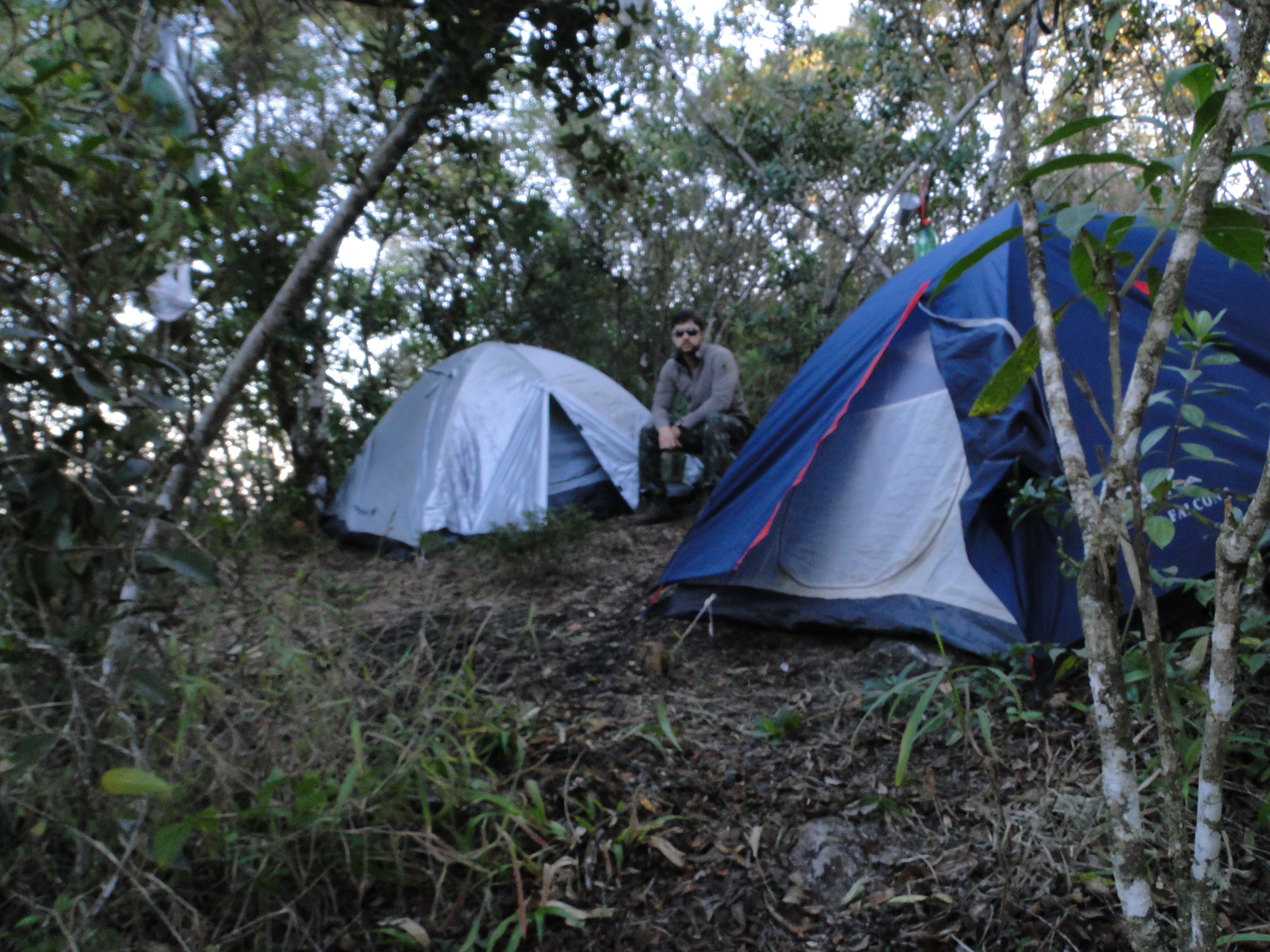 Relato publicado previamente no meu blog Mochila&Capacete Sou cristão, porém não tenho religião, acredito em uma filosofia própria de vida, na qual me baseio em dogmas de outras religiões. Não frequento igrejas, templos ou similares, porém tal qual Anatoli Boukreev, montanhista cazaque que desapareceu em 1997 no monte Annapurna, tenho como minha igreja as montanhas e natureza em geral. A célebre frase do montanhista, com a qual abro esse relato, expressa bem o que eu e meus amigos que me acompanharam nessa travessia sentimos. A travessia Lapinha x Tabuleiro é um clássico circuito de trekking, que durante 3 dias corta a Serra do Espinhaço em Minas Gerais, no trecho entre o distrito de Lapinha da Serra, pertencente a Santana do Riacho e o distrito de Tabuleiro, pertencente a Conceição do Mato Dentro. Planejava há muito tempo fazer essa travessia e agora, no feriado de 1 de maio de 2012, a travessia se concretizou. Sai de São Paulo no dia 27 de abril, acompanhado de meu primo que iria debutar no mundo das trilhas, chegamos no aeroporto de Confins – MG as 22h 30min e ali aguardamos o “resgate” da van com o pessoal de BH e do Rio de Janeiro que iria montar nossa comitiva em direção ao nosso “templo”. 28.04.2012 – Dia 1 – Lapinha da Serra – Casa D. Ana Benta Chegamos no distrito de Lapinha da Serra por volta das 4 horas da manhã, tiramos algumas fotos e as 5h 45min começamos a trilha, que se inicia em uma estrada a esquerda da igreja do vilarejo em direção ao pico da Lapinha (1686m), após vinte minutos de caminhada sendo acompanhados pelo sol que timidamente acordava, somos brindados pela vista de uma bela cachoeira que corre pelo paredão de pedra, com água escura, conhecida por todos como “água de coca-cola”, após a cachoeira a trilha continua, sempre íngreme, em direção ao abrigo de montanha, que fica atrás do pico da Lapinha, já no abrigo paramos para repor nossas energias por alguns minutos e abastecer nosso reservatório de água. Logo após o abrigo a subida até o pico da Lapinha não se delonga por muito tempo, demandando um pouco de atenção por conta das inúmeras pedras, exigindo uns trechos de escalaminhada. Atingimos o cume por volta das 9 da manhã e ali ficamos um tempo apreciando a bela paisagem. Após descermos do pico da Lapinha, rumamos em direção ao pico do Breu, caminhando pela crista das montanhas por umas horas chegando a base do pico, onde descansamos e tirei um merecido cochilo, pois já estava acordado a mais de 24 horas, decidimos não subir até o cume e o circundamos em direção ao riacho e com o intuito de voltarmos a trilha principal que leva a casa da Dona Ana Benta, nosso primeiro ponto de acampamento. A descida do Breu foi muito tortuosa, com uma vegetação de touceiras, sem trilha nítida demarcada, o que dificultava o deslocamento e a navegação, pois nosso GPS não seguia por esse caminho, após muito custo chegamos ao riacho e, após atravessá-lo, seguimos pelo pasto até a trilha principal, e de lá até a casa da D. Ana Benta seria fácil, se o GPS não tivesse apontado a localização errada desse ponto (cuidado com alguns tracklogs na internet eles indicam o fim do primeiro dia em lugar errado), para seguir até a casa da dona Benta é fácil, basta seguir a estrada branca de pó de pedra até uma bifurcação, já em terra vermelha, e pegar o caminho da direita. Chegamos no nosso destino após 10 horas de caminhada e fomos muito bem recepcionado pela D. Ana Benta, que nos preparou um delicioso jantar no fogão a lenha, armamos nossas barracas, tomamos um banho quente e dormimos exaustos, esperando iniciar-se o próximo dia. 29.04.2012 – Dia 2 – Casa D. Ana Benta – Casa Seu José – Tabuleiro por cima Levantamos junto com o sol e antes das 8 da manhã já estávamos andando novamente, a trilha até a Casa do Seu José, segundo ponto de acampamento, se inicia do alto da colina, em uma estrada a direita do curral que ali se encontra, a trilha é bem demarcada, contornando as montanhas com uma subida até que suave que leva em direção da porteira que adentra no parque. Após 4 horas chegamos a casa do Seu José e da Dona Maria (como alguns mapas intitulam o local). Seu José, no alto de seus 70 anos, é uma pessoa cativante, receptivo demais e que adora uma boa conversa, conversei por um bom tempo com ele no final desse dia, conhecê-lo é uma atração a mais da travessia, proporcionando um pouco de conforto e descontração aos caminhantes. Como chegamos cedo, por volta de meio-dia, à casa de Seu José, armamos acampamento e decidimos atacar a cachoeira do Tabuleiro por cima, que é a 3a mais alta do Brasil, com 273 metros de queda livre. O ataque até a cachoeira se dá por uma trilha a direita da casa de seu José, uma trilha longa, porém caminhando sem o peso das cargueiras levamos cerca de 3 horas até lá. O local é fantástico, o rio corre por entre cânions de pedra, com inúmeras quedas d’água e piscinões calmos, um bom aperitivo para a fantástica vista do dia seguinte. Voltamos ao acampamento antes do anoitecer e, após um banho quente, fomos agraciados com o delicioso jantar preparado no fogão a lenha pelo Seu Jose e D. Maria, regado a um boa cachacinha de alambique. Após o jantar, como já disse acima, passei um bom tempo conversando com nosso anfitrião, me dirigindo depois para área de acampamento onde meus amigos se reuniam ao redor da fogueira apreciando a “marvada” e contando muitos causos. 30.04.2012 – Dia 3 –Casa Seu José – Cachoeira Tabuleiro No último dia da travessia tomamos um bom café na casa do Seu José e partimos morro abaixo em direção a imponente cachoeira, o sol estava forte e nos castigou nesse dia, este trecho da trilha é muito bonito, com vista para as imponentes formações geológicas da Serra do Espinhaço. Em pouco mais de três horas chegamos ao mirante e podemos ver a majestosa Cachoeira Tabuleiro, simplesmente uma paisage