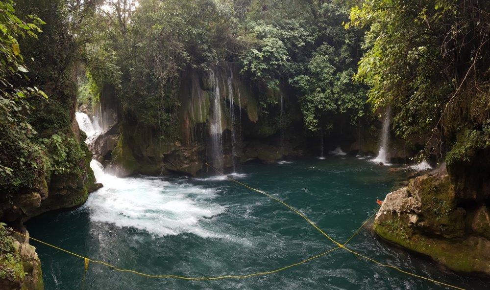 "Desconhecidas" para os não-mexicanos. Não achei quase nenhum relato sobre elas, mas vocês precisam conhecer esta maravilhosa região, a 600km da Cidade do México, que ainda está barata (se não for com agências que encontrar na internet). Viagem realizada em outubro de 2016. Huasteca Potosina é uma região de rios e cachoeiras. A principal saída para suas atrações é Ciudad Valles, em San Luis Potosi, 570km da Cidade do México, 10h de ônibus, MXN$1377 (ida e volta, viaje de madrugada). Eu tentei reservar os passeios por duas agências que encontrei na internet: Huaxteca.com. e Ruta Huaxteca 😣. A primeira nem me respondia no zap. A segunda pediu um depósito antecipado (eu estava na Cidade do México), fui até a loja de conveniência mais de uma vez e o sistema inteiro estava fora do ar, informei a agência e ela, de muita má vontade, não facilitou em nada e ainda falou que eu tinha tempo para ir outra hora fazer o tal do depósito (disseram deste jeito mesmo!). Desisti e ISSO FOI MUITO BOM, pois os preços das agências são mega caros e, em alguns casos, guia é desnecessário. A recepcionista do nosso hotel, Hotel Riviera, simpaticíssima, nos ajudou muito, ligou para guias, pediu táxi, nos auxiliou. Talvez o guia fosse parente dela e estivesse fazendo um trabalho por fora, a cidade é pequena, deve ter muito disso, não importa, foi melhor assim. Enfim, a minha dica é que não precisa fechar com agência antecipadamente. Feche os tours quando chegar lá. Às vezes nem precisa de guia, pegue um táxi e vá! Inclusive, pode ganhar muito tempo com isso. Os passeios foram: Cascadas de Tamul – precisa de guia por causa da canoa, remos, colete e o cara ajuda muito a remar. A recepcionista do hotel nos colocou em contato com ele e fomos até o ponto de encontro com táxi. O passeio consiste em remar por um pouco mais de 1h até a cachoeira, que é vista de longe (dá para chegar mais perto andando), mas muito bonita. Também passa pela “Cueva del Agua”, um poço muito gostoso dentro duma gruta. O passeio cansa (depende também de quantas pessoas estiver na canoa), mas sempre vale a pena! Paguei MXN$250 + táxi, que não lembro quanto. O taxista nos buscou e ainda levou pra Puente di Dios. Puente di Dios – precisa de colete, o qual se aluga no local por MXN$25 (algo assim), a entrada não é cara, uns MXN$100. O caminho é bem demarcado, não precisa de guia (na agência, o passeio custa MXN$850, eu teria me arrependido profundamente se tivesse acertado com ela). Chegando lá, é quase um cenote, cachoeira pra todo lado, água bem gelada e correnteza forte. Lugar maravilhoso. Deixe a correnteza te levar e passe por uma gruta e do outro lado tem mais quedas d’água! Este lugar é sensacional! Saltos de Micos – Dia seguinte... a recepcionista do hotel entrou em contato com um guia, que foi nos buscar no hotel. De lá, fomos para Micos, onde havia outro guia que nos forneceu os coletes. O tour tem este nome porque você realmente tem que descer o rio saltando as cachoeiras! A maior delas tem 9m. É o tempo inteiro na água e o guia é essencial para te indicar onde pular, aonde ir e etc. Excelente passeio, menos para idosos. Minas Viejas – impressionante a cor da água! A queda é bem alta e fizemos rapel ao lado dela. É possível chegar ao local sem guia e pagar para fazer o rapel. Para quem não quiser, é possível descer por escadas e se banhar embaixo. Lugar lindo e muito gostoso para nadar. De lá, fomos almoçar (já passava das 15h). O passeio todo com transporte, rapel, almoço saiu MXN$1.100 Quando marquei a minha viagem para Cidade do México, fui procurar cachoeiras nas proximidades e encontrei este belíssimo lugar! Estranho que nem os mexicanos com quem conversei na Cidade do México o conheciam! Parece que é pouco divulgado, mas o guia disse que está aumentando o número de turistas, principalmente vindos da parte norte do México. Merece a visita!