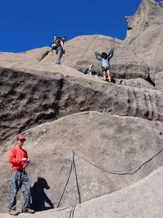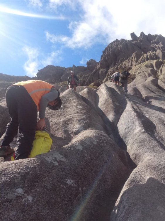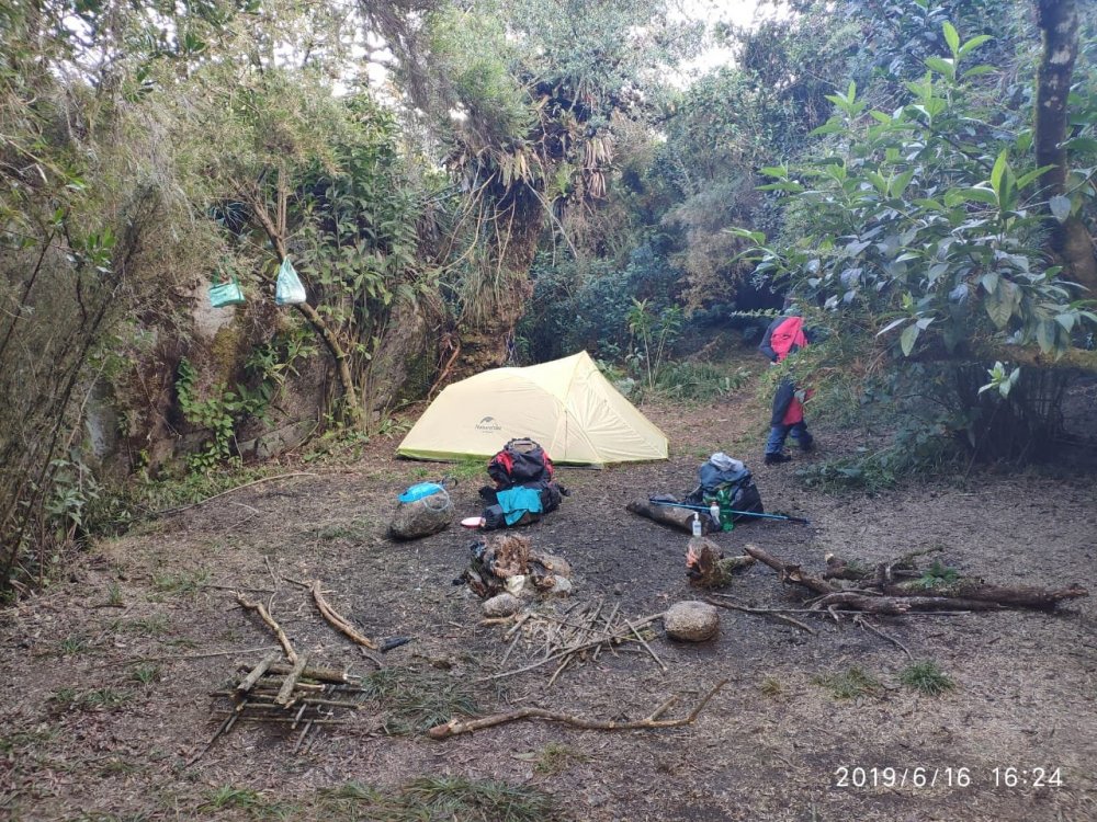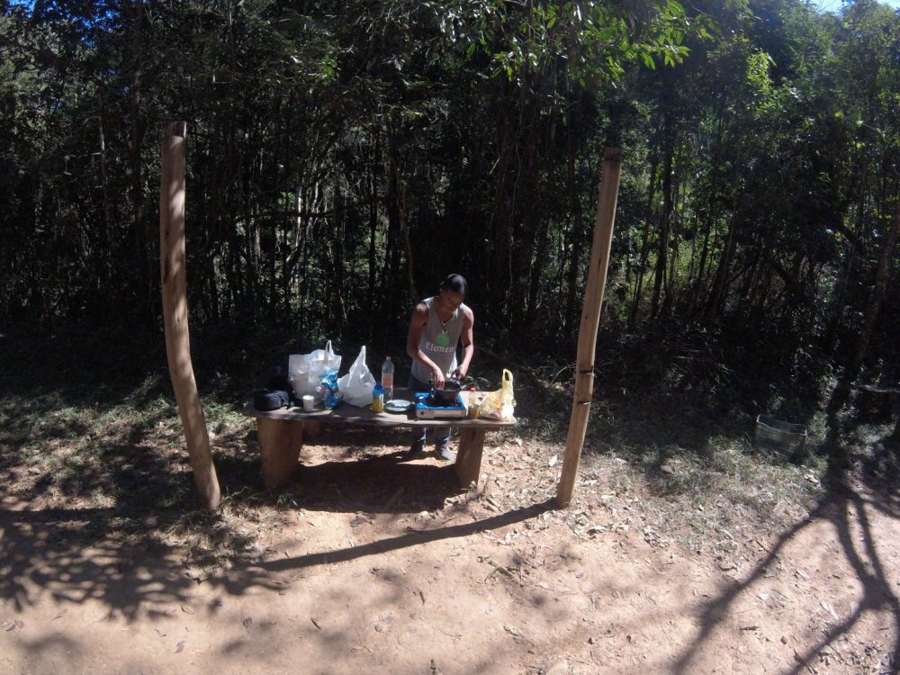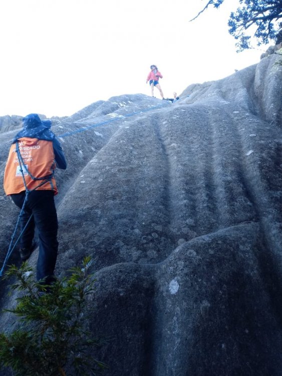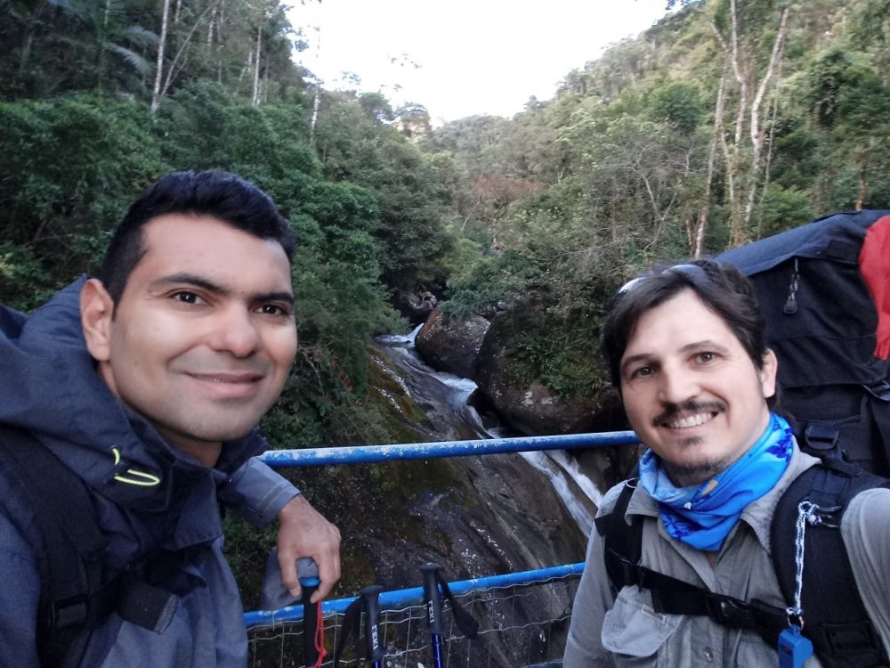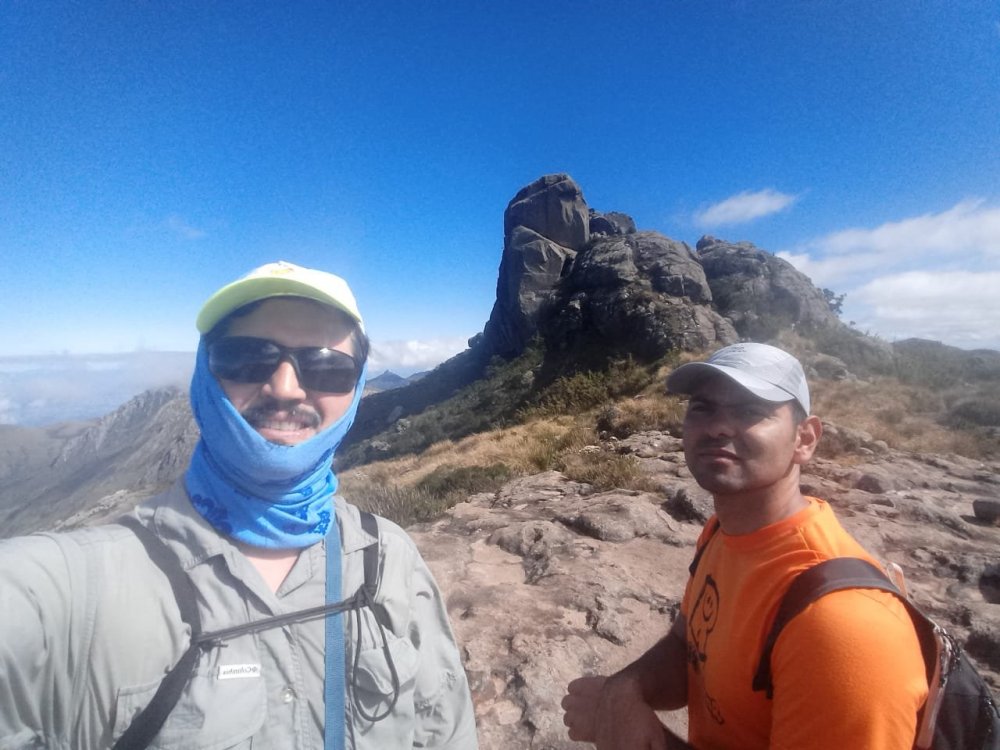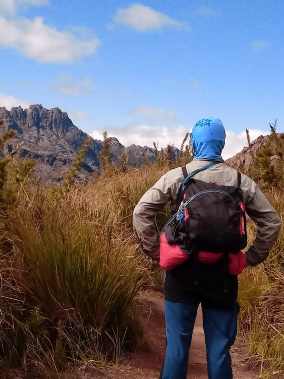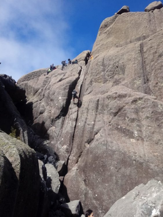 Travessia do Parque Nacional do Itatiaia - junho/2019 Foram aproximadamente 70 km m 5 dias de caminhada passando pelos seguintes pontos: Dia 1- Travessia Rui Braga subindo - Maromba (parte baixa PNI) – Abrigo Massena Dia 2- Travessia Couto Prateleiras – camping Rebouças Dia 3 – Agulhas Negras – Pedra do Altar – Camping Rebouças Dia 4 – Travessia Rancho Caído – Cachoeira do Aiuruoca – Ovos da Galinha – Pedra do Sino de Itatiaia – Rancho Caído Dia 5 – descida do Rancho caído até a cachoeira do escorrega do Maromba Nossa aventura começa na rodoviária Tiete com destino a Itatiaia. Saímos as 11h45 e por volta das 16h chegamos em Itatiaia. No caminho vim observando os contornos da serra do Itaguaré, Serra Fina e já imaginando a próxima aventura. Na rodoviária nosso anfitrião já nos esperava, passamos pela portaria do parque para o check in e pagamento de ingresso, porem já tinham fechado e falaram para que fizessemos todo o pagamento e check in no posto do Marcão. Fomos nos hospedar no quarto Gaia já dentro do PNI da parte baixa, uma casa dos anos 40 que hoje os moradores alugam os quartos para hospedagem. Um lugar muito aconchegante e bacana em total contraste com os próximos dias de trilha, uma noite bem dormida e corpo descansado. Inclusive a trilha começa ali mesmo, começamos as 7h30 e pegamos já um caminho por entre a mata passando pelas ruinas de uma imponente casa de outrora, seguindo pela rua de terra até o posto do Maromba onde chegamos as 8h e haviam nos informado que ali teria um guarda para checar a autorização da travessia Rui Braga. O homem não estava lá. Tinha um pessoal de colete amarelo do ICMBIO que estavam roçando a trilha e nos disseram para seguir adiante. Quarto Gaia Posto Maromba Começo da Ruy Braga E assim fomos, por uma trilha bem aberta no começo e recém roçada, em pouco tempo a trilha foi estreitando, mas ainda assim muito limpa, chamou a atenção alguns “guard rails” de concreto que encontramos no caminho, ali passou uma estrada antigamente, muito provavelmente para descer madeira que viraria carvão para os trens do Barão de Visconde de Mauá. Era um sigue zague de pouco aclive e fomos contornando as curvas de nível por entre a mata e passando por diversos riachos nas veredas que desciam. Ao meio dia em ponto chegamos no abrigo Macieiras, vários pinheiros europeus e araucárias o circundavam, uma casa de madeira bem antiga porem mal conservada, ainda assim se mantinha em pé, dava para imaginar que lugarzinho bucólico foi antigamente, com montanhistas e aventureiros se hospedando na casa. Ali fizemos nosso lanche do almoço e um breve descanso. As 12h45 seguimos adiante e logo mais alcançamos os campos de altitude e a primeira visão do Pico das Agulhas Negras e da serra das Prateleiras e para o outro lado do vale do Paraíba e da cidade de Resende. Abrigo Macieiras Mais um pouco de caminhada chegamos no Abrigo Massena as 14h45. Uma subida muito leve e tranquila. Imaginava que fosse mais pesada. O abrigo é imponente todo feito de pedra e muito deteriorado, sobrando somente as paredes de pedra maciça e uma parte do telhado do que deveria ser a sala principal do chalé, pois ali havia uma grande lareira em perfeitas condições. Tratamos de montar a barraca em frente e explorar a casa. Logo atrás subimos uma trilha até uma outra casa também abandonada no topo do morro que parecia ter tido uma antena pois havia uma base de ferro cortada e muito entulho de ferro em um buraco por ali. Atrás dela tinha uma linda vista do vale, da represa, da Serra do Mar e da Serra FIna. Eu havia lido em um relato aqui no mochileiros.com que tinha ainda uma terceira ruina em um morro aqui perto e por ali também seria a fonte de água próxima do Massena. Seguimos a trilha adiante e uns minutos depois achamos um fio de água que cruzava a trilha. Fomos em busca das ruinas seguindo a trilha mas não encontramos, quando resolvemos voltar vejo a ruina logo acima de um morro com uma araucária solitária visto de quem desce a Rui Braga. E para lá seguimos. Toda de pedra e tijolo maciço sem o telhado e todas as paredes em pé, havia ainda uma pia e parte do fogão a lenha. Estava aos pés das Prateleiras. Massena outras ruina com as prateleiras ao fundo Serra Fina Depois da exploração retornamos ao acampamento. Preparamos nossas coisas para jantar e com alguns galhos fizemos uma pequena fogueira na lareira. A fome apertava e fizemos a nossa janta. Com a noite veio o frio e as estrelas que brilhavam além de uma lua cheia intensa no céu. Tinha algumas nuvens, mas nada que incomodasse. Deitamos cedo. No dia seguinte acordamos as 5h a barraca estava coberta por uma fina camada de gelo, na hora de desmontar chegou a doer as mãos de frio para enrolar a lona. Café tomado e mochila pronta saímos as 6h30 subindo ainda mais um pouco até alcançar o vale do Rio Campo Belo tendo sempre as Agulhas Negras nos acompanhando, essa na realidade foi uma constante, pois a imponência deste Pico era vista de todo o parque em todas as trilhas que fizemos. Nessa altura do vale nos encontramos com talvez a continuação da estrada, isso se elas se encontrassem no passado, ali havia até alguns trechos com asfalto e diziam ser a BR mais alta do Brasil mandada construir por Getulio Vargas. Passamos pela placa que marcava o inicio/fim da Rui Braga (seriam 21km entre este ponto e o posto do Maromba) e o acesso a base das Prateleiras, logo adiante a cachoeira das Flores e enfim o camping Rebouças onde chegamos as 9h, aproveitamos e já escolhemos um bom lugar para montar nossa barraca e deixar nossas coisas. Fomos conhecer o abrigo e os arredores do camping. Abrigo Rebouças camping Rebouças E logo partimos em direção ao posto do Marcão, passamos pela nascente do Rio Campo Belo. Ali na entrada fizemos os procedimentos de check in, o pessoal do PNI falou que havia abaixado de zero a noite anterior, e também pediu para guardarmos bem a co