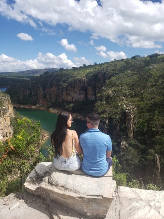 Na semana anterior à Páscoa, fui com meu namorado conhecer Capitólio e São Thomé das Letras de carro. Neste post vou contar APENAS SOBRE CAPITÓLIO. O link para São Thomé está no fim dele. Saímos do Rio de Janeiro na quinta-feira de madrugada e levamos mais ou menos 8h e meia de carro (+ paradas para abastecer e fazer xixi). Vou detalhar tudo para vocês. Saída do Rio: +- 5h da manhã Chegada em Capitólio: +- 14:30h Capitólio Em Capitólio ficamos hospedados do dia 11 a 14 de abril no Balneário do Lago Hotel, e particularmente o resort é para quem curte conforto, bem-estar e boa localização. É uma experiência de hospedagem completa e ótima opção para famílias e casais. Ele é situado em frente ao Lago de Furnas e oferece piscinas ao ar livre e cobertas (aquecidas), sauna, academia, quadras de tênis e de futebol, espaço kids, além de um Parque Aquático (Lake Parque) que é uma atração a parte! Ficamos numa Suíte Master, que era equipada com frigobar, televisão LCD (sem TV a cabo), ar condicionado, banheiro espaçoso e uma banheira de ofurô. O café da manhã oferece opções como queijos da localidade, frutas, pães, bolos, além de gostosuras como pamonha e churros. Um outro diferencial do hotel é que eles oferecem o serviço de meia pensão, com o café da manhã e jantar. Sendo ideal para quem não quer sair das instalações à noite. Aproveitamos TODOS os dias para nos deliciar com comidas tipicamente mineiras (feijão tropeiro, frango caipira, tilápia, etc). Para quem não curte o sistema, também pode desfrutar de petiscos ou refeições à la carte à noite. O bar à beira da piscina também é ideal para relaxar com petiscos, cerveja e drinks. O Parque Aquático foi o grande diferencial e conquistou meu coração! Depois de dias inteiros de trilhas e aventura, eu e o Felipe curtíamos todos os brinquedos e toboágua, além de comer churrasquinhos com cerveja para forrar a barriga e esperar o jantar. Funciona de 11h às 18h. PRIMEIRO DIA (11/04 - quinta-feira): Ir a Capitólio e não tirar uma foto no famoso Mirante dos Canyons é praticamente um pecado! Chegamos pela tarde e fomos direto para lá. O local agora é pago (R$20 por pessoa), tendo um controle de visitação e mais segurança. Como chegamos numa quinta de tarde, o local estava completamente vazio, mas aos fins de semana costuma ter fila (sim, fila) para fazer fotos e até para entrar. A trilha para chegar ao mirante é pequena e fácil, cerca de 100 metros. O visual é incrível e compensa esperar (não foi meu caso). Demoramos mais ou menos 30 minutos no local. Eles te dão uma pulseira e você pode entrar e sair durante o horário de funcionamento. Ah! A pulseira te dá acesso à dois locais (mirantes) e mais uma cachoeira (os três locais são por entradas diferentes). Saímos de lá e do outro lado da rua (literalmente) fomos visitar a Cachoeira Diquadinha (R$10 por pessoa). Pelo dia da semana e horário também estava super vazia. Há três trilhas para aproveitar essa cachoeira, dispensamos a primeira por ser o final e fomos direto para a queda, onde é mais fundo e deu pra nada e mergulhar. A primeira foto é na segunda queda, onde dá a sensação de borda infinita. Depois fomos para o hotel aproveitar o Parque Aquático! No bar do parque, comemos 4 churrasquinhos com molho e farofa e bebemos 4 cervejas de 600ml (R$54 tudo). SEGUNDO DIA (12/04 - sexta-feira): No segundo dia fechamos o famoso passeio de lancha pelos Canyons de Furnas (R$90 reais por pessoa em média, fechamos por R$80 no dinheiro). O ponto de encontro para o passeio de lancha em Capitólio se dá antes da ponte sobre o Rio Turvo. Também há opção de embarcar para o passeio de lancha no Balneário do Lago (empresa terceirizada), passeio mais longo, mas que visita os mesmos lugares (fechamos fora porque não sabíamos os valores, mas compensaria por não sairmos de carro do hotel). A primeira parada da lancha é na Cachoeira Lagoa Azul. A lancha deixa os passageiros em um bar flutuante que fica junto desse enorme e delicioso lago. A parte de cima da Lagoa Azul está dentro de uma propriedade particular, o que justifica a cobrança de uma taxa no valor de R$10 por pessoa para conhecer o local (não fomos lá). O espetáculo do passeio são as cachoeiras dos Canyons! Paramos mais ou menos uma meia hora para aproveitar as águas límpidas e o bar flutuante. Nessa parte dos Canyons param muitas lanchas particulares, o que pode acabar lotando e prejudicando um pouco a paisagem. Por outro lado, as embarcações maiores não conseguem chegar até aqui. Por ser uma sexta-feira, não peguei tumulto e deu pra fazer fotos lindas, vejam! Depois visitamos a Cachoeira Cascatinha, mas apenas para apreciação. O Vale dos Tucanos não tem cachoeira, mas sua beleza se encontra nas paredes com diversas plataformas de pedras. Paramos também num outro bar flutuante para provar o famoso Chopp Scarpas! Depois fomos para o hotel aproveitar o Parque Aquático e comemos a mesma coisa do dia anterior. TERCEIRO DIA (13/04 - sábado) TRILHA DO SOL No sábado o dia rendeu! Fizemos dois passeios em um só dia. Saímos bem cedinho, às 8:30h e fomos conhecer a Trilha do Sol. Primeiros a entrar, o local conta com um quiosque com restaurante onde está a recepção e a Pousada Trilha do Sol. O local é uma propriedade particular da pousada e o valor para percorrer a trilha é de R$40 por pessoa. Para percorrer a trilha não há necessidade do acompanhamento de um guia, mas é bom prestar atenção na explicação do monitor no receptivo, olhar bem as placas de indicação, já que a trilha não é um caminho contínuo e possui ramificações. A partir da recepção são 4 km de trilhas para visitar as 3 cachoeiras e os belos cenários entre paredes de pedra e poços de águas transparentes. Três horas são suficientes para percorrer a trilha e curtir cada cachoeira. O roteiro indicado pelo guia é visitar a Cachoeira no Limite primeiro, depo