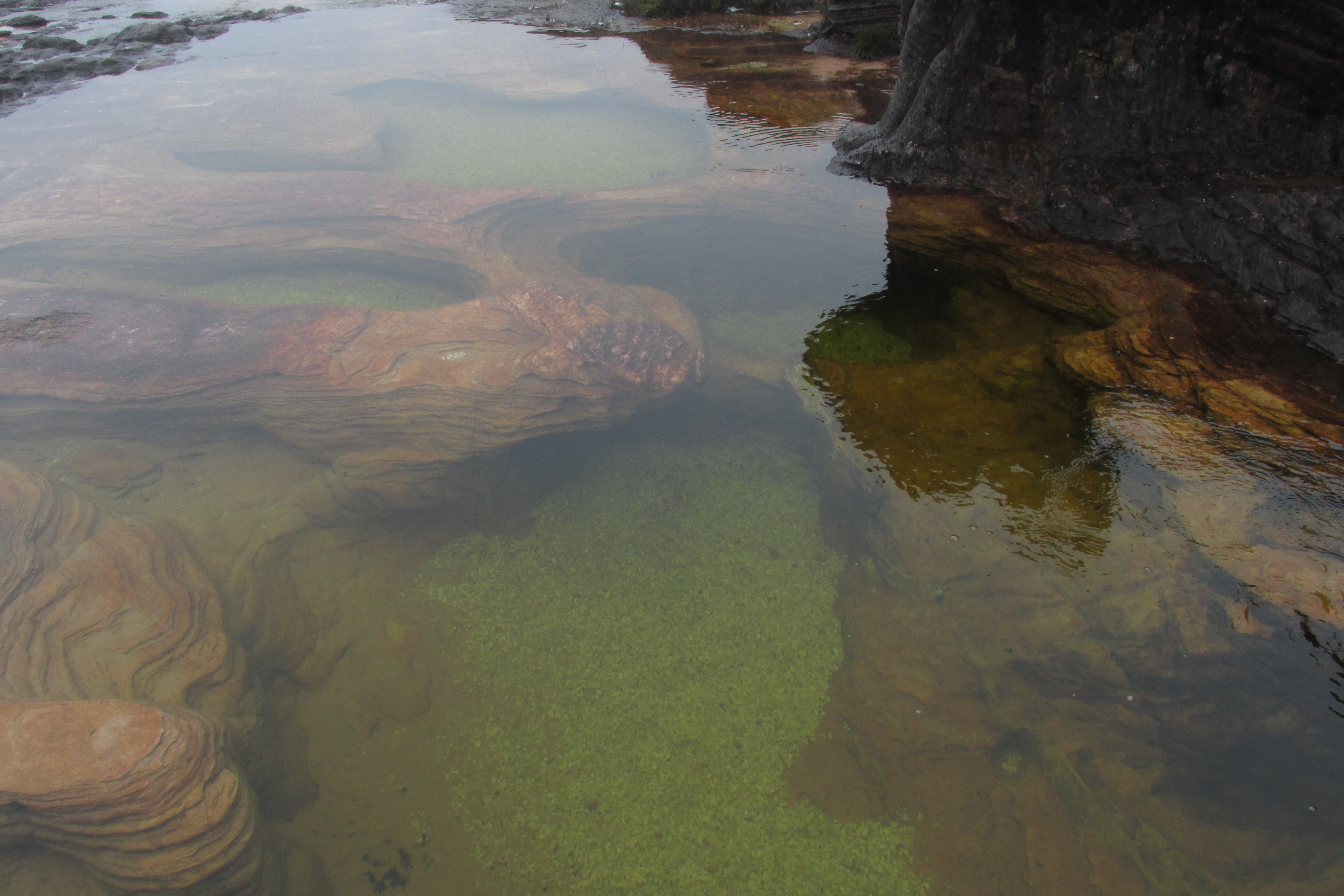 Fala galera! Enviando um relato aqui pra ver se ajuda um pouco o pessoal que quer conhecer o Monte Roraima. Vamos lá! Período: 12 a 22/02/2015 Fui um dias antes do pessoal porque a passagem estava beeem mais barata. Roteiro: 12/02/2015 - Vitória/Rio/Manaus/Boa Vista 13/02/2015 - Boa Vista/Santa Elena de Uairen 14/02/2015 - St. Elena 15/02/2015 - Dia 1 Trekking 16/02/2015 - Dia 2 Trekking 17/02/2015 - Dia 3 Trekking 18/02/2015 - Dia 4 Trekking 19/02/2015 - Dia 5 Trekking 20/02/2015 - Dia 6 Trekking 21/02/2015 - St. Elena/Boa Vista 22/02/2015 - Boa Vista/Manaus/São Paulo/Vitória Passagens aéreas Consegui uma super promoção e paguei R$ 685,00 ida e volta, com as taxas. Pacote trekking Duração: 6 dias e 5 noites Agência: Mystic Tours Incluso: Café da manhã, almoço, jantar, banheiro portátil e barracas Preço: 35.000bsF = R$ 730,00 Câmbio 1 real= 48bsF (no dia que chegamos) 1 real = 54bsF (no dia que voltamos) Documentos Identidade ou passaporte Cartão de vacinação internacional A vacina contra febre amarela tem que ser tomada pelo menos 10 dias antes da viagem. O cartão de vacinação internacional vc pega em qualquer aeroporto, com seu documento e o cartão de vacinação entregue pelo posto de saúde. DICA: Se tiver sua identidade atualizada e for numa época de muito movimento, tipo feriados prolongados, vá só com a identidade, não com passaporte. Porque com a identidade não precisa passar na Polícia Federal, só no stand da Venezuela. Já adianta muita coisa. O que levar O que faltava, comprei na Decatlon, os preços de lá são ótimos e de boa qualidade. Tem que escolher, claro. Mochila Capa de chuva p/ mochila Capa de chuva ou poncho Saco de dormir (a agência fornece, mas quis levar o meu O deles é limpinho, mas é grande, ocupa muito espaço) Lanterna cabeça Lanterna de mão Anorak Fleece Bota 2 pares de meias grossas 1 meia grossa para dormir 2 calças que não sejam pretas e que sequem rápido 2 camisas que não sejam pretas e que sequem rápido 2 camisas manga longa que não sejam pretas e que sequem rápido 1 Bermuda Biquini Toalha absorvente Luva Gorro Chapéu Chinelo Calça moletom para dormir Camisa para dormir Mochila de ataque (para viagem e para os dias que ficarei em St. Elena e no cume) Garrafa de água Repelente (Exposis Extreme, é o melhor) Protetor solar Vaselina (passar no pé pra não dar bolhas) Sabonete biodegradável Sacos para lixo Clorin Remédios para febre, enjoo, azia, dor, anti-inflamatório etc Silver tape (minha bota abriu o solado, foi o que salvou) Chocolate, Amendoim, frutas secas e outras comidinhas Hospedagem Boa Vista: Hotel Farroupilha - R$ 170,00 a diária no quarto quádruplo (R$43 por pessoa) St. Elena: (na ida) Venezuela Explorer Ecolodge - bsF 1.500 a diária no quarto duplo St. Elena: (na volta) L'auberge: bsF 4.400 a diária no quarto quádrúplo O Farroupilha é simples, mas limpinho e confortável e tem ar condicionado. O Explorer é no meio de uma fazendinha, bem lindinho, mas não muito perto do centro, não tem ar, mas tem chuveiro quente (mas é bem fresco, não precisou) O L'auberge tem ar, chuveiro quente e fica perto de tudo. Muito boa a pousada. Saí de Vitória 18:37h e fui pra saga de aeroportos...Cheguei em Boa Vista 01:40h da madrugada, pegamos um táxi até o hotel, eles geralmente cobram valor fechado, R$40,00. Reservei a diária no hotel Farroupilha sem pagar metade do valor, pagamos na hora que chegamos. Tomamos um banho bom e dormimos pq estávamos exaustos. No dia seguinte fomos pra rodoviária, que fica em frente ao hotel e descobrimos que só tinha um ônibus pra Pacaraima, que saía as 7:30h e perdemos. Fomos de taxi, pagamos R$40,00 por pessoa pra nos buscar no hotel. Geralmente é R$35,00, vc indo na central dos taxis. São 2h até Pacaraima, ele nos deixou na fronteira mesmo. Fomos fazer os trâmites de saída e entrada, passamos um tempão, tinha muita gente...filas enormes. Tem que passar na Polícia Federal pra dar a saída do Brasil e passar no stand da Venezuela pra dar a entrada. NÃO ESQUEÇA da vacina de febre amarela nem da carteirinha internacional de vacinação. Fizemos tudo e fomos pra Santa Elena. Tomamos um bom banho e fomos passear procurar a agência que fechamos o tour pelo Roraima. Como a gente chegou antes, íamos ficar um dia a toa, então fechamos um passeio pela Gran Sabana, de 1 dia. Segue link do relato com fotos. gran-sabana-tour-de-1-dia-t110288.html A tarde fomos à agência para fazer o briefing da Expedição ao Monte Roraima. Dia 01 Nosso dia começou as 05:30h da manhã com o carro da agência chegando na pousada (eles geralmente não buscam, mas pedimos, pedir não custa nada rsrs). Estava marcado de sairmos as 06h, passamos na agência pra tomar um café da manhã, pegar o guia e partimos as 06h pra Paraitepui, num trecho de cerca de 1h em estrada de asfalto e 40min em estrada ruim, de barro. Aí já começa a aventura, os caras correm demais, pelo amor!! Chegamos vivos, ufa!!! Em Paraitepui a gente assina a entrada no Parque e é a última chance de fecharmos com um porteador para levar nossa mochila. Eu não fechei, levei a minha. Acho que era uns 2100 BsF por dia. Então começamos a caminhada, no primeiro dia são 13km, a gente almoçou no caminho, pão com mortadela e suco, por volta de 13h, pegamos chuva depois disso e chegamos ao acampamento Tek por volta das 15h. Aguardamos os porteadores montarem nossas barracas, ajeitamos nossas coisas e fomos pro banho no Rio Tek. A água estava boa, não muito gelada, foi muito bom o banho, bem revigorante. Ficamos batendo papo e logo a janta estava pronta, de barriga cheia o sono começou a bater e fomos dormir. Estava bem fresco, não fez frio. Dia 02 Acordamos cedo com um lindo nascer do sol, comemos no café da manhã arepa com queijo e mortadela frita e partimos pro 2º dia. Nesse dia a gente atravessa o Rio Tek e o Rio Kukenán, que estava com um nível baixo, então foi tranquilo passar por cima das ped