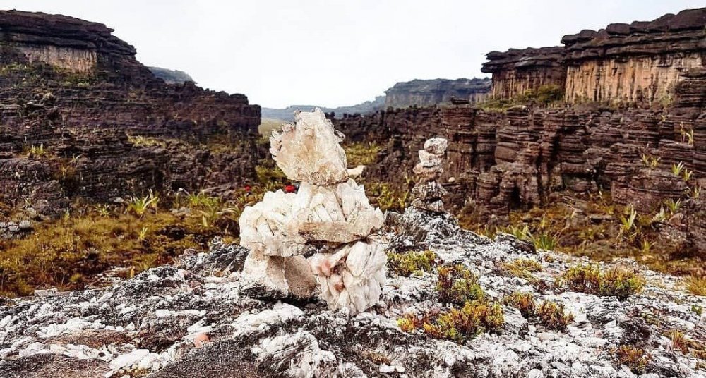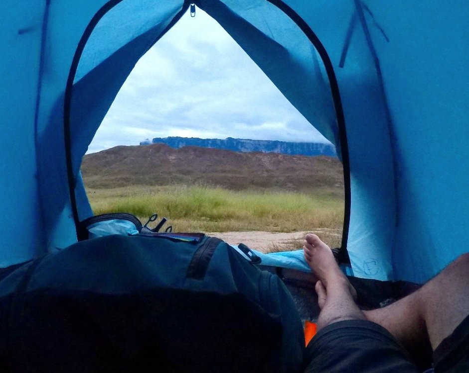 A Expedição Monte Roraima começou quando me deparei com a foto abaixo. Achei impressionante a existência de um lugar assim no mundo. E comecei a ler tudo a respeito. Vou resumir os pontos mais importantes para se levar em conta: "O Monte Roraima tem 34 km2 de área e fica exatamente na fronteira entre o Brasil, a Venezuela e a Guiana, com um marco de concreto em seu topo registrando a tríplice fronteira. A maior parte da montanha está em território venezuelano (85%), 10% na Guiana e apenas 5% em solo brasileiro. O acesso ao topo foi descoberto em 1884 na parede sudoeste, a partir da Venezuela, e por ser o único caminho por trilha, sem necessidade de técnicas de escalada e nem cordas, passou a ser utilizado por todas as expedições. Fora isso, há os passeios panorâmicos de helicóptero e pelo menos duas vias de escalada (Scorpion Wall e Cutting the Line)." Por estar na Amazônia e numa região com clima equatorial é quase impossível fugir das chuvas, mas mesmo assim há meses mais favoráveis para a viagem. De outubro a abril: Período de menos chuva e frio. Vantagem: Evidentemente a de evitar perrengues com a chuva. Desvantagem: Não observar as inúmeras cachoeiras que se formam nos paredões do Monte Roraima De maio a agosto: Período de maior frio e chuva. • Para iniciar o trekking o caminho é o seguinte ( pelo menos no meu caso, brasileira) : Boa Vista ( Roraima) x Santa Elena de Uairén ( Venezuela) x Paratepuí ( de onde a caminhada começa de verdade); • As agências no Brasil cobram verdadeiras fortunas para realizar o passeio e depois de ler vários relatos, contratei os serviços da Mystic Tours ( agência venezuelana localizada em Santa Elena); • Brasileiros não precisam de passaporte para entrar na Venezuela; • É obrigatório o certificado internacional contra Febre Amarela; • Pode levar REAL pois qualquer estabelecimento em Santa Elena aceita nossa moeda e por uma câmbio bem atraente; • Li em vários relatos que qualquer pessoa pode fazer o trekking, vou ser bem sincera, não é pra qualquer pessoa. Sem o mínimo de condicionamento físico vc vai sofrer e muito; Bom vamos lá... Chegamos em Boa Vista as 14:00 e contratamos o taxista Ciro da cooperativa Pacanaima, pagamos por pessoa o valor de R$ 45,00 para nos levar até Santa Elena ( 250 km), do outro lado da fronteira na Venezuela. Ficamos na Pousada Backpackers, quarto quádruplo, R$ 21,00 a diária, tem um pub embaixo que toca uma musiquinha e servem pizza. Ao lado do nosso hotel tem a Pousada Michele mesmo valor pelo quarto quádruplo. Na mesma rua encontra-se a Mystic Tours (agência que contratei aqui do Brasil) para nos levar ao Roraima. Detalhes da Expedição: • Valor total em reais pelo trekking de 6 dias: R$ 586,00; • O que inclui: Guia, cozinheiro, comida para os 6 dias, barraca, saco de dormir, isolante, transporte para o início e fim do trekking, um almoço no último dia com refrigerante e mapa da La Gran Sabana; • Serviço extra: você pode contratar um dos carregadores para levar sua mochila, cobraram 32.000 bolivares o dia, aproximadamente, R$ 35,00; • Os carregadores montam e desmontam a barraca que é compartilhada, sempre duas pessoas; • O dono da agência é o Roberto Marrero, gostei muito dos serviços prestados! Foram atenciosos e muito simpáticos com todos do meu grupo; • Eles fazem um reunião com todo o grupo um dia antes de iniciarem o trekking, onde tiramos todas as dúvidas e eles nos entregam o saco de dormir e o isolante, que são carregados por nós; 1º Dia: De Santa Elena x Paratepuí x Acampamento Rio Tek Nos reunimos na porta da agência as 09:00 da manhã, assinamos um termo de responsabilidade e partimos em veículo 4x4 para Paratepuí onde se dá início ao Trekking. Chegamos lá, prepararam um lanche. Enquanto comíamos, os carregadores se organizaram com tudo que precisaríamos para os 6 dias que nos aguardavam. Tudo pronto, começamos a caminhar as 12:30, o calor já estava absurdamente perturbador. Rsrs Vou confessar, a minha mochila estava tranquila mas quando coloquei o saco de dormir e o isolante, virou um monstro. Andamos nesse dia cerca de 13km com algumas paradas e rios para repor a água. No fim da tarde chegamos ao Acampamento do Rio Tek, o acampamento com mais recursos. Tem uma vendinha com cerveja e salgadinhos, mesa pra comer e o Rio Tek fica a poucos metros de distância. O banho no Rio Tek foi uma aprovação, água muito frio mas depois, tornou-se deliciosa se não fosse o ataque de Puri-Puris ( mosquitos da savana venezuelana). Voltei com 1 milhão de picadas e coçam, como coçam! Os carregadores rapidamente armaram as barracas enquanto outros preparavam nosso jantar, uma macarronada com carne moída deliciosa e suco. Confesso que fiquei bem cansada nesse dia, a cada descida de morro você já se preparava para subir e o sol era imperdoável. Fomos dormir e descansar para o outro dia que pra mim, foi o mais punk de todos. 2º Dia: De Acampamento Rio Tek x Acampamento Base Nesse dia acordamos bem cedo, 05:30 e começamos a arrumar tudo, fomos tomar café que já estava a mesa. Uma deliciosa panqueca com presunto e ovos, chá e café ( parecia chá) rs; Enquanto tomávamos café, os carregadores já desmontavam nossas barracas. Começamos a caminhada novamente, nesse dia atravessamos o Rio Tek ( bem fácil) pulando algumas pedras. Mais adiante, nos deparamos com o Rio Kekunán, nesse rio já demanda toda logística de tirar a bota, ficar de meia, o carregador te ajuda com a mochila e também na travessia. A correnteza estava bem forte e é um trecho maior para atravessar. Do outro lado do rio, meias secas, bota no pé e a caminhada continua. Nesse dia a minha mochila estava me matando e o sol novamente castigava. Na minha opinião, o segundo dia foi o pior dia, muitas dores nas costas, o tempo todo subindo e subindo, tudo muito íngreme. Fiz diversas paradas e em determinado ponto exausta, paramos todos e começaram a prepa