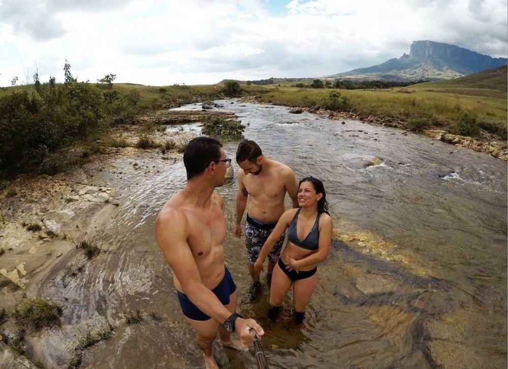 Resolvi fazer este relado de viagem principalmente pela pouca orientação que encontrei para fazer a expedição para o Monte Roraima. Tive dúvida do que levar, mas, principalmente do que NÃO levar. Incerteza com que guia contratar. Incerteza com comida e pouca orientação sobre preparo físico necessário. Espero com este relato suprir algumas dessas deficiências que outros aventureiros possam ter. 1 – Diário de bordo 2 – O que levei para o Monte Roraima 3 – Como contratar um guia 4 – O que comer e o que beber 5 – Preparo físico necessário para subir o Monte Roraima 6 – Despesas 7 – Conclusão 1 – Diário de Bordo DIA 1 Saímos de Londrina, eu Ana e Maurício às 13:25.🛫 Chegamos em Congonhas com pouco menos de uma hora. O voo para Brasília saiu às 17h. Uma hora e meia de viagem. Chegando em Brasília tínhamos mais de 4 horas de espera até o voo para Boa Vista. Bom que deu tempo de conhecer o aeroporto, que é muito grande e bonito. Faz jus a capital do Brasil. Deu tempo de jantar (R$ 28,00) e até de comer uma sobremesa (R$ 36,00). De Brasília saímos às 22:45 e chegamos em Boa Vista a 1:20 (horário local, uma hora a menos do horário de Brasília). Em Boa Vista desembarcamos e pegamos um táxi (R$ 40,00) para o hotel (R$ 110,00).🛬 No hotel chegamos umas 2h da manhã. O Hotel Magna era bem simples, mas suficiente. Tinha até condicionado, mas o chuveiro não tinha a opção de quente. Tudo bem que faz muito calor em Boa Vista, mas água fria e tenso. Depois ficamos sabendo que somente hotéis de luxo que tem chuveiro elétrico em Boa Vista Procuramos dormir logo pq as 6 da manhã o táxi já ia passar nos pegar. DIA 2 Acordamos as 5:15 de uma noite não dormida muito bem. Pernilongos e poucas horas de sono. As 6h em ponto o táxi chegou.🚖 Partimos em direção a Pacaraima. Um pouco mais de 2 horas de viagem. Com direito a uma parada para tomarmos um café da manhã no Quarto de Bode.🐐 Chegando em Pacaraima o nosso guia Leopoldo já nos aguardava e a partir de então era com ele que a gente seguiria o restante da viagem. Pacaraima aparenta ser uma cidade bem pequena, mas estava com um fluxo bem grande de pessoas. Acho que a maioria era venezuelanos. Atravessar a fronteira foi bem tranquilo. Do lado brasileiro nem precisamos fazer trâmite algum (pelo menos eu acho que não precisava 🤔). Do lado venezuelano foi uns 20 min, isso graças ao auxílio do guia. Senão penso que demoraria mais. Para ingressar do lado venezuelano vc passa por tbm por uma fiscalização da guarda Bolivariana que tbm foi sussa. Mas, segundo informações ela geralmente não é tranquila. Ficam criando dificuldades para poder vender a facilidade. Mas não foi nosso caso. Depois da fronteira, mais uns 20 min chegamos em Santa Elena de Uairen e fomos direto para a base do guia, que já ajeitou as nossas mochilas no carro que nos levaria até a reserva de onde começa a expedição. O guia nos apresentou a equipe que nos acompanharia, Omar, sua esposa (até agora não sei o nome dela 😂) e Valentim. Depois se juntaria a nós o cozinheiro Armando. Tbm conhecemos outros dois brasileiros que fariam a expedição com nós, Guilherme e Gabriel. Logo partimos. Umas 10h. A previsão era de umas duas horas de viagem até chegar no Parque Nacional Canaima, mas o carro que estávamos deu um problema mecânico no meio da estrada. Então o motorista ligou para um outro que veio nos socorrer e trocamos de carro. Com isso atrasamos cerca de uma hora. A rodovia foi tranquila. A parte de estrada de chão é de muito sacolejo. Se não for um veículo traçado não daria conta. Quando chegamos na reserva de onde parte a expedição, tivemos que pagar uma taxa de R$ 30,00. A informação é que era R$ 10,00, mas, aparentemente subiu (deve ser a puta inflação venezuelana).🤑 Ainda nesta reserva fizemos um lanche e então partimos para 12 km de caminhada. Iniciamos por volta das 14:30. Não estava sol, o que facilitou um pouco, mas a caminhada não foi fácil. Um trekking de 12 km com uma mochila de uns 13 kg pra quem não tinha dormido direito não é fácil pra ninguém.😲 Chegamos no local do acampamento por volta das 19:00h, exaustos. Ajudamos montar as barracas e descemos para o Rio Tel para tomar aquele banho frio. Não demorou muito para o jantar ficar pronto. Uma macarronada com carne moída. Muito boa! Comemos, o guia nos deu algumas orientações sobre o dia seguinte e jogamos um pouco de conversa fora, depois dormimos, com uma chuva que se aproximava. De madrugada choveu um pouco. DIA 3 Eu acordei bem cedo. Foi uma noite bem dormida. Às 5:30 já estava de pé. Serviram o café da manhã às 6:30, omelete com uma espécie de “massinha” de pão frita. A programação era de sairmos a 7h, mas com a chuva que começou a cair e não dava para seguir viagem. Não pela chuva em si, mas sim pela cheia do rio que teríamos de atravessar. Esperamos até às 10 horas e Omar resolveu que dava para tentar. Então seguimos. Para atravessar o rio Tek foi tenso. Primeiro atravessaram nossas mochilas e depois um a um. O rio estava bem cheio e a correnteza era forte. Mas demos conta. Isso graças ao ótimo trabalho realizado pelos guias. Esta foi a primeira etapa, pq outras duas travessias do rio Kukenan nos aguardava. Paramos para o almoço, até pq não dava ainda para atravessar o rio Kukenan por causa da sua cheia. Prepararam e serviram o almoço, uma salada variada com pão. Ao seguirmos, atravessamos o Kukenan em dois pontos. O primeiro ponto foi tranquilo. A segunda é necessária a ajuda de uma corda esticada de lado a lado. Seguimos para uma caminhada de aproximadamente 3 horas. Deve ter dado uns 8 KM, mas pareceu ter andado uns 80 😅. Boa parte com um sol forte, outras com o tempo encoberto, mas sem chuva. Essa subida exige bastante preparo. Chegamos no acampamento. Mais um banho bem frio. Aquele velho e bom “banho checo”. Barracas montadas, foi hora de descansar um pouc
