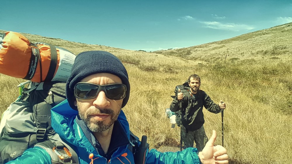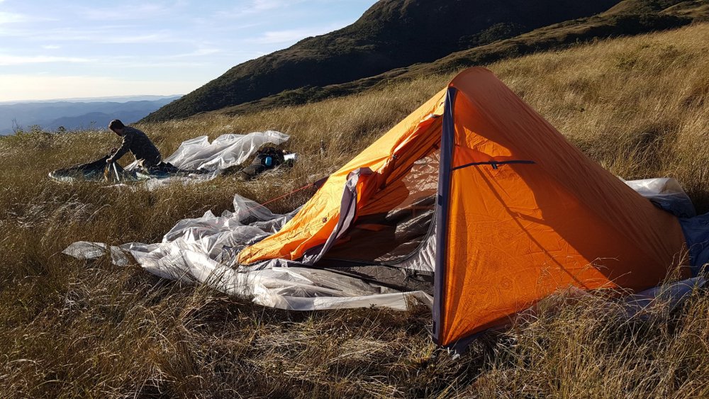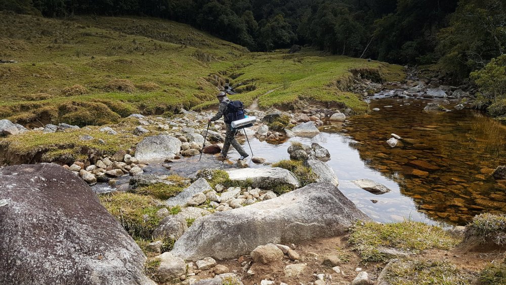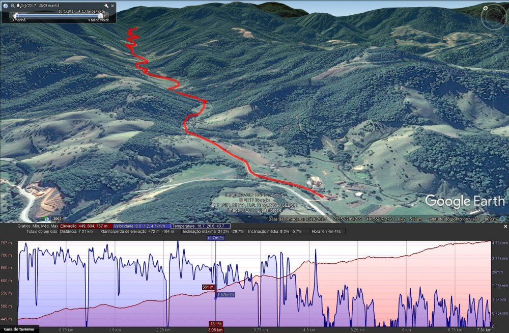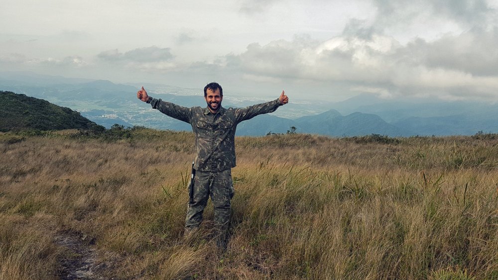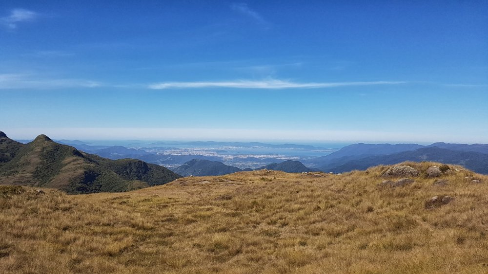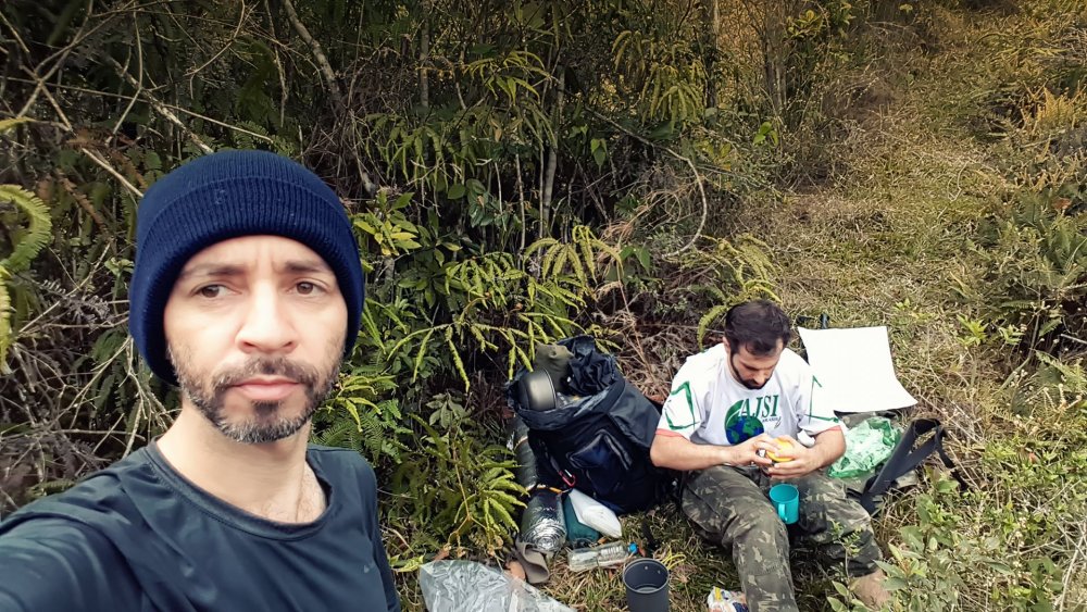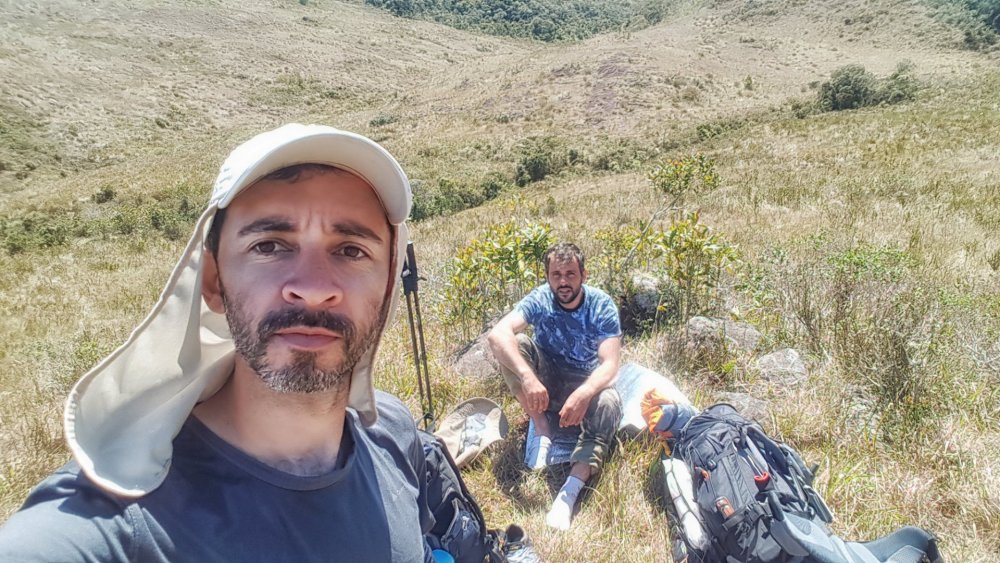 Travessia Parque Estadual da Serra do Tabuleiro São Bonifácio a Caldas da Imperatriz Localizado em uma região estratégica, única e muito especial da Mata Atlântica, o Parque Estadual da Serra do Tabuleiro possui uma ampla diversidade de habitats. Cinco das seis grandes formações vegetais do bioma Mata Atlântica encontradas no Estado estão representados no Parque. Por essa razão, ele abriga uma biodiversidade ainda maior que seus 84.130 hectares poderiam sugerir. O Parque Estadual da Serra do Tabuleiro ocupa cerca de 1% do território catarinense. Abrange áreas dos municípios de Florianópolis, Palhoça, Santo Amaro da Imperatriz, Águas Mornas, São Bonifácio, São Martinho, Imaruí e Paulo Lopes. Fazem parte do Parque as ilhas do Siriú, dos Cardos, do Largo, do Andrade e do Coral, e os arquipélagos das Três Irmãs e Moleques do Sul. Fonte: Fatma A ideia da travessia surgiu no início de julho de 2017, exatamente 3 meses antes, em uma das ascensões ao Morro do Cambirela, quando no cume, já praticamente na face oeste do Cambirela, avistei aquela imensidão de montanhas que sugeriam uma travessia muito interessante. Fiz algumas pesquisas na internet, e encontrei dois tracklogs que dariam uma boa base para a travessia. Um deles foi do Rafael Santiago, que acompanhava um breve relato da expedição. O outro era o do aventureiro Hendrik Fendel. Analisei exaustivamente as fotos de satélites, juntamente com os mapas topográficos da região e o tracklogs, mesclando as informações e criando uma trilha que para mim seria mais ideal. Nada muito diferente do que os outros fizeram, mas que de certa forma poderia facilitar um pouco a travessia, visto que existe muita vegetação densa na região, mata fechada mesmo, com poucas trilhas marcadas, e arbustos e capim alto e úmido, que dificultam muito avançar nessa região nessa época do ano. Me preparei juntando alguns equipamentos que ainda não tinha, e fui em busca de um parceiro para a travessia. Tentei convencer dois amigos, mas sem sucesso. Já estava decidido a enfrentar sozinho, quando toquei no assunto da travessia com meu amigo Junior Borttoloto que surpreendentemente na hora comprou a ideia, e se dispôs a compartilhar essa aventura, mesmo com poucos recursos técnicos que dispunha até então. Sem muito tempo para correr atrás de equipamentos, juntou o que pode, e marcamos o dia da travessia. Seria dia 01 de outubro de 2017. Dados da Travessia: Distância Total: 37,5km Tempo Total (não conta tempo acampado): 1 Dia, 19 horas, 3 minutos. Tempo em movimento: 21 horas, 18 minutos. Tempo parado: 23 horas, 03 minutos. Velocidade Média: 0,87km/h Velocidade Média em movimento: 1,76km/k Altitude máxima: 1276 m (Morro das Pedras) Subida: 3072m Descida: 3111m Arquivo do Tracklog: https://drive.google.com/file/d/0B8ysaVUguG6sNDVVZG9tcS1Wcm8/view?usp=sharing Tracklog no Google Maps: https://drive.google.com/open?id=1OZgNa__mw1oh1GEJ94iPz_By8gQ&usp=sharing Primeiro Dia, 01/10/2017 Saímos de casa perto das 8:30 da manhã em direção a São Bonifácio, onde seria o início da travessia. Esta se iniciaria perto do centro da cidade, aproximadamente 4km antes, em uma estrada de terra, onde há uma placa indicando “RIO MOLL”. Se preparamos, e iniciamos a caminhada por volta das 10:10 da manhã. Sol forte, pouco conhecimento do terreno, mas fomos avançando até a casa do Sr. Gilson, na fazenda Recanto das Pedras. Chegamos lá por volta de 11:50, após ter caminhado 4,2km em estrada de chão, numa temperatura média de 30°C. Batemos palma, e ninguém atendeu. A casa estava toda aberta, janelas escancaradas, e para nossa surpresa não havia ninguém em casa. Foi quando avistamos um vizinho em uma casa um pouco antes; e então resolvemos retroceder para pegar informações a respeito do início da trilha que começava nos fundos da casa do sr Gilson. Este nos informou que o sr. Gilson não estava muito contente em liberar a travessia através do seu terreno, porque alguns aventureiros anteriores andaram deixando lixo espalhado pelas trilhas. Falou que ele não deveria voltar cedo para nos conceder autorização; foi então que começamos a pensar que a nossa travessia havia acabado no começo, porque não tínhamos autorização para entrar na propriedade particular. Foi quando o vizinho resolveu autorizar, e disse que poderíamos seguir tranquilos, que ele estava autorizando e iria informar o sr Gilson, que entramos em sua propriedade e sem previsão de retorno; já que sairíamos por Caldas da Imperatriz, e se comprometemos a levar todo lixo que fossemos a produzir. Autorização concedida, o início da trilha foi relativamente fácil; mata fechada, porém com uma trilha bem marcada, seguindo o Rio Moll e cruzando ele por volta de 12 vezes até chegar num primeiro pasto, lugar planejado para o primeiro pernoite. Era 16:10, e resolvemos acampar ali mesmo, após ter caminhado um total de 7,7km. Km total: 7,7km Tempo em movimento: 02:46:15 Tempo parado: 03:17:50 Altitude inicial: 443m Altitude final: 738m Perda elevação: 42m Ganho de elevação: 338m Algumas fotos desse dia: Segundo Dia, 02/10/2017 Tivemos uma noite tranquila devido ao lugar isolado e cercado por montanhas; sem vento, temperaturas amenas, e o som do Rio Moll proporcionaram uma noite de sono recuperadora. Após o café, partimos as 8:55 do primeiro acampamento; cruzamos o Rio Moll mais algumas vezes seguindo seu curso rio acima, e rapidamente chegamos a outro pasto, que também seria um excelente local para acampamento. Nosso objetivo do dia era acampar no Morro das Pedras, próximo do Cânions onde se tem uma vista da Ilha de Santa Catarina. Continuamos avançando e as 10:00 cruzamos o Rio Moll pela décima sexta vez, seria a última; porque no pasto seguinte nossa direção passou de norte para leste, iniciando uma subida muito acentuada em meio a mata, passando de 780m para 1100m. A visão do pasto lá embaixo deixava ainda mais evidente o quanto nós estáv