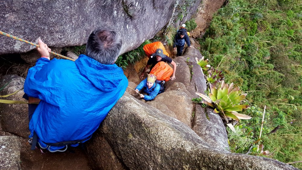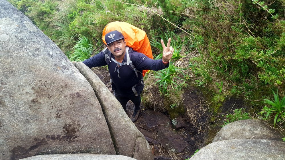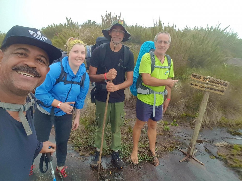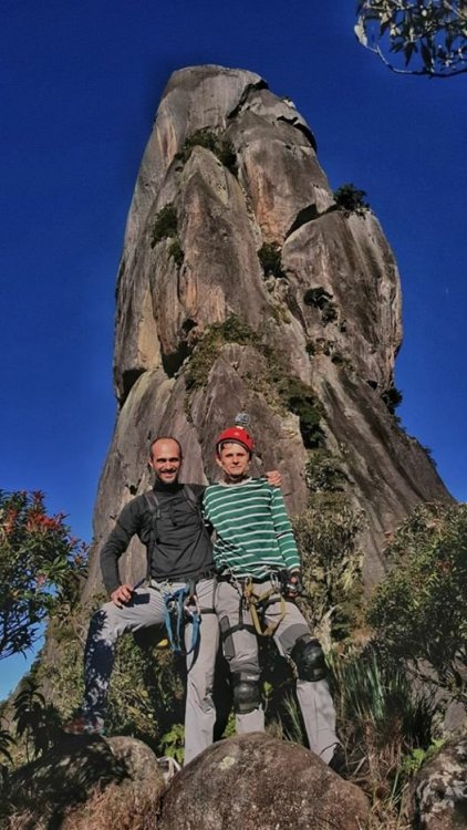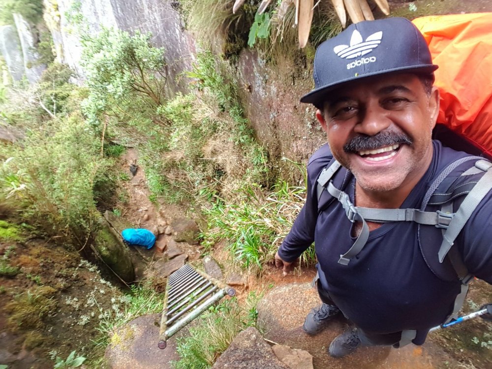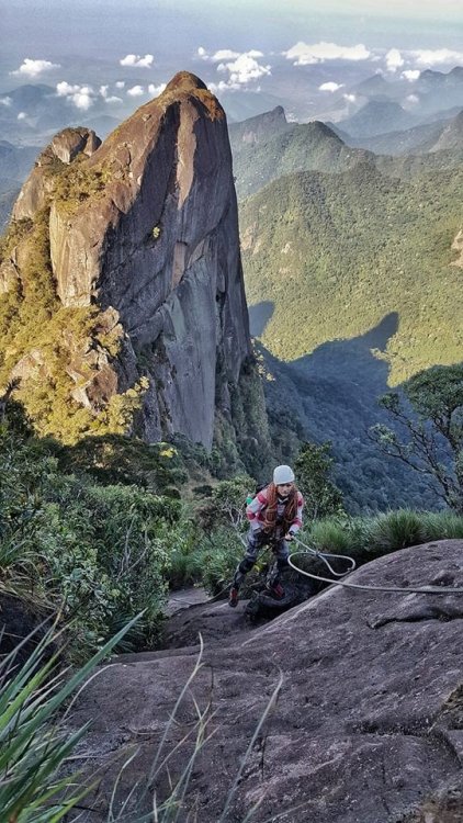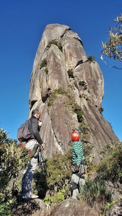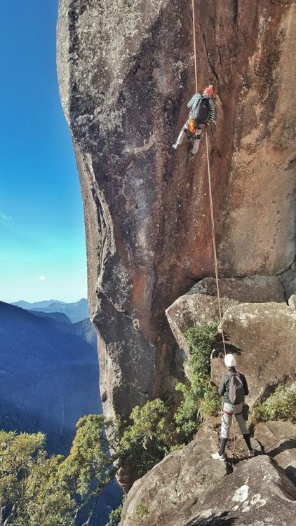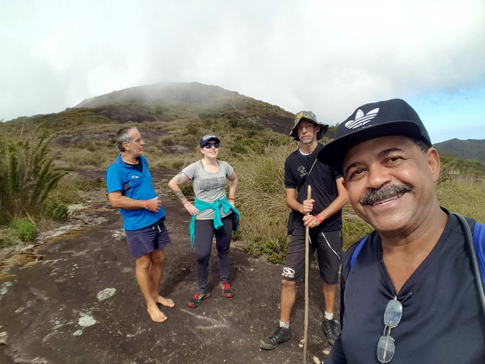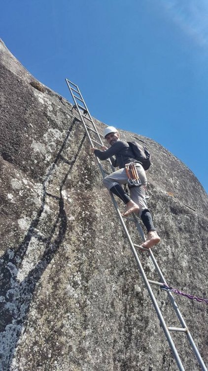 DEDO DE DEUS-RJ: A conquista que atravessou o tempo. 1997: Dois amigos de infância tentam alcançar a montanha mais lendária do Brasil, sem experiência nenhuma em escalada, tentando laçar pinos com uma corda de sisal, fracassam e fazem um juramento de um dia botar os pés no topo daquela montanha. Juntos, ganham parte do Brasil subindo outras montanhas, atravessando vales selvagens, desbravando lugares praticamente intocados e um deles também se aventura por outros caminhos do Continente Sul-americano. A vida vai passando, os filhos vão chegando e entre uma montanha e outra, sempre ficam remoendo o fato de ainda não terem cumprido a promessa que haviam feito. 2017: (junho) Por um golpe do destino, apenas um desses dois amigos consegue se agrupar com outros amigos em comum e numa tentativa de chegar ao cume da montanha, perdem a trilha, cometem alguns erros e são obrigados a enfiar o rabo entre as pernas e voltarem para casa sem chegar ao topo: mais um fracasso! Tendo já feito praticamente tudo em matéria de montanhismo clássico, subido todo tipo de montanha no Brasil e algumas fora dele, tendo me dedicado vários anos a exploração selvagem de vales e rios, tendo tido a honra e a oportunidade de, junto com alguns amigos, poder botar meus pés em montanhas onde outros jamais puseram, vi que havia chegado a hora de aprender os rudimentos da escalada. Quase que inconscientemente eu sabia que aquela promessa feito 20 anos atrás, jamais sairia do papel se uma atitude não fosse tomada. Mas há um porem: A escalada é um mundo fechado e diferentemente do montanhismo clássico, poucos são os praticantes que estão dispostos a perderem seu precioso tempo para ajudar novatos, muito porque esse é um esporte caro e por isso mesmo, o tipo de gente que o pratica costuma ser um pouco mais elitizada. Como, ainda bem, tudo na vida tem suas exceções, um convite de um casal de amigos para conhecer o esporte, fez com que eu tivesse esse primeiro contato com o mundo das paredes. Aprendi meia dúzia de procedimentos, mas foi o suficiente para eu voltar a sonhar com a promessa de 20 anos atrás. Num dia qualquer, sem nada para fazer em casa, tive uma “ideia brilhante”: Peguei minha velha corda de rapel, minha cadeirinha antiga e um freio da década de 90 e uns mosquetões de aço de construção civil e convidei meu grande amigo de infância e mais outros novos amigos de algumas roubadas memoráveis. e foi assim que 4 paspalhões se encaminharam para uma pedreira abandonada em Campinas, que virou palco de escalada com mais de 80 vias, no interior de São Paulo. A nossa chegada à Pedreira do Garcia acabou por se tornar um evento de bizarrices, os escaladores locais nos olhavam com cara de reprovação, alguns com cara de nojo, mas a gente estava feliz. Subíamos três ou quatro metros de paredes e nos divertíamos para valer com aquilo e pouco nos importávamos se tinha gente gostando ou não, a gente nunca esteve nem aí pra coisa alguma porque ao contrário do que os outros imaginavam, tínhamos plena consciência do que estávamos fazendo, porque não éramos garotinhos brincando pela primeira vez no balanço da mangueira e naquela mesma pedreira, mais de uma década atrás, a gente já tinha feito muito rapel e ficar pendurado numa corda não era nem de longe nenhuma novidade pra gente. Voltamos um outro dia na Pedreira, agora com uma corda de escalada conseguida pelo Alexandre e algumas costuras, estávamos evoluindo, no nosso conceito, porque no conceito de outros, continuávamos os mesmos merdas de sempre, rsrsrsrsrsr. Mas, como ainda é possível continuar acreditando em parte da humanidade, alguns escaladores se sensibilizaram com a gente e vieram oferecer ajuda, gente que hoje somos eternamente gratos, do qual acabamos nos tornando amigos também. Naquele dia, com uma corda de escalada, mesmo com o fiofó na mão, alguns de nós conseguiu guiar algumas vias fáceis, no caso, eu, o Vinícius e o Dema, porque o Alexandre mal conseguia se segurar a três metros, inclusive eu e o Dema comentamos que o Alexandre era um dos que não iria a lugar nenhum, não havia nascido para o esporte. Entre idas e vindas à pedreira, somente o “molenga” do Alexandre foi quem efetivamente começou a se dedicar verdadeiramente ao esporte, porque eu e o Dema aparecíamos esporadicamente, às vezes passávamos meses sem nem aparecer por lá. O Vinícius foi outro que procurou correr atrás, fazendo alguns cursos de técnicas verticais com a galera da espeleologia e começou a subir alguns degraus na escalada. Mas foi mesmo o safado do Alexandre que se entregou de cabeça, foi ele quem correu atrás de se especializar, fez cursos rápidos no Rio de Janeiro e adquiriu equipamentos mais modernos. Continuamos a nos encontrar para algumas vias de escalada, inclusive em algumas paredes de escalada clássicas, mas nada que exigisse muito da gente e sempre que estávamos juntos, lembrávamos que um dia havíamos combinado que escalaríamos o Dedo de Deus e que quando isso fosse acontecer, iríamos pegar firmes e treinar pelo menos uns três meses antes. Pois é, mas um dia o Alexandre me manda uma mensagem no meio da semana e me diz : -“ Se prepara Divanei, domingo vamos subir “sua montanha”. O Alexandre estava de brincadeira, não havia o menor cabimentos de nos metermos naquela enrascada de uma hora para outra sem uma preparação específica, mas ele não queria nem saber, era agora ou nunca e pior, o Dema não poderia ir nessa data, logo ele que havia jurado estar comigo no topo daquela montanha antes de morrer. Não era o que eu queria, mas era o que me restava e se eu não fosse, não aproveitasse aquela oportunidade, talvez jamais teria outra. Eu não estava pronto, mesmo assim aceitei o desafio. Chegamos em Teresópolis de madrugada e mesmo praticamente sem dormir, nos lançamos na trilha que nos levaria às paredes do Dedo de Deus, nos agarramos aos cabos e cordas e quando vimos, estávamos 
