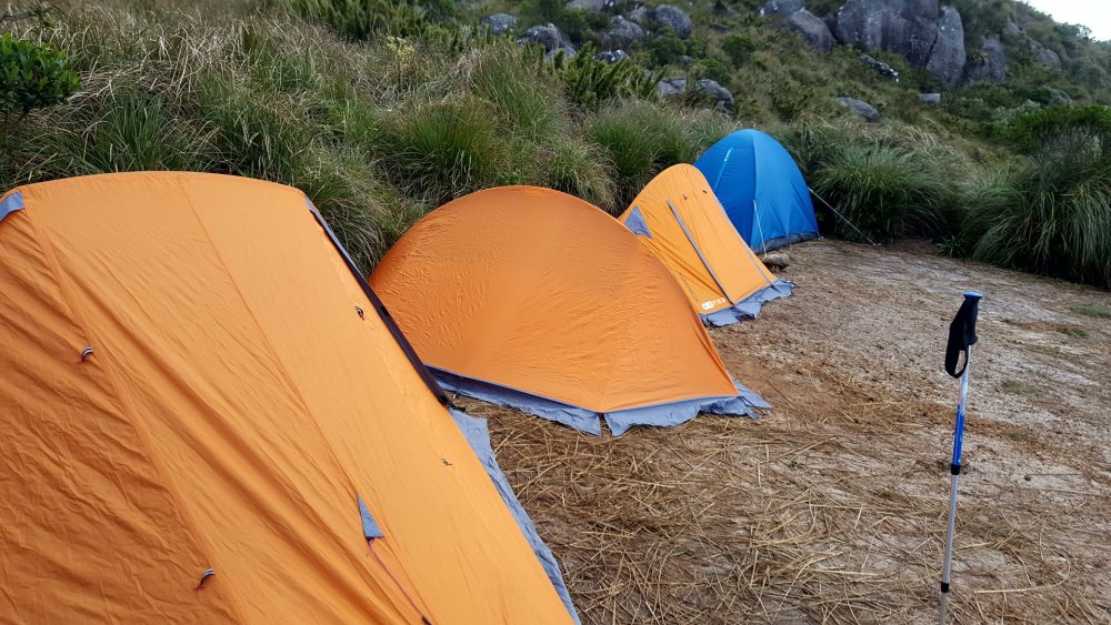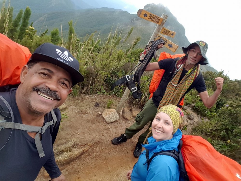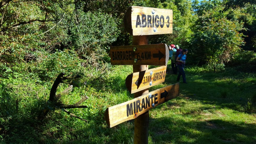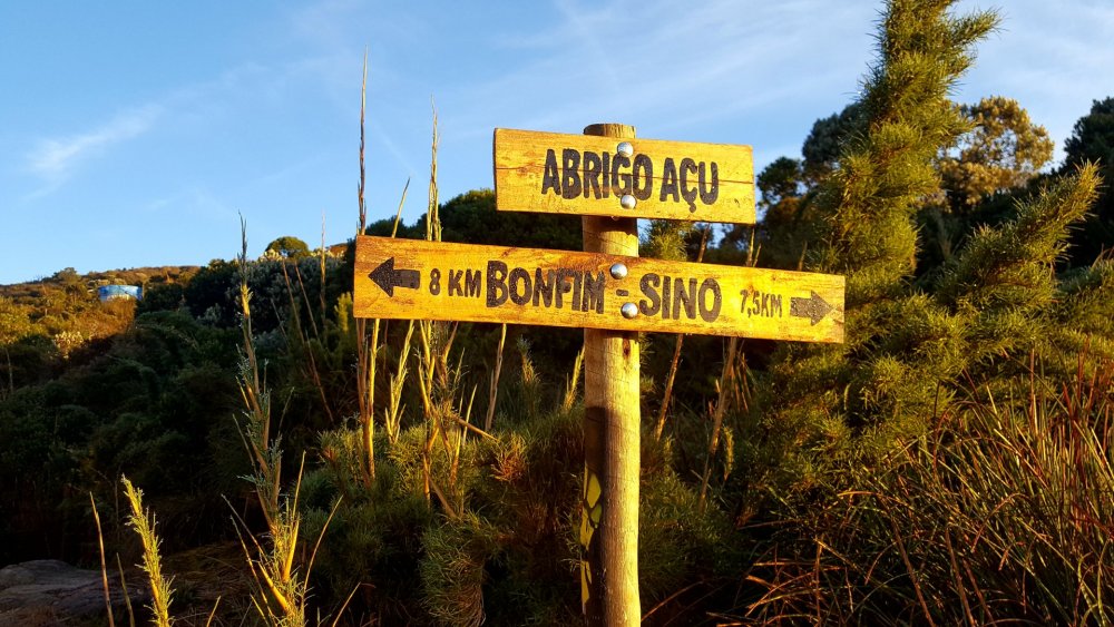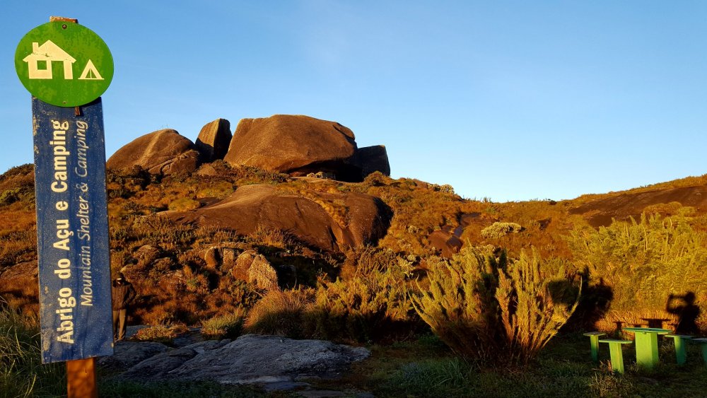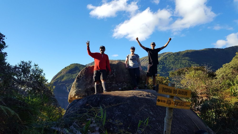 Na Patagônia fizemos o nosso primeiro trekking sozinhos, o Circuito W no Parque Nacional de Torres del Paine, e voltamos ao Brasil energizados para fazer o nosso primeiro em terras brasileñas. Só tinhamos um problema: qual? Qual trekking nós, mortais sem GPS, faríamos? Foi aí que nossos amigos Ádria e Hugo, também mortais sem GPS em busca do primeiro trekking no Brasil, lançaram o convite para fazermos a travessia de Petrópolis Teresópolis no feriado da Páscoa. E quer saber? Por que não? Demos uma olhada nas fotos do Google, Ádria fez as reservas das 2 noites de acampamento e as entradas do parque, e estava decidido, nossa aventura seria no Rio de Janeiro, dali 40 dias. INSPIRADOS NA TRAVESSIA PETRÔ X TERÊ CRIAMOS UMA CAMISETA INCRÍVEL E então, o perrengue a emoção começou O primeiro item do check list que apareceu foi o danado do GPS. Parecia noticiário "...no segundo dia em caso de mal tempo (neblina), o risco de se perder é grande. Utilize o GPS ou contrate um guia". Não queríamos contratar um guia, opção nossa, e não tínhamos um GPS, opção do nosso bolso. O segundo item era uma corda de 10 metros (eu aconselho 15 m) e essa nós tínhamos. Para todo restante acreditávamos estar preparados: comida, preparo físico, primeiros socorros, equipamentos (exceto o GPS) e navegação por carta. Chegando ao Parque Partimos de São Paulo às 22h e chegamos à rodoviária de Petrópolis às 6h da manhã seguinte em um ônibus repleto de aventureiros com o mesmo destino, a travessia. Neste ônibus haviam 15 pessoas de um grupo guiado e 5 de outro, também guiado. Todos aqui têm guia? Sim, menos nós 3. É verdade, não éramos mais 4 e sim 3, já que o Hugo se machucou escalando. Ele até viajou conosco, mas teve que ficar em Petrópolis conhecendo todos os restaurantes, cervejarias e museus, enquanto sua esposa, Ádria, nos aturava por 3 dias. Que pena dela... Da rodoviária é preciso pegar 2 ônibus municipais para chegar até a sede do parque de Petrópolis (Bonfim), um até o Terminal Corrêas e outro (número 616 - Pinheiral) até a Escola Rural do Bonfim. DICA: em feriados corra para as filas destes ônibus, pois lotam e você pode acabar tendo que esperar próximo. Na sede, às 9h assinamos os termos, checaram as nossas entradas e acampamentos (leve impresso!) e pronto. Pé na trilha! DIA 1 O primeiro trecho até a bifurcação para a cachoeira Véu de Noiva (ponto de água) foi bem tranquilo, cachoeira para esquerda e Castelos do Açu para direita. Para chegar até a cachoeira, é preciso atravessar um rio de pedras escorregadias e a trilha continua até ela, que é linda e vale a pena. Sou daqueles que entra na cachoeira por mais gelada que esteja, mas não entra em um chuveiro gelado nem com reza brava. Aquele dia de céu azul ainda estava começando. Voltamos até a bifurcação e tocamos para Pedra do Queijo, nossa parada para almoço e um lugar para sentar estava concorrido. Então, continuamos até o Ajax (ponto de água). No primeiro dia são mais de 1.100 metros de altimetria conquistados em 7km. Puxado! O trecho final de subida, conhecido por Isabeloca, foi desviado da rota original, portanto se você está com GPS, cuide para estar com seu tracklog atualizado. A rota original está preservada para restauração da vegetação. O final da Isabeloca, marcou o começo das vistas de tirar o fôlego. A caminhada neste trecho estava tranquila, mas durante o caminho para o Morro do Açu, o sol já estava se pondo, e agora? Corremos para aproveitar a luz do dia ou ficamos para ver o sol se pôr? Pessoas experientes diriam para aproveitar a luz solar e apertar o passo. Nós aproveitamos a luz solar, acompanhamos cada raio de sol se escondendo em um pôr do sol maravilhoso, e depois apertamos o passo. No primeiro dia não tem segredo! A trilha é muito bem marcada em meio à vegetação. A noite, chegamos ao Morro do Açu e lá, era possível acampar próximo ao abrigo ou à cabeça da tartaruga. DIA 2 Este era o dia! Navegar sem GPS, passar pelo "elevador", "mergulho", "cavalinho" e chegar até o Abrigo 4, da Pedra do Sino. 5h da matina, é hora de ver o sol nascer! Como um ritual, todos vão ao Castelos do Açu para este momento. Fez um bocado de frio a noite, mas não deve ter chegado a 0° C. Levantamos acampamento, enchemos nossas garrafas de água e partimos. Geralmente, o tempo que se leva no primeiro dia é parecido com o tempo do segundo. Neste dia, existem pelo menos 2 trechos que são por laje de pedra que em caso de neblina, só um guia ou GPS poderão te salvar. Tome cuidado! A travessia começou ao lado do abrigo, sentido Pedra do Sino. Depois de pouco tempo encontramos uma descida íngreme e então uma laje de pedra. Como o tempo estava bom, foi possível ver a continuação da trilha ao lado do vale. Continuamos e começamos a subir o Morro do Marco, na subida tivemos alguns trechos de trepa pedra e os primeiros escorregões e no final d a trilha (no topo) viramos para direita, caminhamos pela crista e a descemos pela laje de pedra em direção ao Dedo de Deus. Chegamos a um riacho na base do Morro da Luva onde tem sombra e água fresca, (estávamos precisando!). Conosco, haviam umas 10 pessoas e outras estavam chegando, então resolvemos sair para diminuir a fila da água. Sim, havia fila. Tocamos para cima, agora subindo o Morro da Luva. O começo é pela mata, mas a sombra durou pouco, seguimos com um sol do agreste de tostar a moleira. Quando chegamos a crista, transmitindo uma paz e maior do que as fotos podem representar, surgiu a Pedra do Garrafão. Que vista! A trilha continua pela crista, atravessando o morro. Terá um vale e o sentido é para direita, continuando entre lajes de pedra, trilha e atravessando outro riacho (ponto de água). Depois de um bom tempo atravessamos uma ponte de madeira e chegamos ao Elevador. Havia chovido nos dias anteriores e boa parte da trilha tinha lama e a Ádria que tomou todo cuidado para não molha