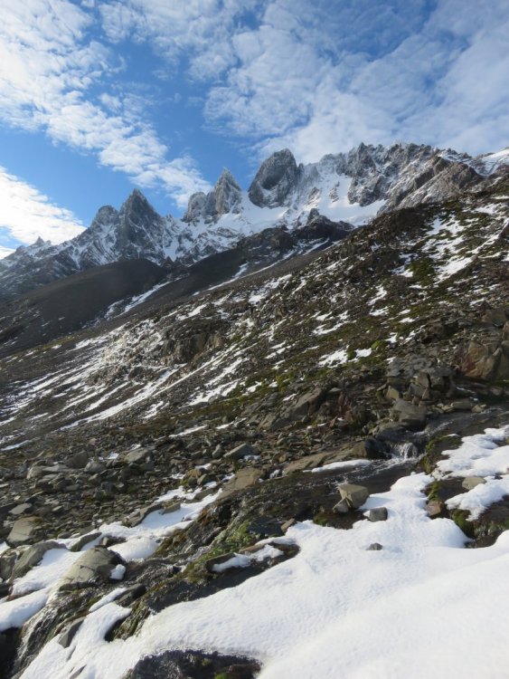 Olá, viajantes! Depois de ler tantos relatos, receber tanta ajuda e dicas do pessoal aqui no Mochileiros, nada mais justo que deixar uma contribuição sobre a minha experiência pela Patagônia. E também fico a disposição para ajudar no que estiver ao meu alcance! Meu insta é https://www.instagram.com/primporai/, se tiverem alguma dúvida e quiserem trocar alguma ideia, podem me chamar lá. 😊 Espero que gostem! Antes de iniciar o relato sobre a viagem, vou deixar algumas dicas importantes aqui: - O meu objetivo com essa viagem era realizar algumas trilhas. Caminhei muito (cerca de 250km) e tive bastante contato com a natureza. - Eu fiz a viagem sozinha. Para quem tem dúvidas só tenho uma coisa a dizer: vá sem medo. As pessoas de lá são muito simpáticas e estão sempre dispostas a ajudar. Fiz várias amizades durante as trilhas, nos ônibus, na rua, etc. 😂 - A fama de rolar caronas por lá é verdadeira. - Mesmo sendo verão, na Patagônia ainda é frio. - Os dias são longos, entre 4h00 e 5h00 o sol já está raiando e ele se põe depois das 22h. Dá pra fazer MUITA coisa. - Não deixe de fazer absolutamente nada por causa do mal tempo. O clima por lá muda bastante, então saia com chuva ou sol e esteja preparado para as mudanças. - Leve sempre na sua mochila de ataque uma jaqueta e calça que sejam impermeáveis e corta vento. - Em todos os lugares tem calefação, então use e abuse do sistema em camadas e leve pijama curto para dormir. - Faça cambio na Argentina. Minha conexão em Buenos Aires era de madrugada, então não consegui fazer cambio fora do aeroporto, e mesmo assim compensou muito mais que trocar no Brasil. Fiz no Banco Nación dentro do EZEIZA, acho que fica aberto 24hrs. No site deles dá pra acompanhar a cotação oficial (http://www.bna.com.ar). - Comprei todos os tickets de ônibus na Rodoviária de El Calafate. Também é possível comprar online. - Peguei um Chip para usar internet da empresa Movistar. Só precisa ir até a loja deles com um documento e solicitar o chip, depois ir até um kiosco e fazer uma recarga. A internet funcionou bem na Argentina, exceto El chaltén que lá nem o wifi funciona direito. - Tanto na argentina quanto no chile eles não dão sacolas nos mercados. - Achei os preços bem interessantes em Ushuaia, pra quem não sabe, é uma área livre de impostos. Vi perfumes, gopro, roupas de frio com preços bons. Meu cronograma foi o seguinte: 20/12 – Florianópolis – Buenos Aires 21/12 – Buenos Aires - Ushuaia 22/12 – Ushuaia – Laguna Esmeralda 23/12 – Ushuaia – Pinguineira, Canal Beagle e Glaciar Martial 24/12 – Ushuaia – El Calafate (avião) 25/12 – El Calafate – Dia Livre, volta de bike 26/12 – El Calafate – Perito Moreno e Minitrekking 27/12 – El Calafate – Puerto Natales - Chile (ônibus) 28/12 – Puerto Natales – Full Day Torres Del Paine 29/12 – Puerto Natales – Trekking até Base deTorres del Paine 30/12 – Puerto Natales – El Calafate – El Chaltén (ônibus) 31/12 – El Chaltén – Cerro Torre 01/01 – El Chaltén – Chorrilo Del Salto 02/01 – El Chaltén – Fitz Roy 03/01 – El Chaltén – Laguna Electrica 04/01 – El Chaltén – Loma Del Pliegue Tumbabo 05/01 – El Chaltén – El Calafate (ônibus) 06/01- Chegada em Florianópolis Vou começar pelo dia 2, porque o primeiro se resumiu apenas em chegar até Buenos Aires 😂😂 21/12 BUENOS AIRES – USHUAIA Cheguei de madrugada no Aeroporto de Ezeiza, fiz o cambio e meu voo até Ushuaia saia do Aeroparque. A Aerolíneas disponibiliza de um transfer gratuito se você emitir um voucher no site deles. A empresa que presta esse serviço é a Manuel Tienda León, só procurar o guichê deles na parte externa do aeroporto. O voo de Buenos Aires até Ushuaia dura +/- 4 horas. Acordei quando estava perto de pousar e ao abrir a janela o céu estava azul, as montanhas com os picos nevados e diversos lagos. Desembarquei em Ushuaia às 8h10 e como não despachei mala, fui direto ver o transfer até o meu hostel, para não esperar muito optei pelo remis, é um trajeto rápido e custou ARS 300. No hostel, tomei café da manhã e fui tomar um banho para sair. E para minha surpresa ao sair do banho, chuva e muito vento (coisas da patagônia 😂). Nesse momento, ainda não entendendo como funcionava o clima por lá, fiquei esperando a chuva passar. Depois de um certo tempo sai na chuva mesmo. Estava com o dia livre e fui bater perna para conhecer a cidade, andei pela Avenida San Martin que é a rua de comércios em Ushuaia, muito simpática, com algumas construções coloridas, pelas calçadas apreciando o Canal Beagle, fui até a famosa placa. Hospedagem: Antártida Hostel. Localização é ótima, perto da Avenida San Martin, do porto e mercado. Estrutura de quartos, banheiros e cozinhas são boas e sempre estavam limpos. Staffs simpáticos, sempre dando dicas e conversando. Vista do avião Foto clássica na placa "fin del mundo" Canal Beagle 22/12 – USHUAIA – LAGUNA ESMERALDA Pedi no hostel informações sobre o transfer até o inicio da trilha para a Laguna Esmeralda, eles me venderam por ARS 450 ida e volta. A van passou no hostel as 10h, o dia estava nublado e sem chuva. A trilha de modo geral é bem tranquila e bonita. Você caminha por bosques, passa por rios, vales, paisagens bem diferentes. Durante todo o trajeto há “plaquinhas” azuis nas árvores indicando o caminho. Possui algumas subidas, não são muito longas e nem íngremes. Após mais ou menos 6km cheguei na Laguna Esmeralda e que lugar incrível, meu preferido de Ushuaia. A água realmente é verde esmeralda, mesmo com o dia nublado. Explorei alguns lugares mais altos, contornei a Laguna para vê-la vários ângulos. Logo mais começou uma ventania, coloquei todos os meus casacos, gorro, procurei um abrigo do vento e sentei pra comer para depois começar meu caminho de volta. Na volta o vento não deu trégua e eu podia ver a chuva se aproximando. C