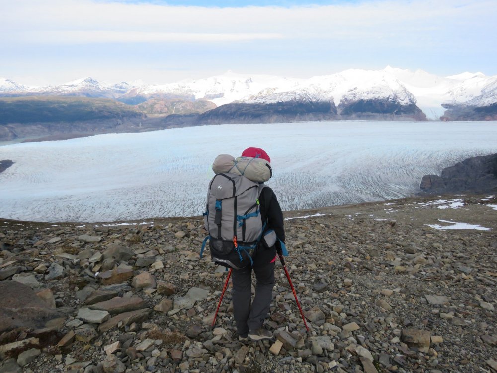 Saudações mochileiros, Voltamos recentemente de um trekking de dezoito dias pela Patagônia (El Calafate, El Chaltén e Circuito W em Torres del Paine) e deixarei aqui um breve relato sobre a viagem. Falarei um pouco sobre o que levar, quais os lugares que visitamos e outras dicas sobre o nosso planejamento. Espero que, de alguma forma, a leitura possa ajudar / inspirar vocês no planejamento de um mochilão pelo Chile e pela Argentina. Boa leitura! Itinerário: 07/01 – El Calafate 08/01 - Deslocamento até El Chaltén. 09/01 - El Chaltén 10/01 - El Chaltén 11/01 - El Chaltén 12/01 - El Chaltén 13/01 - El Chaltén 14/01 - El Chaltén 15/01 – El Chaltén 16/01 - Deslocamento El Chaltén – El Calafate - Puerto Natales 17/01 – Puerto Natales 18/01 – Torres del Paine 19/01 - Torres del Paine 20/01 - Torres del Paine 21/01 - Torres del Paine 22/01 - Saída do Parque. Volta a Puerto Natales 23/01 – Deslocamento Puerto Natales – El Calafate 24/01 - El Calafate (minitrekking) Sobre a viagem: Embora muitos preferem conhecer a Patagônia de carro, moto, bicicleta, trailer…, esse tipo de viagem infelizmente demanda tempo de deslocamento e geralmente é feita por quem tem mais tempo para viajar. No nosso caso, tínhamos vinte dias e optamos por viajar de avião até El Calafate, fazendo conexão em Buenos Aires. Alguns preferem visitar a Patagônia vindo de avião pelo Chile, a partir de Santiago e depois Punta Arenas, mas, pelas pesquisas que fizemos, o preço da passagem aérea pela Argentina estava mais em conta. Como o valor das passagens costuma mudar, sugiro pesquisar as passagens pelos dois países. Planejando a nossa viagem, optamos por priorizar as cidades de El Chaltén e o Circuito W de Torres del Paine, principalmente porque são os lugares onde estão as trilhas mais conhecidas da Patagônia (apesar de haver vários outros lugares não tão famosos entre os mochileiros e que são tão bonitos quanto). Também reservamos dois dias em El Calafate e decidimos deixar Ushuaia para um outro momento. Como a nossa programação era acampar durante parte do roteiro, compramos os itens essenciais para a viagem ainda no Brasil, merecendo destaque para: - Barraca resistente ao vento: compramos uma Quickhiker 3 da Quechua, a qual suportou o vento da Patagônia, apesar de termos sentido frio em dois dias acampados. Não é a barraca mais indicada para esse tipo de lugar, mas ela tem uma boa relação custo-benefício; - Bastões de caminhada: fundamentais para quem vai caminhar por terrenos íngremes com aproximadamente quinze quilos nas costas; - Saco estanque: usamos ele para enchê-lo de água quando estávamos acampados, não precisando se deslocar toda hora até o rio para buscar água potável; - Roupas de frio e resistente ao vento. Sobre dinheiro, trocamos reais por pesos argentinos ainda no Brasil e levamos todo o nosso dinheiro em espécie (usamos o cartão apenas para reservar os hosteis). A maior parte da quantia que levamos já era em pesos argentinos, sendo que deixamos para comprar pesos chilenos apenas quando chegamos em Puerto Natales. A conversão foi de aproximadamente: AR$ 1 = R$ 0,15 R$ 1 = CLP 180 Dia 07 de Janeiro – El Calafate: Pousamos em El Calafate às 12:30 e pagamos AR$ 180 cada um no transfer do aeroporto até o nosso hostel. A cidade conta com diversos hostels e nos hospedamos no Nakel Yenu. Logo que chegamos na recepção e fizemos o check-in, o recepcionista quando soube que iríamos acampar nos ofereceu três cartuchos de gás para acampar que outros viajantes tinham deixado no hostel. Ele nos disse que é normal que os viajantes quando terminam seus acampamentos decidem não levar parte dos equipamentos que sobraram da viagem e acabam deixando na recepção. Como ainda não tínhamos comprado cartucho de gás para o nosso acampamento, acabamos aceitando dois dos três cartuchos que o recepcionista nos ofereceu e já economizamos alguns pesos argentinos logo no começo da viagem (fica a dica para aqueles que forem acampar: pesquisem na recepção do hostel se tem algum cartucho de gás sobrando). Feito o check-in, compramos nossa passagem de ônibus para El Chaltén para o dia seguinte (AR$ 600 por pessoa), fomos caminhar pelo centro da cidade e aproveitamos para passar no mercado comprar o que faltava para viagem. Dia 08 de Janeiro – Deslocamento para El Chaltén e caminhada até o mirador do Fitz Roy e Laguna Capri Saímos às 08:40 de El Calafate rumo a El Chaltén. O bom da viagem é que ao longo do trajeto de ônibus você já tem um pouco da noção das paisagens que vai encontrar quando chegar. Antes de desembarcar na rodoviária, o ônibus fez uma parada no centro administrativo do Parque, onde recebemos algumas recomendações sobre as trilhas. Ônibus chegou na rodoviária às 11:50, saímos procurar hostel e acabamos ficando no hostel Lago del Desierto por AR$ 320 por pessoa. Como tínhamos a tarde inteira livre, decidimos fazer uma caminhada por um trajeto que não estava incluído no nosso roteiro de acampamento e fomos até o Mirador Fitz Roy. Esse é um dos trajetos para quem vai até a Laguna de los Tres (base do Fitz Roy) e a trilha tem início onde termina a área urbana de El Chaltén. Nesse trajeto, os dois primeiros kms são de uma subida bastante íngreme, o que, em compensação, fornece um bom visual da cidade e das montanhas ao redor dela. Passados esses kms iniciais, a trilha se mostra menos inclinada e a caminhada começa a render mais. O mirador possui uma vista muito boa e já dá uma noção para o mochileiro da paisagem que ele vai encontrar pela frente. Continuamos nossa caminhada até a bifurcação que vai para a Laguna de los Tres e pegamos a esquerda indo em direção à Laguna Capri (a ida até a base do Fitz Roy estava programada para outro dia). O visual da Laguna Capri também é muito bom, mas se tivesse que escolher entre ir ao Fitz Roy passando pelo Mirador ou pela Laguna, eu escolheria o primeiro p