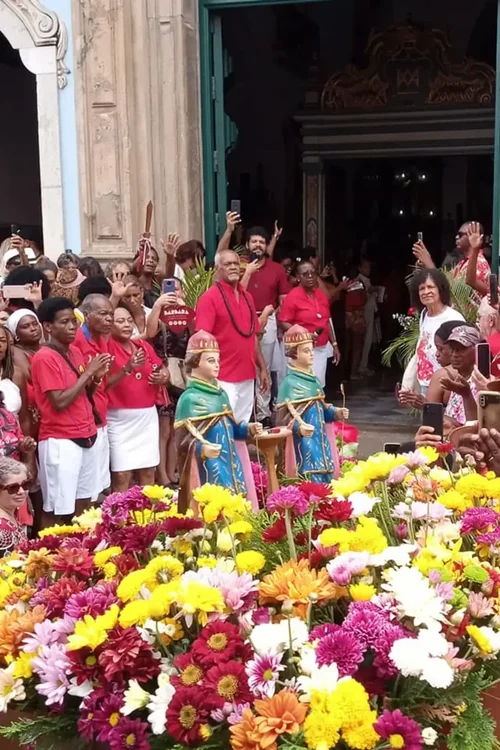 O Caruru de Cosme e Damião foi reconhecido como Patrimônio Imaterial da Bahia no último O título foi aprovado pelo pleno do Conselho Estadual de Cultura (CEC), em votação unânime, na última quinta feira (19/09/2024). Sendo oficializado hoje dia 27 de setembro, quando se celebra o Dia de São Cosme e Damião. Para os católicos, orações, missas, promessas e procissões, que em Salvador é realizada na Paróquia de Cosme e Damião no bairro da Liberdade Para os adeptos de religiões de matriz africana, é ofertado caruru e distribuição de doces e brinquedos para as crianças. Feito com quiabo cortado, camarão seco e azeite de dendê, entre outros ingredientes, o caruru costuma ser servido primeiro às crianças, sete crianças ou múltiplos de sete, por isso, a tradição é também conhecida como "caruru de sete meninos". Depois, os adultos são convidados a comer. Segundo o costume, quem encontrar um quiabo inteiro no prato deve oferecer um caruru completo no próximo ano. 🎶Cosme e Damião, oh, cadê Doum? Cosme e Damião, vêm comer seu caruru (Cosme e Damião, oh, cadê Doum?) (Cosme e Damião, vêm comer seu caruru)🎶🍭🍬 Aqui é gastronomia, cultura, história, música e religião. Leia mais: https://www.cnnbrasil.com.br/viagemegastronomia/noticias/caruru-de-cosme-e-damiao-e-agora-um-patrimonio-imaterial-da-bahia/#:~:text=O caruru de Cosme e,Estadual de Cultura (CEC). https://www.instagram.com/p/DAYePwdxkS1/?igsh=YXI5ajZ5c2RxM2t3 https://www.instagram.com/reel/DAOHNK0pF1z/?igsh=bG5oZXV4OHh5YWRt https://vm.tiktok.com/ZMh6abXNF/ https://vm.tiktok.com/ZMh6asYLt/ https://www.instagram.com/reel/DAUNS2cJ9-h/?igsh=NXJveWlxeGpvZnU= Playlist: https://open.spotify.com/playlist/1HC1G0JYoP3TG9bgsOIP3E?si=BmBxhWomTG6zRsKXULbpXQ Músicas para homenagear Cosme e Damião : Igreja do Rosário, Largo do Pelourinho, Salvador. Essa foto foi tirada na festa de Santa Barbara, onde vários andores de outras paróquias vão para o cortejo da procissão. Na festa de Santa Bárbara também é servido caruru.