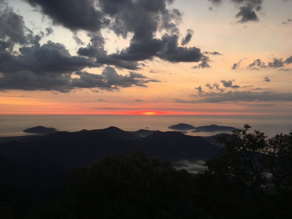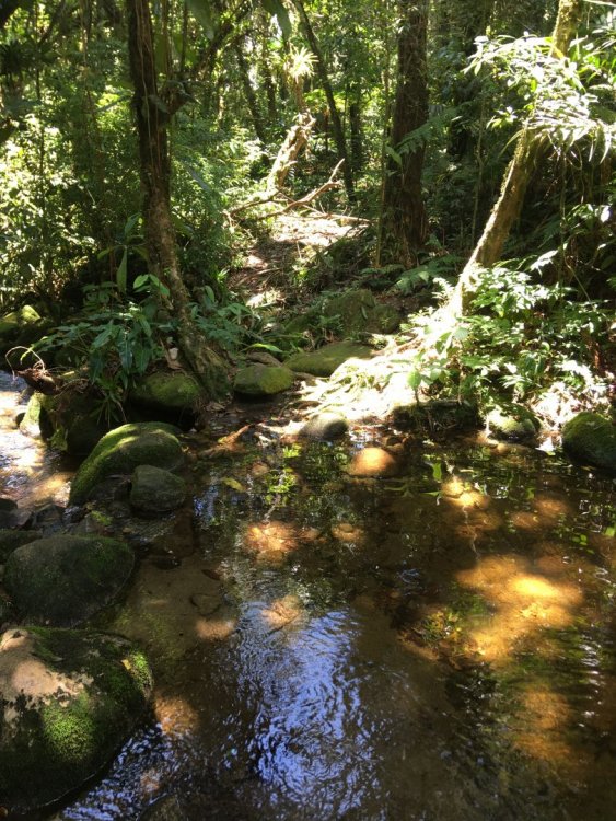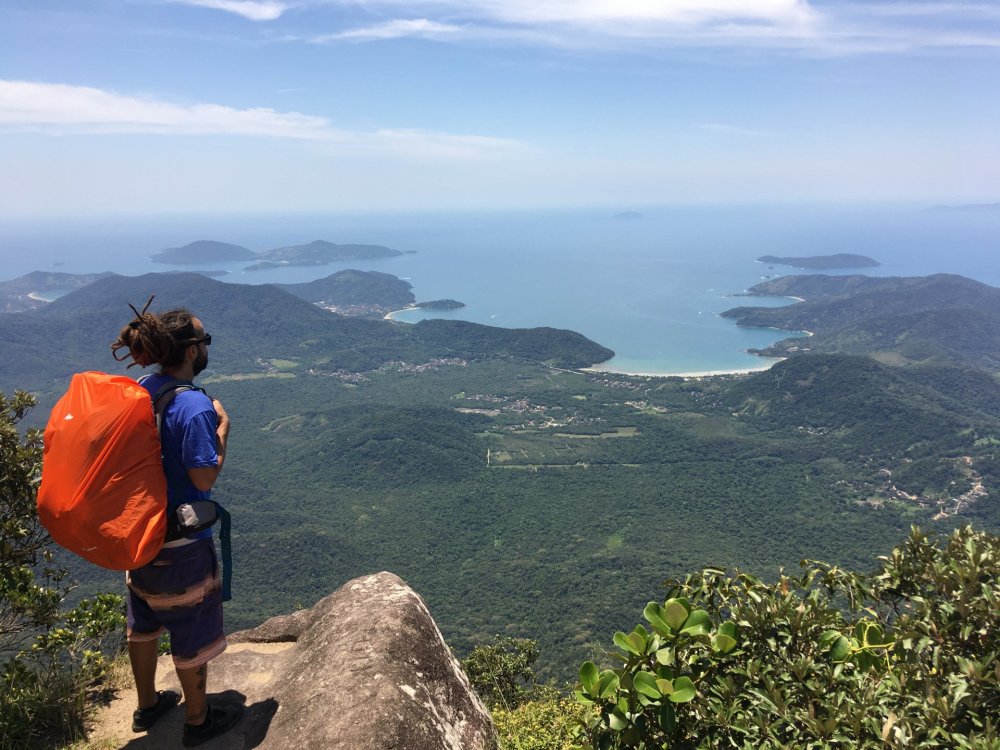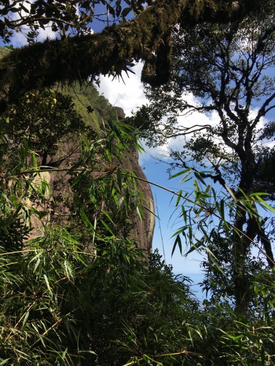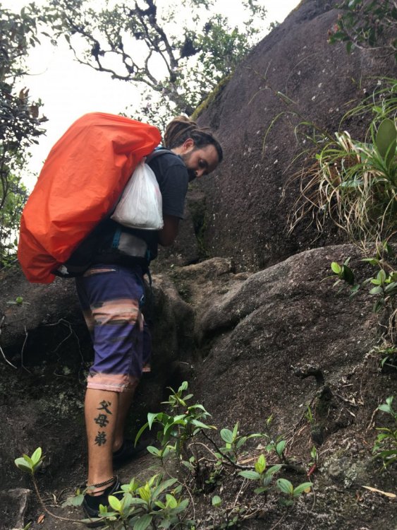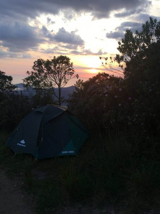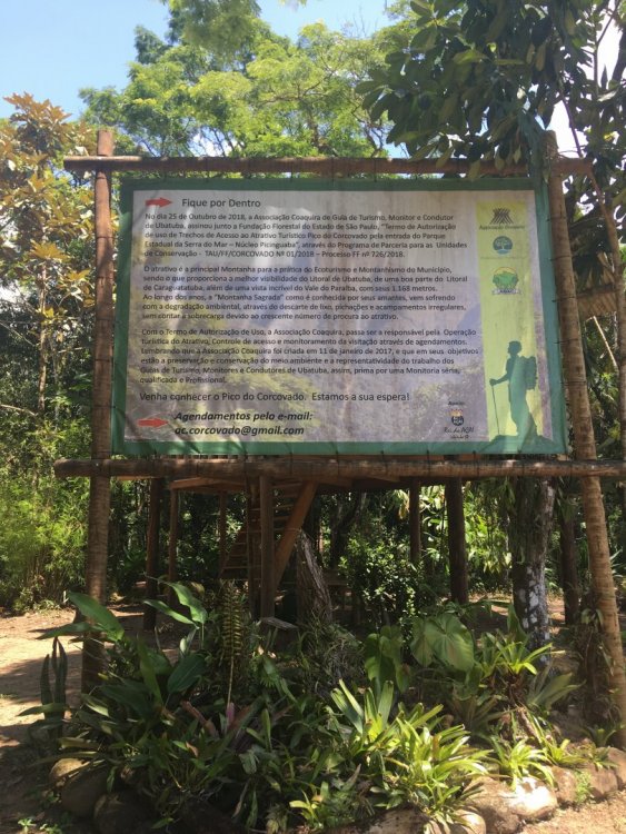 Salve salve mochileiros! Segue o relato da trilha feita no Réveillon rumo ao Pico do Corcovado situado no município de Ubatuba no litoral norte de São Paulo. --> 24km ida e volta  --> Nível de dificuldade: DIFÍCIL (trilha extensa com várias bifurcações no início e muita mas muita subida rss) Partida - 30/12/19 - Partida 18:00pm - São Paulo x Caraguatatuba x Praia da Lagoinha x Praia do Bonetinho - Ônibus R$65,00 - Transporte público R$5,50 Dia 30 de Dezembro geralmente costumo me organizar com antecedência o que vou fazer na virada pra não passar apuros nas correrias de final de ano. Mas ao contrário deste ano de 2019 eu não segui o protocolo e resolvi tudo na última hora, e lá estávamos nós, eu Tadeu e meu amigo Léo no dia 30 de Dezembro partindo de São Paulo capital sentido Caraguatatuba no litoral norte de São Paulo pelo empresa de ônibus Litorânea onde compramos as passagens por R$65,00. Em meio a milhares de pessoas correndo pra lá e pra cá no Terminal Rodoviário Tietê, nós conseguimos as passagens para às 18:00 com previsão de chegada para às 20:35. Chegamos por volta das 21:30 em Caraguatatuba por causa do trânsito intenso na rodovia de final de ano. Terminal Rodoviário Tietê Em Caragua o clima estava abafado mas sem nenhum sinal aparente de chuva. A previsão mostrava clima aberto pro dia 30 e 31 com 20% de chuvas isoladas. Aguardamos por um tempo no terminal para aguardar nosso proximo ônibus e neste tempo aproveitamos e caminhamos por uns 5 minutos até o supermercado Shibata que fica próximo ao terminal rodoviário para comprar comida e água para passar a primeira noite no camping. Compras feitas, retornamos ao terminal e então pegamos um ônibus de transporte público na rodoviária de Caraguatatuba com sentido a Ubatuba por R$5,50 e depois de 1 hora descemos no ponto da praia da Lagoinha próximo ao Mercado Garotão e ao Condomínio SARELA - Recanto da Lagoinha onde caminhamos até sua entrada na 1ª guarita e continuamos por dentro do condomínio até a 2ª guarita que é onde fica o início da Trilha da Sete Praias. Caminhamos por 40 minutos passando pela Praia do Oeste e Praia do Peres caminhando totalmente no escuro iluminando com lanternas até chegar na Praia do Bonete ou Bonetinho onde passamos a primeira noite em camping selvagem ou seja, camping sem estrutura nenhuma, mas com o essencial, mar aberto e uma fonte de água potável. Ai foi só montar as barracas! Camping Praia do Bonetinho O camping na Praia do Bonete além de selvagem é um camping proibido, na praia existe uma enorme placa lembrando os visitantes que aquele local ou aquela praia é uma propriedade particular. Então como chegamos já a noite, nós acampamos e desmontamos nossas barracas bem cedinho para ninguém ver e causar maiores problemas. Camping concluído com sucesso! Subida - 31/12/19 - Partida 9:00am - Praia do Bonetinho x Pico do Corcovado - Transporte público R$5,50 ; Acordamos por volta das 6:00 da manhã e desmontamos rápido nossas barracas. Fizemos um bom café da manhã, tomamos o último banho de mar de 2019, arrumamos nossas mochilas e caminhamos de volta para o começo da trilha das Sete Praias, pois teríamos que pegar um ônibus sentido Ubatuba para descer no ponto da Praia Dura que ficava a 4,7 km de onde estávamos. Então fizemos a trilha da Praia do Bonetinho de volta para o condomínio Recanto da Lagoinha, fomos para a 1ª guarita na entrada do condomínio e caminhamos para a direita na rodovia sentido Ubatuba por uns cinco minutos até chegar em um ponto de ônibus. Até tentamos pegar carona mas os carros pareciam estar todos lotados ou com bagagens ou de pessoas chegando para passar a virada de ano no litoral. Por sorte o ônibus não demorou muito e pegamos rápido um ônibus por R$5,50 sentido Ubatuba e alguns minutos depois descemos no ponto da Praia Dura em frente ao Supermercado Praia Dura que fica também no começo da estrada do Corcovado que seria o começo da nosso caminho rumo ao imponente Pico do Corcovado. Aproveitamos e compramos no supermercado alguns mantimentos e água. Levamos 2 garrafas de água de 1 litro e 1 litro e meio cada um. (Caminho até o início da trilha) Supermercado Praia dura x Casa do Sr. Tozaki - Guarita do Parque Estadual Serra do Mar -------------------------------------------------------------------------------------------------------------------------------------------------------- (Todo caminho percorrido) Wikiloc: https://pt.wikiloc.com/wikiloc/spatialArtifacts.do?event=setCurrentSpatialArtifact&id=45109332 Supermercado Praia dura x Casa do Sr. Tozaki - Guarita do Parque Estadual Serra do Mar x Pico Do Corcovado Começamos nossa caminhada para o pico por volta das 11:00 da manhã. Nosso ponto de partida foi do Supermercado Praia Dura, dali caminhamos por 1 hora os 4 Km da Estrada do Corcovado até a casa do famoso Sr. Tozaki (que infelizmente não tive a oportunidade de encontrar) onde fica situado a guarita do Parque Estadual da Serra do Mar PESM - Núcleo Picinguaba e início da Trilha do Pico do Corcovado. Casa Sr. Tozaki Guarita do Parque Estadual Serra do Mar - Núcleo Picinguaba Para subida e pernoitar no Pico do Corcovado é preciso realizar o agendamento com o Núcleo Picinguaba enviando um e-mail para ac.corcovado@gmail.com ou para agendamento.picinguaba@gmail.com. Nós até fizemos nossa parte e enviamos três e-mails para solicitar o agendamento em três emails diferentes, porém recebemos a resposta de que dois deles estavam desativados. O único e-mail que nos respondeu foi o ac.corcovado@gmail.com e disse assim: ___________________________________________________________________________________________________________________________________________________________________________________________ 31 de dez de 2019 às 13:59 "Bom dia! Informamos que a Associação Coaquira de Guia de Turismo, Monitor e Condutor de Ubatuba é responsável pelo ecoturismo realizando o controle de a