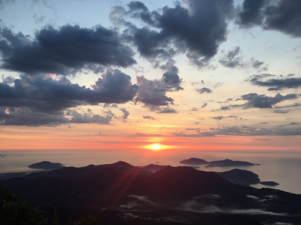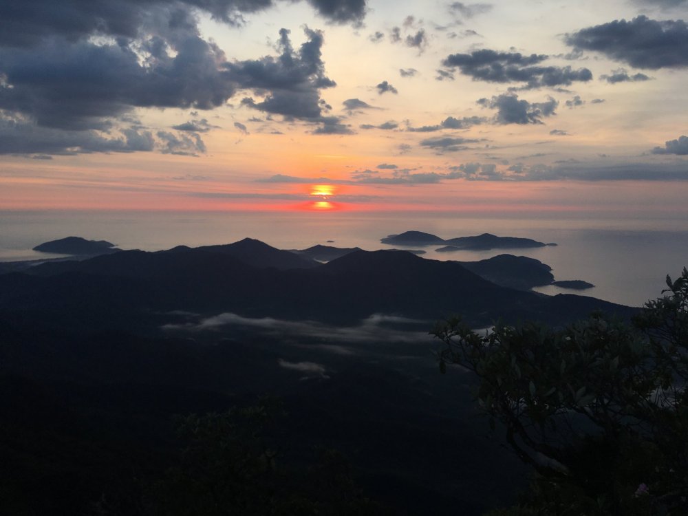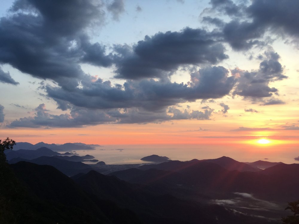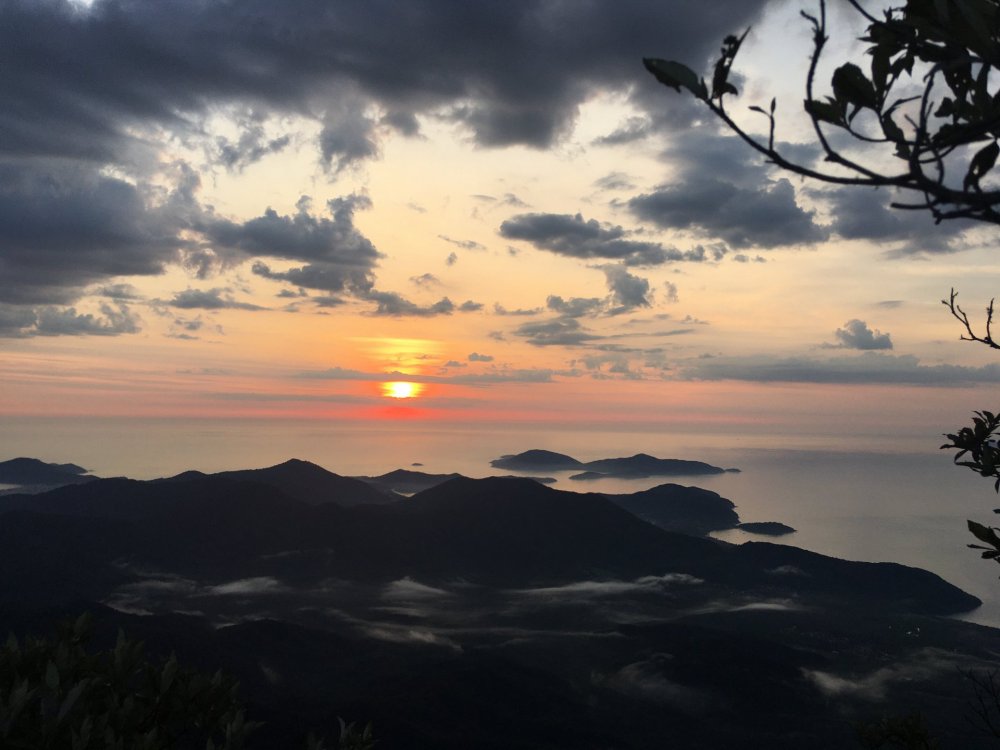 Salve salve mochileiros! Segue o relato da trilha feita no Réveillon rumo ao Pico do Corcovado situado no município de Ubatuba no litoral norte de São Paulo. --> 24km ida e volta  --> Nível de dificuldade: DIFÍCIL (trilha extensa com várias bifurcações no início e muita mas muita subida rss) Partida - 30/12/19 - Partida 18:00pm - São Paulo x Caraguatatuba x Praia da Lagoinha x Praia do Bonetinho - Ônibus R$65,00 - Transporte público R$5,50 Dia 30 de Dezembro geralmente costumo me organizar com antecedência o que vou fazer na virada pra não passar apuros nas correrias de final de ano. Mas ao contrário deste ano de 2019 eu não segui o protocolo e resolvi tudo na última hora, e lá estávamos nós, eu Tadeu e meu amigo Léo no dia 30 de Dezembro partindo de São Paulo capital sentido Caraguatatuba no litoral norte de São Paulo pelo empresa de ônibus Litorânea onde compramos as passagens por R$65,00. Em meio a milhares de pessoas correndo pra lá e pra cá no Terminal Rodoviário Tietê, nós conseguimos as passagens para às 18:00 com previsão de chegada para às 20:35. Chegamos por volta das 21:30 em Caraguatatuba por causa do trânsito intenso na rodovia de final de ano. Terminal Rodoviário Tietê Em Caragua o clima estava abafado mas sem nenhum sinal aparente de chuva. A previsão mostrava clima aberto pro dia 30 e 31 com 20% de chuvas isoladas. Aguardamos por um tempo no terminal para aguardar nosso proximo ônibus e neste tempo aproveitamos e caminhamos por uns 5 minutos até o supermercado Shibata que fica próximo ao terminal rodoviário para comprar comida e água para passar a primeira noite no camping. Compras feitas, retornamos ao terminal e então pegamos um ônibus de transporte público na rodoviária de Caraguatatuba com sentido a Ubatuba por R$5,50 e depois de 1 hora descemos no ponto da praia da Lagoinha próximo ao Mercado Garotão e ao Condomínio SARELA - Recanto da Lagoinha onde caminhamos até sua entrada na 1ª guarita e continuamos por dentro do condomínio até a 2ª guarita que é onde fica o início da Trilha da Sete Praias. Caminhamos por 40 minutos passando pela Praia do Oeste e Praia do Peres caminhando totalmente no escuro iluminando com lanternas até chegar na Praia do Bonete ou Bonetinho onde passamos a primeira noite em camping selvagem ou seja, camping sem estrutura nenhuma, mas com o essencial, mar aberto e uma fonte de água potável. Ai foi só montar as barracas! Camping Praia do Bonetinho O camping na Praia do Bonete além de selvagem é um camping proibido, na praia existe uma enorme placa lembrando os visitantes que aquele local ou aquela praia é uma propriedade particular. Então como chegamos já a noite, nós acampamos e desmontamos nossas barracas bem cedinho para ninguém ver e causar maiores problemas. Camping concluído com sucesso! Subida - 31/12/19 - Partida 9:00am - Praia do Bonetinho x Pico do Corcovado - Transporte público R$5,50 ; Acordamos por volta das 6:00 da manhã e desmontamos rápido nossas barracas. Fizemos um bom café da manhã, tomamos o último banho de mar de 2019, arrumamos nossas mochilas e caminhamos de volta para o começo da trilha das Sete Praias, pois teríamos que pegar um ônibus sentido Ubatuba para descer no ponto da Praia Dura que ficava a 4,7 km de onde estávamos. Então fizemos a trilha da Praia do Bonetinho de volta para o condomínio Recanto da Lagoinha, fomos para a 1ª guarita na entrada do condomínio e caminhamos para a direita na rodovia sentido Ubatuba por uns cinco minutos até chegar em um ponto de ônibus. Até tentamos pegar carona mas os carros pareciam estar todos lotados ou com bagagens ou de pessoas chegando para passar a virada de ano no litoral. Por sorte o ônibus não demorou muito e pegamos rápido um ônibus por R$5,50 sentido Ubatuba e alguns minutos depois descemos no ponto da Praia Dura em frente ao Supermercado Praia Dura que fica também no começo da estrada do Corcovado que seria o começo da nosso caminho rumo ao imponente Pico do Corcovado. Aproveitamos e compramos no supermercado alguns mantimentos e água. Levamos 2 garrafas de água de 1 litro e 1 litro e meio cada um. (Caminho até o início da trilha) Supermercado Praia dura x Casa do Sr. Tozaki - Guarita do Parque Estadual Serra do Mar -------------------------------------------------------------------------------------------------------------------------------------------------------- (Todo caminho percorrido) Wikiloc: https://pt.wikiloc.com/wikiloc/spatialArtifacts.do?event=setCurrentSpatialArtifact&id=45109332 Supermercado Praia dura x Casa do Sr. Tozaki - Guarita do Parque Estadual Serra do Mar x Pico Do Corcovado Começamos nossa caminhada para o pico por volta das 11:00 da manhã. Nosso ponto de partida foi do Supermercado Praia Dura, dali caminhamos por 1 hora os 4 Km da Estrada do Corcovado até a casa do famoso Sr. Tozaki (que infelizmente não tive a oportunidade de encontrar) onde fica situado a guarita do Parque Estadual da Serra do Mar PESM - Núcleo Picinguaba e início da Trilha do Pico do Corcovado. Casa Sr. Tozaki Guarita do Parque Estadual Serra do Mar - Núcleo Picinguaba Para subida e pernoitar no Pico do Corcovado é preciso realizar o agendamento com o Núcleo Picinguaba enviando um e-mail para ac.corcovado@gmail.com ou para agendamento.picinguaba@gmail.com. Nós até fizemos nossa parte e enviamos três e-mails para solicitar o agendamento em três emails diferentes, porém recebemos a resposta de que dois deles estavam desativados. O único e-mail que nos respondeu foi o ac.corcovado@gmail.com e disse assim: ___________________________________________________________________________________________________________________________________________________________________________________________ 31 de dez de 2019 às 13:59 "Bom dia! Informamos que a Associação Coaquira de Guia de Turismo, Monitor e Condutor de Ubatuba é responsável pelo ecoturismo realizando o controle de a