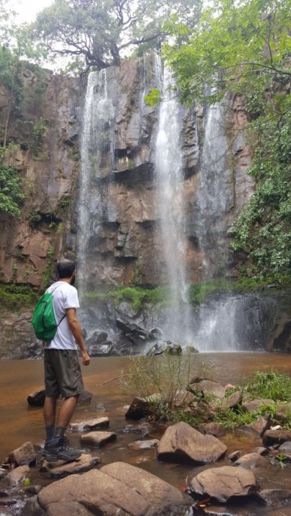 Período: 15 a 19/11/2017 (período chuvoso) Cidade-Base: Caiapônia/GO, a 550 km de Brasília e 335 km de Goiânia. Relato escrito pela companheira de viagem Maria Fernanda. Fiz só algumas pequenas adaptações. Dessa forma muitas vezes vai estar se referindo a mim na 3ª pessoa...hehehe Além dela o Raphael também integrou o grupo, na verdade foi ele o mentor da viagem em seu Uninho Mille. Dia 15/11, quarta: - Saída DF: 05h30 - Chegada Caiapônia: 13h30 - Estrada via Iporá em ótimo estado de conservação ao longo de todo o trajeto - Fomos direto às Cachoeiras Jalapa e Tobogã. No caminho de terra à direita avista-se ao longe o "Morro do Gigante Adormecido". Lindão! Nível dificuldade das cachús: Zero! Segundo nossa avaliação, são as mais "simples", de menor beleza cênica e sujeitas a estarem lotadas nos feriados e finais de semana. Entretanto, quando lá chegamos só havia mais 3 pessoas. Depois de ficarmos ali um tempinho, seguimos rumo a Cachoeira Três Tombos Como chegar: 5 km antes de Caiapônia na GO-221 no sentido Iporá-Caiapônia Cachoeira Três Tombos Chega-se por cima, onde o Rio São Domingos encontrava-se raso, (na altura de minhas canelas, se tanto!). Do alto, aprecia-se um lindo desfiladeiro e a bela Três Tombos (nome autodescritivo). Próximo ao local do estacionamento à direita há uma trilha para a descida com mais segurança, com cordas para apoio. Não é preciso fazer como nosso audaz e intrépido Anderson Paz que - não encontrando a "descida oficial" - bancou o "Indiana Jones" numa descida arriscada pirambeira abaixo, ok?! O poço dessa cachú é DE-LI-CI-O-SO!! Todos concordamos que suas águas são as mais deliciosas em que tivemos a experiência de nadar / mergulhar. NÃO DEIXEM DE VIVENCIAR ISSO, certo?! Como chegar: BR 158, 46km em direção a Piranhas a partir do trevo que sai de Caiapônia + 16km de estrada de chão. Tem algumas placas. Confie nelas. (Digitar “Cachoeira 3 Tombos” no Google Maps) À noite: Restaurante do Ernesto, frente do Hospital Municipal. Fernanda e Rapha foram de "jantinha" (PF reforçado!) e Anderson foi de sanduba sem carne (com ovo, tomate, milho, alface e maionese). Dia 16/11, quinta feira. Cachoeiras Samambaia e Abóbora Chega-se por cima da Samambaia, literalmente! Inclusive, cruzamos o riacho q a origina sem que déssemos fé disso. Um pouco mais a frente percebemos que havíamos passado do ponto - ela estava logo à direita do riacho. Ao fazermos o retorno, tivemos a sorte de avistarmos 2-3 catetos ariscos. A de scida da Samambaia é tranquila e sinalizada. Queda d'água bonita. Há um poço pequeno . Para chegarmos a Abóbora, voltamos ao ponto de início da descida à Samambaia e pegamos uma trilha em frente, curta (talvez 250 m) e discretíssima! É provável q exista outra trilha por baixo, mas não vimos! A queda e o poço da Abóbora são maiores do que a Samambaia. No entanto, ao chegarmos, deparamo-nos com um fedor forte e nauseante de algum bicho morto nas proximidades. Não permanecemos mais do que alguns poucos minutos por ali. Peninha... Nota Importante: das que visitamos, estas duas cachoeiras ficam muuuito próximas de pastagens e plantações imensas. Como chegar: BR 158, 10km em direção a Piranhas a partir do trevo que sai de Caiapônia + 30km de estrada de chão. Na BR entrar na placa escrita "Vivas Samambaia". O carro para em um estacionamento ao lado do córrego que desemboca na Samambaia. A primeira cachoeira é a Samambaia. Uns 300m de trilha a direita fica a Abóbora (digitar “Cachoeira Abobora” no Google Maps) Após, retornamos ao carro e seguimos nossa aventura em busca à Cachoeira São Domingos... Nessa tarde, fomos agraciados com um original e generoso "Safari no Cerrado". Além dos catetos que avistamos mais cedo conseguimos ver: 10 ou 12 emas, vários tucanos, dezenas de periquitos, muuuuitas corujas, alguns carcarás, seriemas aos montes, curicacas às dezenas, muuuuuitas Araras. Em especial, passamos por um grande pequizeiro e, logo atrás dele, uma fascinante "Árvore de Araras" com 12 exemplares delas, algumas com pequis nos respectivos bicos! Muitos bichos depois, chegamos ao mirante natural da cachú São Domingos... Cachoeira São Domingos Respirações suspensas, expressões estupefatas... Até agora, não encontramos a palavra exata para descrevê-la... BELÍSSIMA! EXUBERANTE! ENCANTADORA!* Para quem conheceu o *"Buraco das Araras" em Formosa... 3 ou 4x o diâmetro dela x 96 m de altura. Para quem conheceu o "Véu de Noiva da Chapada dos Gimarães...mais bela na nossa opião! Após muitas fotos e contemplações, ficamos por uns 40 min procurando a trilha para descer até seu poço. Já estávamos desistindo da descida, quando um som de esperança inundou o ar... uma moto estacionou: era uma das moradoras da casa logo na entrada do terreno de acesso à cachoeira. Apontou-nos o início da trilha ao lado da cerca da propriedade. Após uns 15 min de percurso no sentido contrário à cachoeira, em um caminho plano, a trilha inicia uma descida relativamente inclinada rumo ao vale; por baixo, retorna-se por cerca de 1 km em direção à cachoeira e VOILÁ: a queda belíssima e o poço magnífico!! Dá pra chegar bem embaixo da cachoeira, como é possível ver na foto abaixo. Após uns 40 min, vimo-nos obrigados a abandonar o paraíso recém-encontrado e retornar: já eram 17h40h. Não queríamos correr o risco de retomar a trilha, em geral bem marcada, mas com alguns trechos que requeriam um pouco mais de atenção, e realizar a subida no escuro. Ao chegarmos no topo, não pudemos apreciar o pôr do sol... dia nublado. Mas, fomos premiados com um belo passarinho azul da cara preta e mais 2 casais de curicacas. Como chegar: a partir da Abóbora, há uma estrada de chão de aproximadamente 40 km (digitar Cachoeira de São no Google Maps) Início da noite. Já na estradinha deserta em direção à Caiapônia avistamos 3 belíssimos veados (um deles galhado), pastando serenos