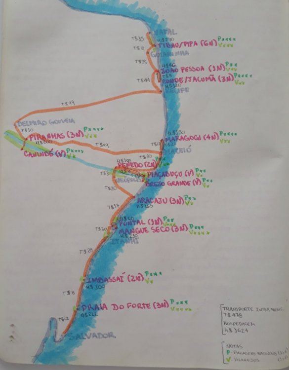 Olá pessoal. Acabei de voltar de um mochilão no nordeste, de ônibus e sozinha. Como há poucas informações sobre transportes e rolês sem sem agência, vou me ater às informações técnicas. Além disso, como ninguém fala sobre as vilas, falarei um pouco delas. Infos gerais _Data: 27/11/2018 a 28/12/2018 (32 dias e 31 noites) _Início: Salvador - BA _Fim: Natal - RN _Gastos com hospedagem (hostels, pousadinhas baratas ou airbnb): R$1624 (em média 52,5/noite) _Gastos com transporte intermunicipal: R$478 _Gastos gerais (sem passeios): R$1507 (em média 47/dia) Comentários gerais _Foi super tranquilo chegar nos lugares e fazer passeios por conta, embora as informações te direcionem pro contrário. _Só tive que pegar uma lotação entre Itanhi e Pontal (caminho para Mangue Seco). O resto tudo de ônibus ou van. _Alagoas foi o melhor lugar para viajar, pois eles possuem sistema de transporte complementar (vans) regulamentado. Os horários podem ser verificados no site: http://www.arsal.al.gov.br/servicos/transporte/quadro-de-horarios _Não peguei carona (só de barco em Mangue Seco). _Em relação a abusos, sofri apenas 1 explícito, em Mangue Seco. Tive mais 2 casos em que tive que ficar alerta, em Maragogi e em Tambaba. Explicarei depois. Dicas gerais _Se for pegar lotação (carros que param no meio da estrada para oferecer transporte/uber/carona): anote/fotografe a placa, na frente do motorista. Mande para alguém ou pelo menos finja que está combinando de encontrar alguém. Não passei nenhum perrengue em relação a isso, mas melhor se prevenir! _Se for viajar sozinho e não quiser gastar muito com comida: carregue uns 2 tapewares médios. Os PFs são muito grandes, e as vezes caros, então eu sempre pedia, comia um pouco e guardava o resto para os outros dias. Ou também quando fazia comida no hostel, fazia a mais e guardava pra depois. _Se sofrer algum tipo de assédio, fale que sua família está esperando logo ali. Não deixe claro que está sozinha. _Preferi usar calças e camisetas largas e confortáveis nos trajetos, tanto para não chamar a atenção, quanto para não grudar a perna no banco e para não machucar o ombro com a mochila. Linha Verde - BA (Praia do Forte e Imbassaí) _Transporte Salvador - Praia do Forte há ônibus da Linha Verde (LIS) saindo da rodoviária de Salvador, e passando pelo aeroporto. No aeroporto um passa 9h40 (mas não passa sempre) e outro às 13h40. Esses ônibus fazem sentido Sauípe, e param na maioria das entradas das cidades do caminho (mas não entram em todas). Acho que custa uns R$10 (não tenho certeza). há também vans da Linha Branca, que passam toda hora na frente do Shopping Salvador Norte. Custa R$8,40. Demora ~1h até a praia. (Para chegar ao ponto, é necessário pegar um ônibus convencional no aeroporto, por R$3,70, descer na frente do Shopping e atravessar a passarela. Nesse ponto também passam ônibus da LIS, em mais horários). os ônibus e as vans entram na Praia do Forte e param bem pertinho da rua principal. _Transporte Praia do Forte - Imbassaí pegar as mesmas vans ou ônibus que saem de Salvador e passam perto da rua principal de Praia do Forte quase toda hora. A van custa R$3 e demora ~0h30. eles não entram na cidade, param na estrada perto de um ponto de mototáxi, que custa R$5 até a vila. Eu acharia longe para ir a pé de mochila, mas é possível. _Transporte Imbassaí - Sauípe ou Conde (não fui) as vans que saem de Salvador em geral tem destino final em Sauípe, com as quais é possível fazer quase toda a Linha Verde. há apenas um ônibus (LIS) que vai para Itanhi, e passa na estrada de Imbassaí às 12h45. Entra em Sauípe e em Conde (o que peguei não foi até a praia de Conde, apenas até a vila, mas quando pedem ele vai até a praia). No restante das cidades só para na estrada. _Infos Praia do Forte Hostel Praia do Forte (Hi hostel) muito bom, com café ótimo, e dá entrada grátis ao Projeto Tamar. R$72/noite. vilazinha bem charmosa. Rua principal com muitas lojas chiques, mas também tem vida local, e algumas coisas não caras. Na rua ao lado já tem botecos e coisas mais simples. Dá pra passar horas caminhando ou sentando na rua, e super seguro. Há uns condomínios e hotel toscos que impedem o acesso a praia, mas pelo menos não são visualmente ofensivos. é possível fazer todas as praias a pé. para ir ao castelo, compensa alugar uma bike na vila (R$5/ 30 min). Tem ciclovia em todo o trajeto. _Infos Imbassaí Eco Hostel Imbassaí é legal, mas achei longe da cidade. Tem que passar por estrada de terra escura, com cobras e sapos, e por uma estrada meio erma, cheia de muros. Não dá pra ficar indo e voltando da cidade toda hora. Mas é perto de uma prainha do rio bem gostosinha. R$50/noite. vilazinha meio capenga de dia. A noite tem um pouco mais de vida na pracinha e na orla, mas não foi minha vila favorita. não gostei da praia, pois mar é bravo, não tem sombra e precisa ficar em bares. Mas orla do rio é bem bonita. restaurante Zôião, na beira do rio, é mara. Mangue Seco - BA e Pontal - SE _Transporte Imbassaí - Mangue Seco Imbassaí - Itanhi: ônibus LIS passa na estrada de Imbassaí às 12h45. Custa R$28,30. Demora 3h30. Itanhi - Indiaroba: van Coobase passa na estrada de Itanhi às 16h20. Custa R$5 (não peguei). Indiaroba - Pontal: há algumas vans, mas dizem que não passa aos domingos, e é necessário pegar táxi. (não peguei) quando eu estava na estrada de Itanhi passou uma lotação (carro particular) para Indiaroba por R$5. Peguei e comentei que estava indo para Pontal, e ele acabou me levando até lá por R$30. Demorou uns 0h30. Pontal - Mangue seco: há infinitos tipos e valores de barco. Aparentemente tem um de linha que custa uns R$15, mas não sei os horários. Sempre vão tentar te vender as lanchas caras (até R$130). Maaas tem várias famílias que fazem o trajeto todo dia (para trabalhar nos restaurantes) e dão carona de canoa R$0. _Transporte Mangue Se