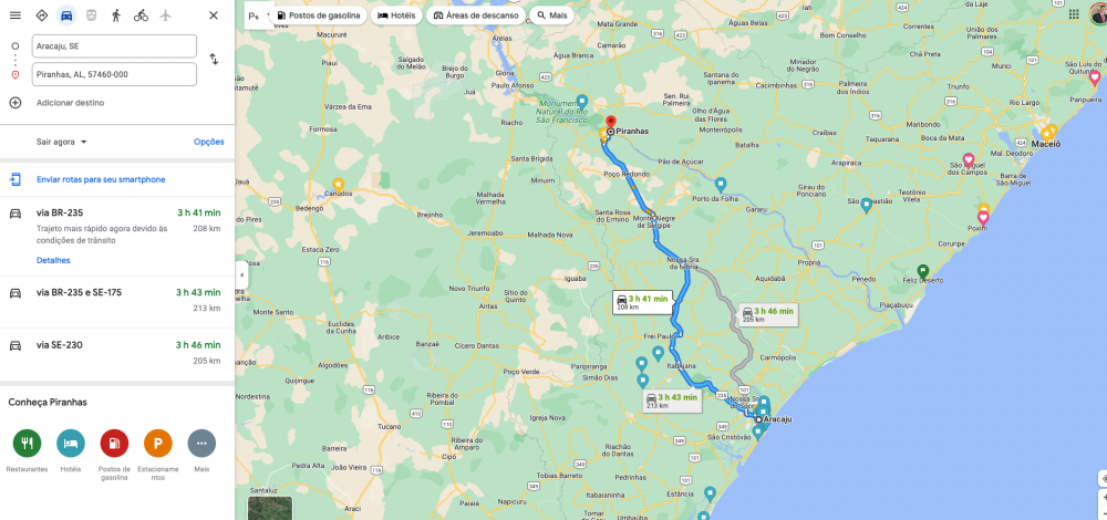 Galera, Vou pra Alagoas no fim do ano e estou pensando em passar por Piranhas, ali no São Francisco. Alguém conhece ali? É legal de visitar? Qtos dias é bom ficar por ali? Tem outras cidades interessantes por perto? E em Alagoas mesmo qto tempo eu preciso pra conhecer legal? Valeu! Abs Marcelo